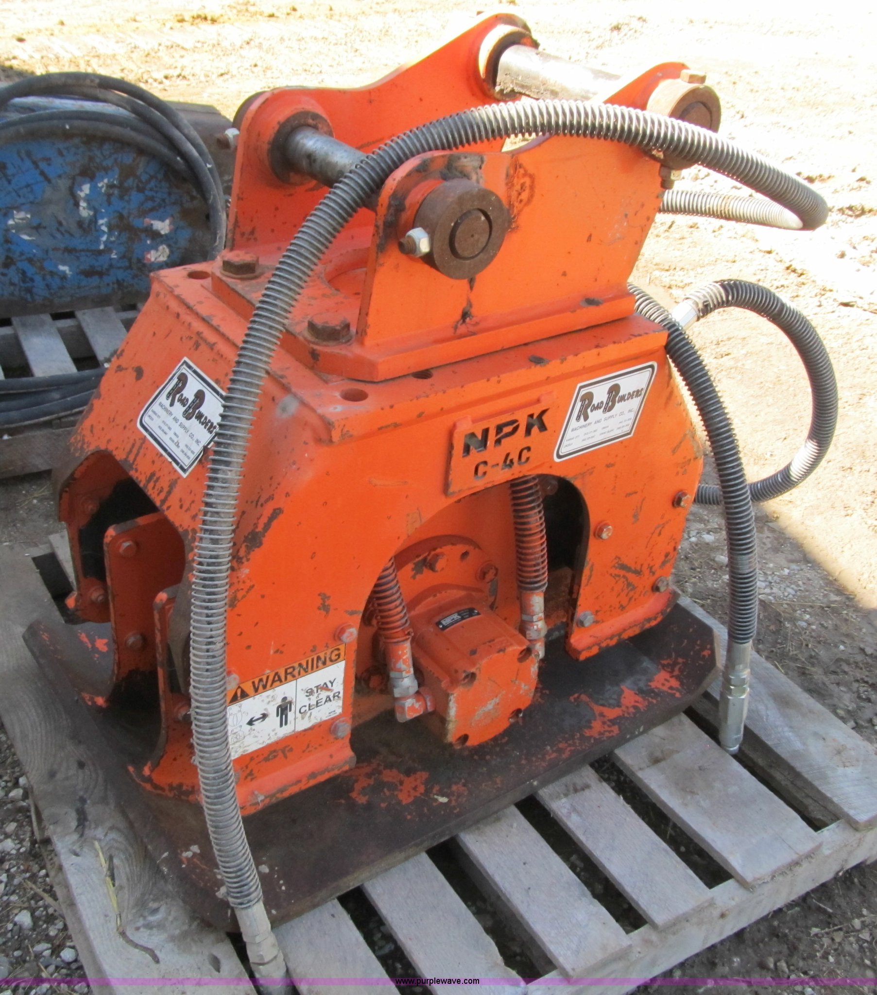 Purple Wave is selling a used Excavator Attach. in Missouri. This item is a NPK C4C-C4110 vibratory compactor with the following: 24" x 34" foot print, Approximately 10'L hose, Fits midsize and large excavators, Standard attachment, Part No. M150, Serial MRN39478, Serial 1N6919