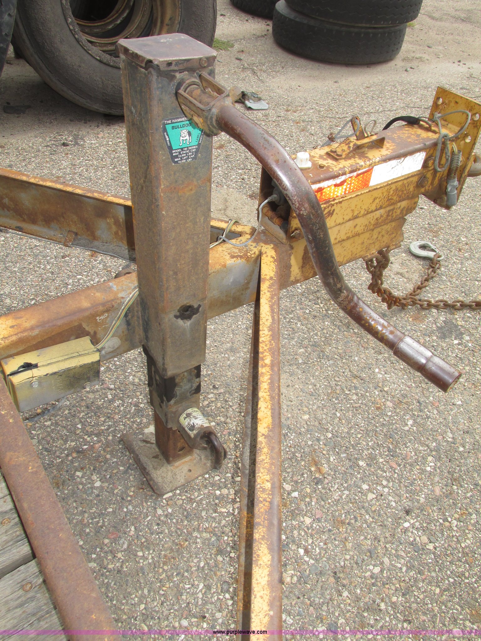 Purple Wave is selling a used Equip. Trailer in Iowa. This item is a 1997 Redi Haul trailer with the following: 14'L x 74"W wood deck, 48"L x 15"W folding ramps, Self cleaning, D-ring tie downs, Tie down brackets, Bull Dog jack, Adjustable height pintle hitch, Safety chains with slip hooks, Six pin trailer wiring, ST225/75R15 tires, Spare tire