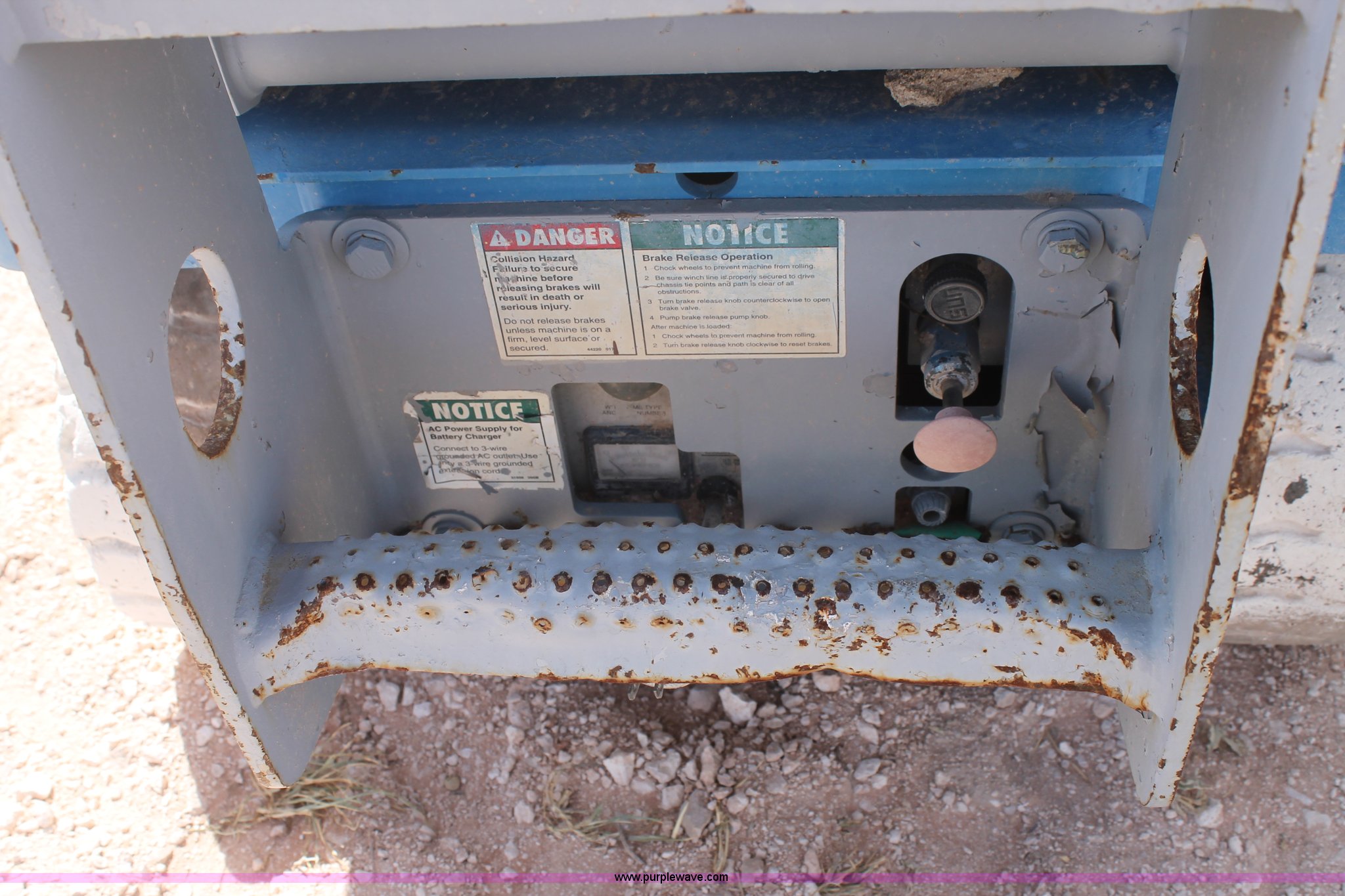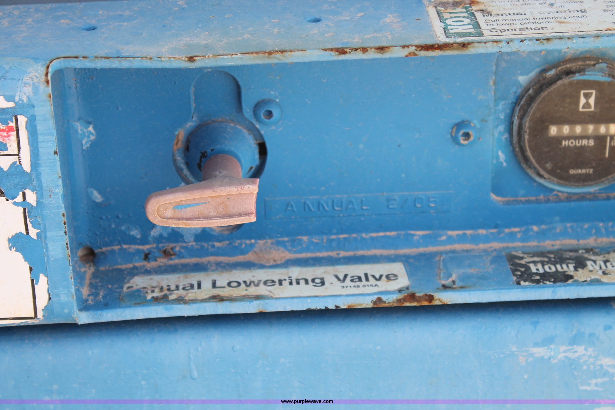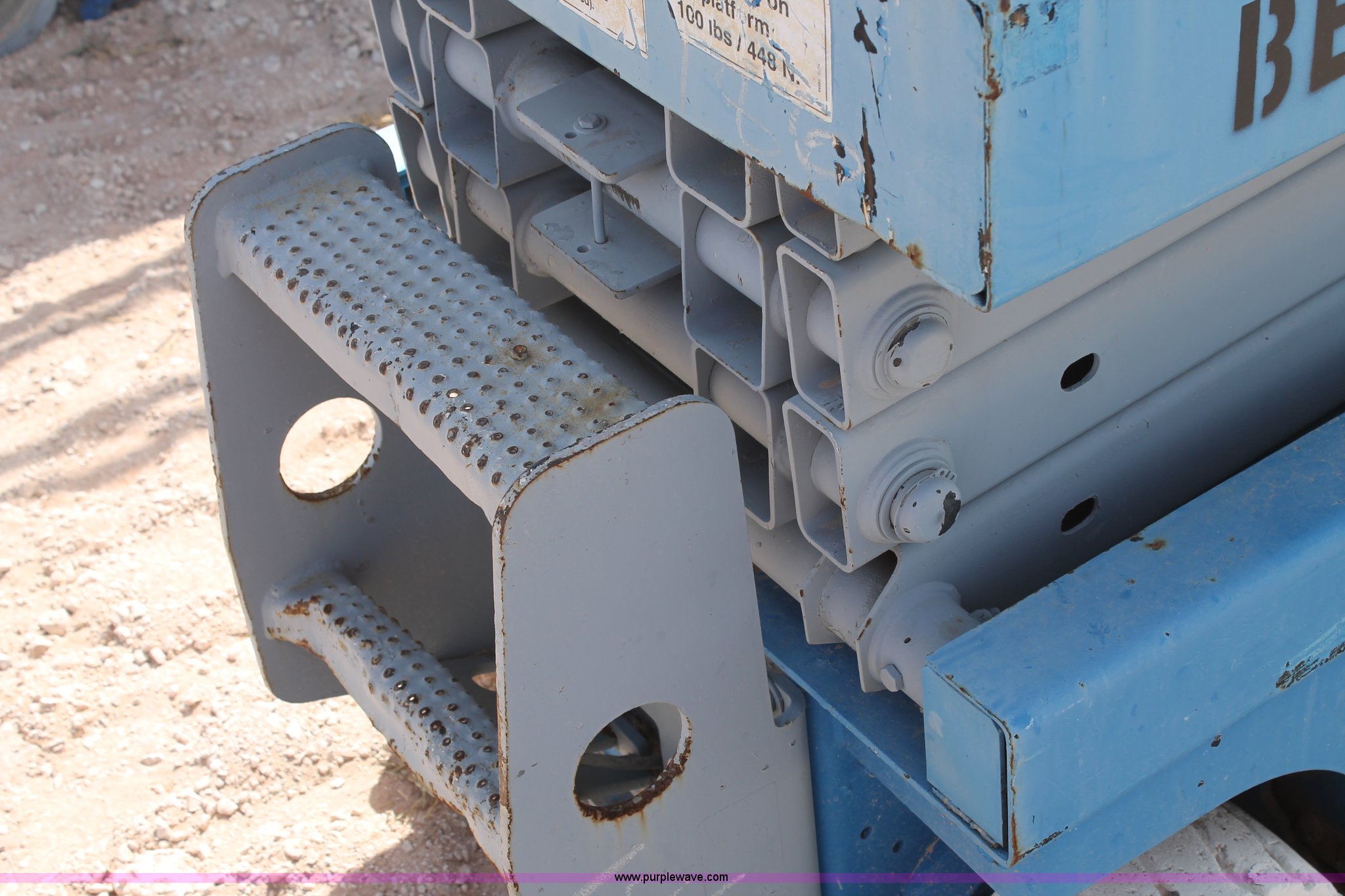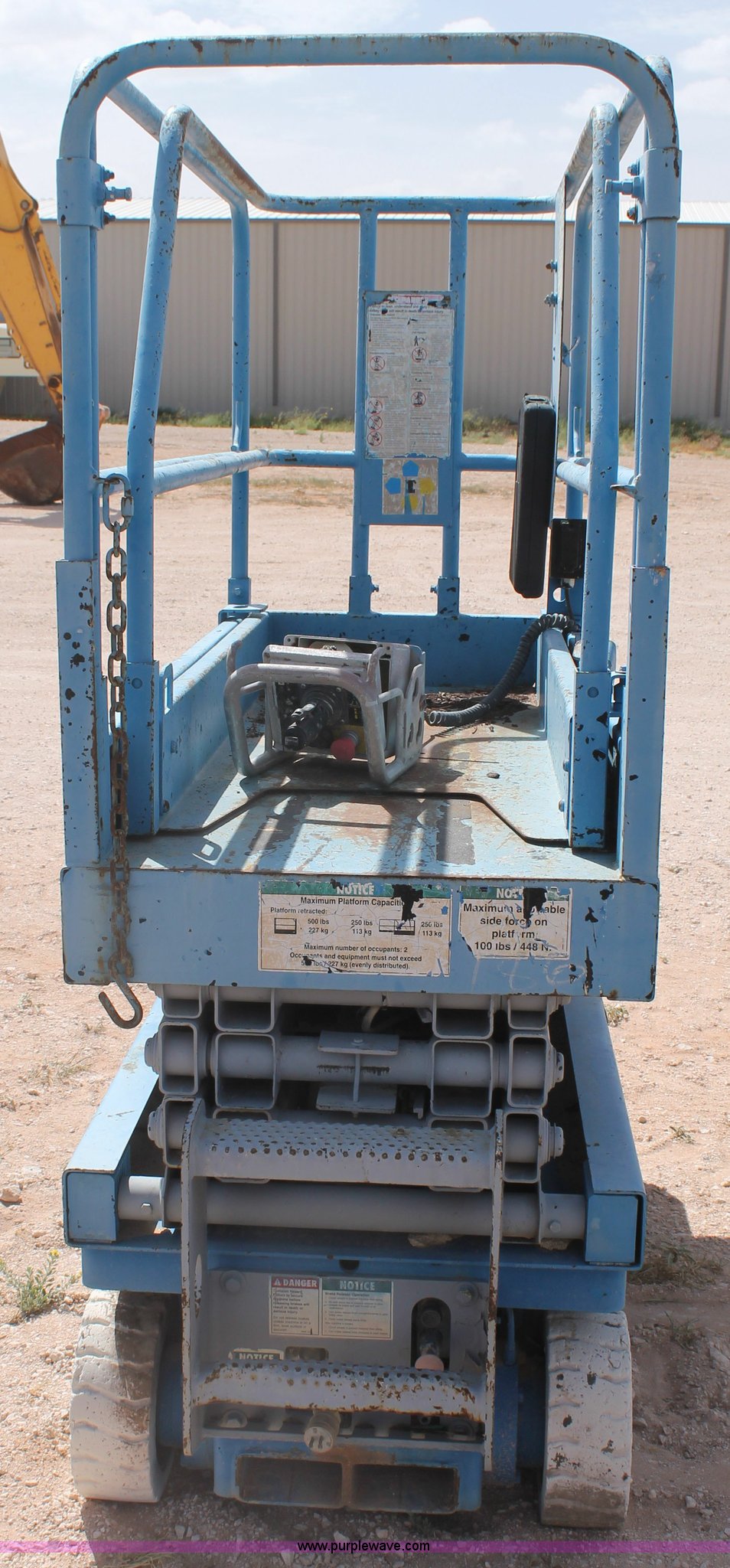 Purple Wave is selling a used Scissor or Vertical Lift in Texas. This item is a Genie GS-1930 scissor lift with the following: 976 hours on meter, 500 lbs maximum lift capacity, Four stage lift, Joystick controls, 64"L x 29"W platform, 58" slide-out platform extension, Electric over hydraulic operation, Some repairs needed