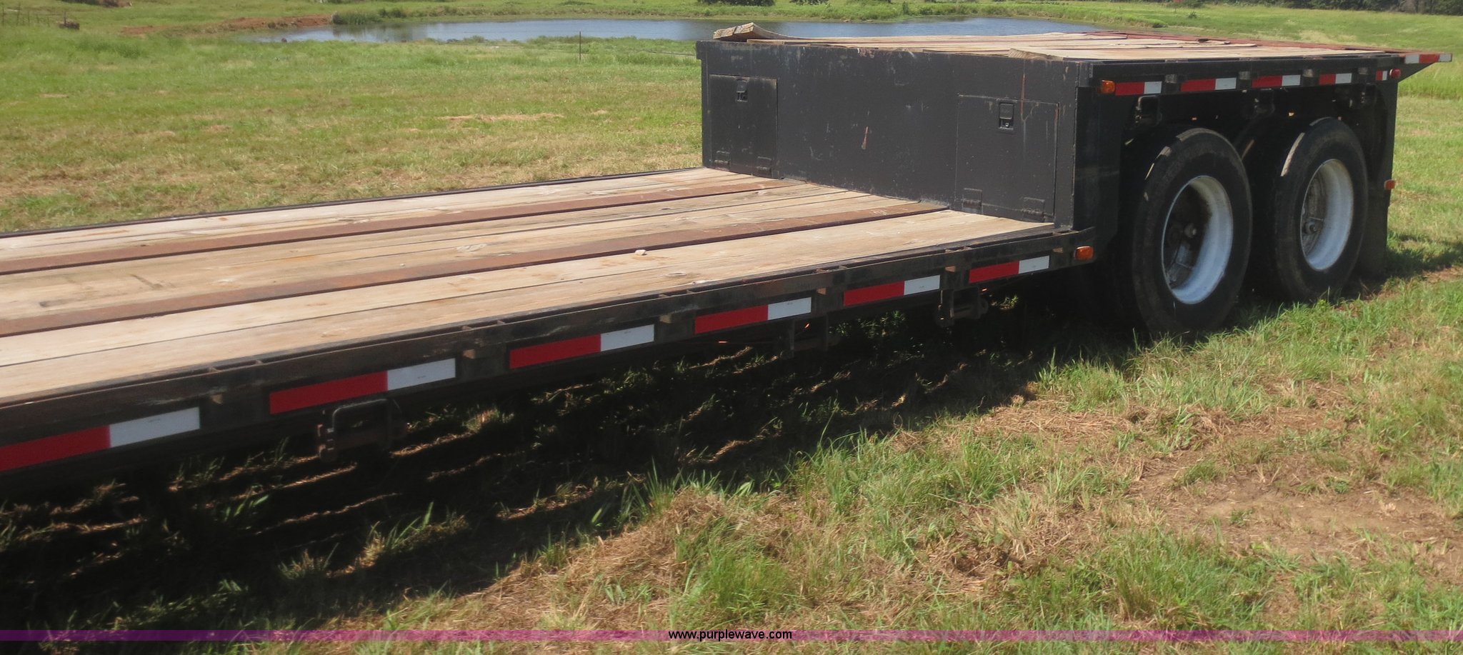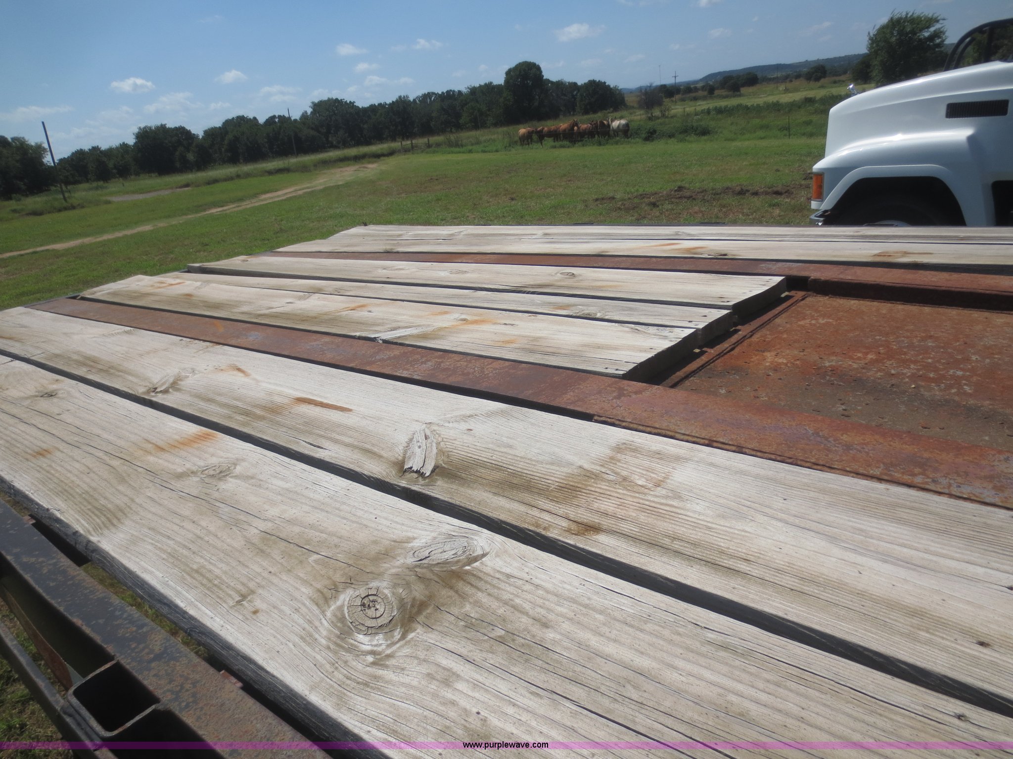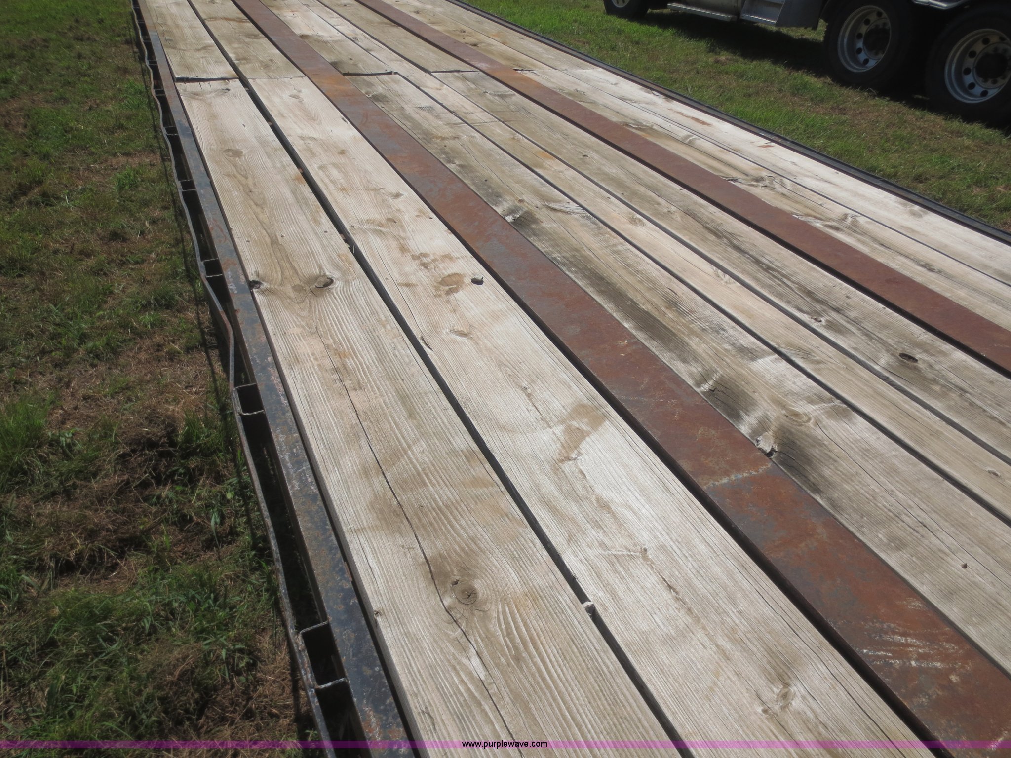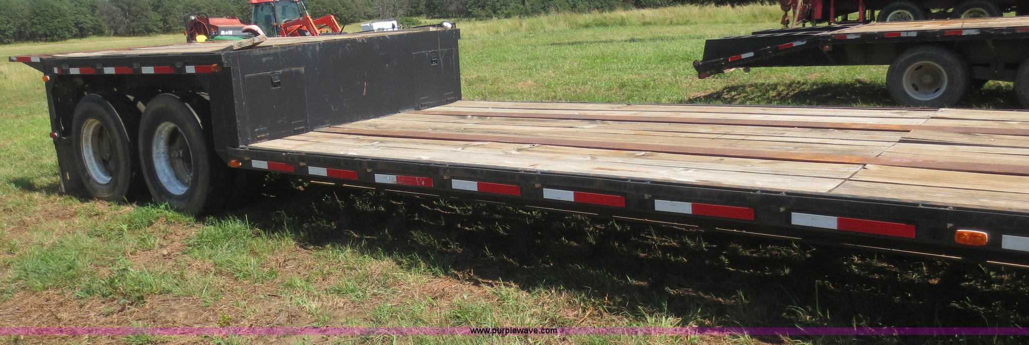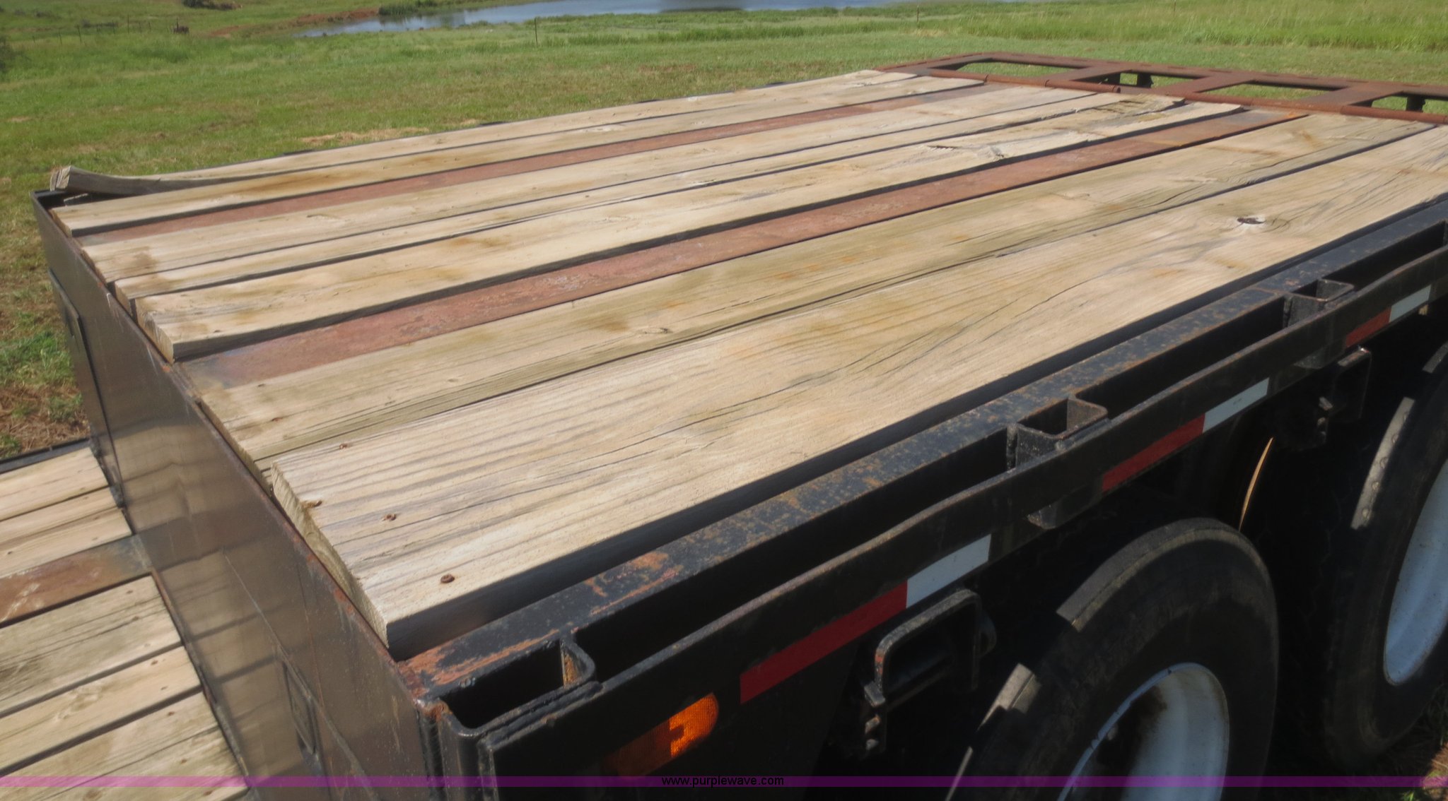 Purple Wave is selling a used Equip. Trailer in Oklahoma. This item is a 1981 shop built double drop semi trailer with the following: 101"W, 11'L upper deck, 29'L main deck, 9'8"L rear deck, 31"W rear folding wing, Wood deck, Steel frame, Spring suspension, Air brakes, 11R22.5 tires