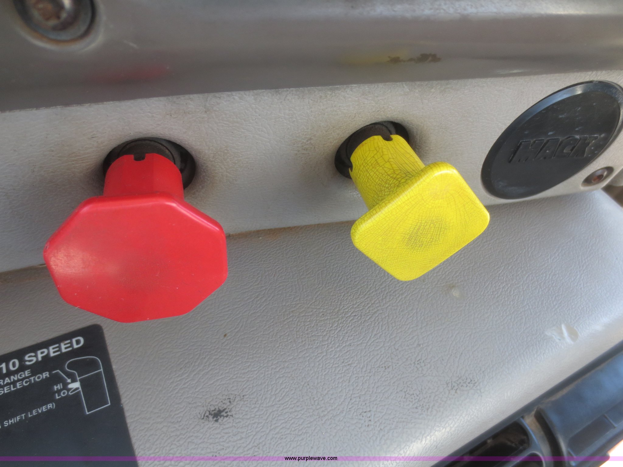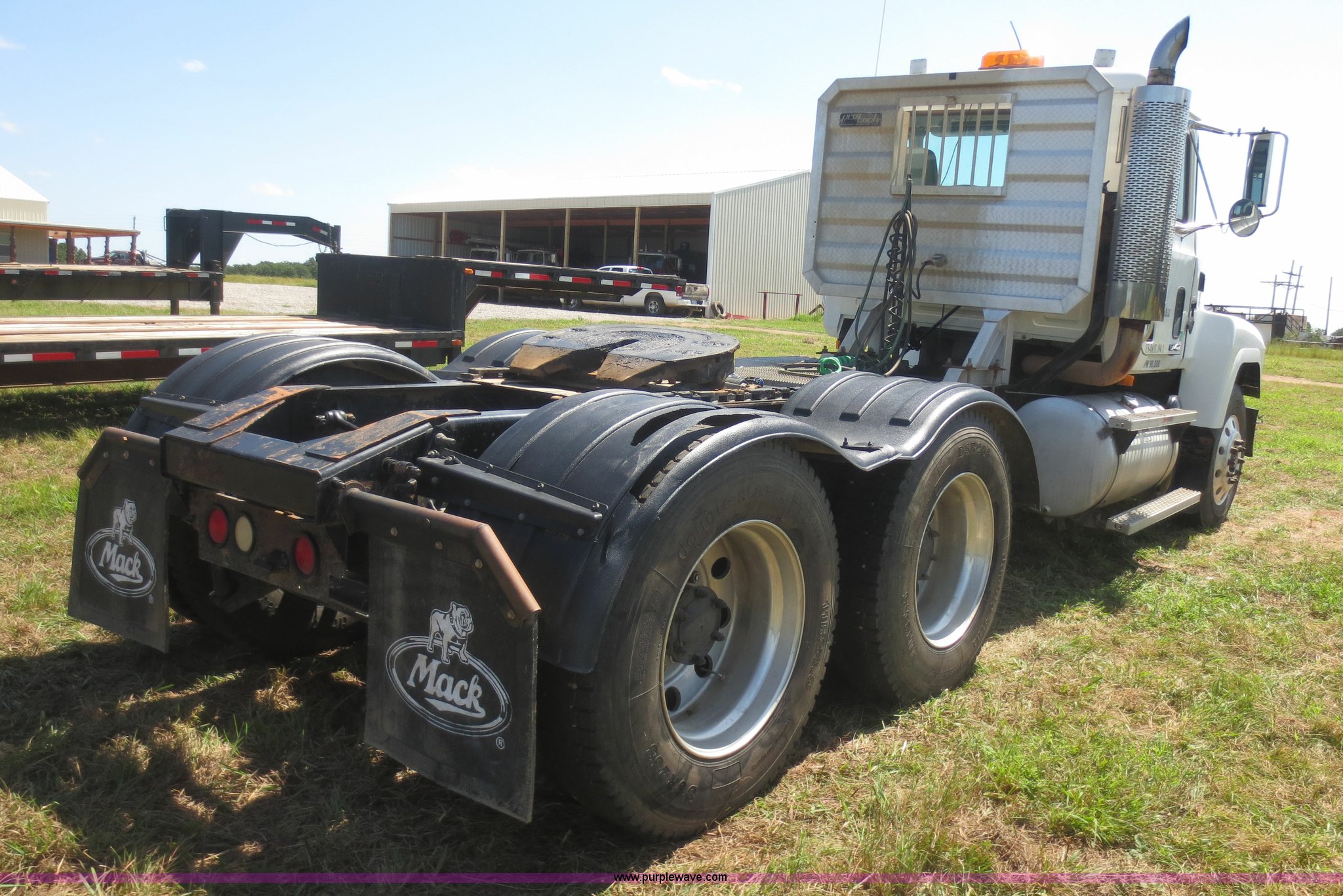 Purple Wave is selling a used Truck Tractor in Oklahoma. This item is a 2001 Mack CH613 semi truck with the following: 723,528 miles on odometer, 18,569 hours on meter, Mack E7 12.0L L6 diesel engine, 10 speed manual transmission, AC and heat, Tilt, Cruise, AM/FM/CD, Passenger daylight door, Power windows, Heated mirrors, Air suspension seat, Air ride cab, PTO, Dump valves, Headache rack, Window, Chrome bumper, Block heater, Air slide fifth wheel plate, Full plastic fenders, Dual 104 gallon fuel tanks, Single rear exhaust stack, Aluminum deck plate, Air suspension, Air brakes, Trailer brake controller, Jake brake, 206" wheelbase, 11R24.5 tires, GVWR 56,000 lbs, FAWR 12,000 lbs, IAWR 22,000 lbs, RAWR 22,000 lbs