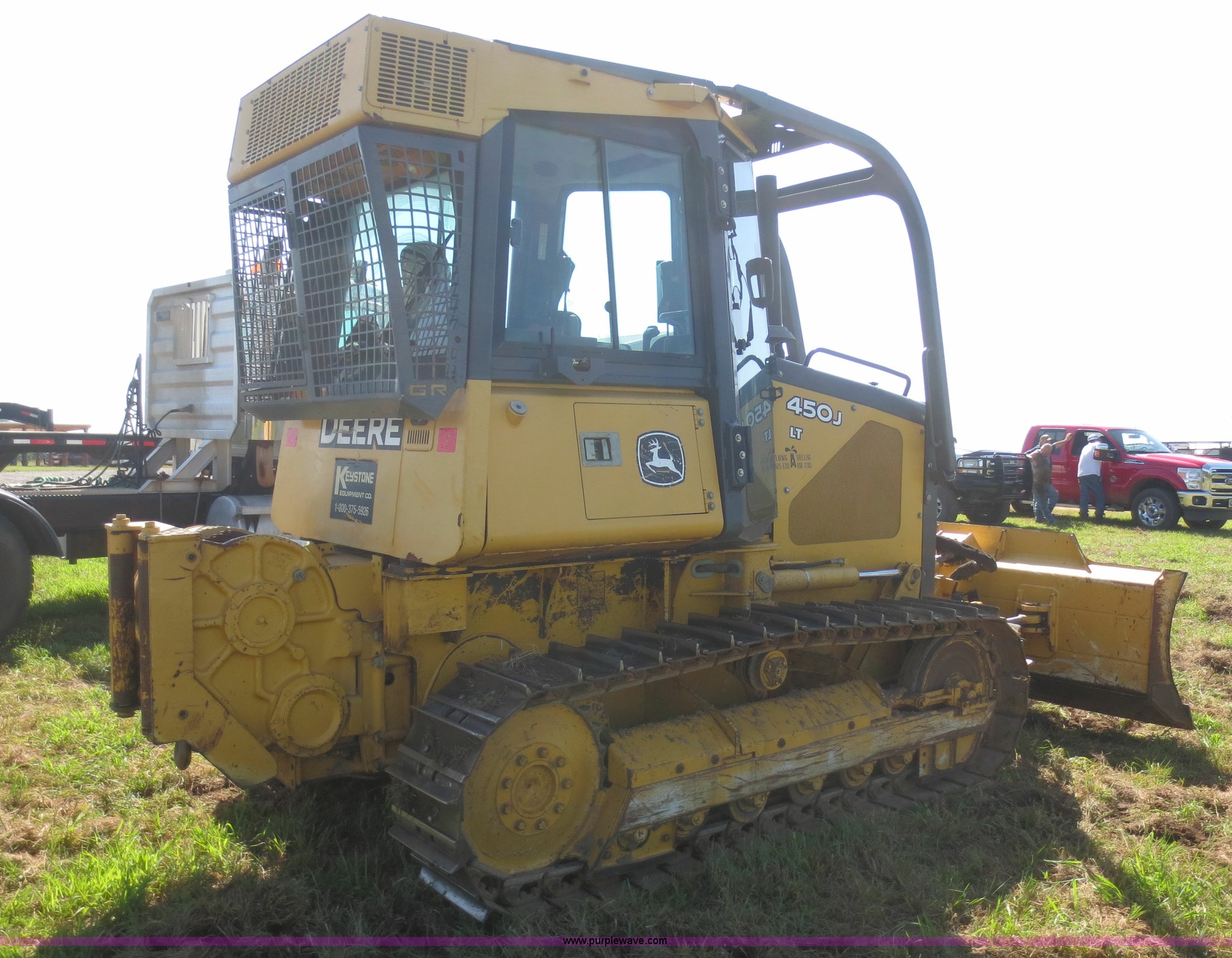 Purple Wave is selling a used Crawler Dozer in Oklahoma. This item is a 2006 John Deere 450J LT dozer with the following: 1,447 hours on meter, John Deere 4045T 4.5L four cylinder diesel engine, 70 HP, Serail 6JDXL04.5062, Hydrostatic transmission, Enclosed cab, AC, AM/FM/CD, Suspension seat, Front and rear work lights, Front and rear wipers, Sweeps, Rear screen guard, Engine enclosures, Joystick steering, Six way dozer, 8'W dozer face, John Deere rear winch, Serial TOWM133700267, John Deere undercarriage, 15.5"W single grouser track pads, 16,283 lbs. base operating weight, Serial T0450JX128109