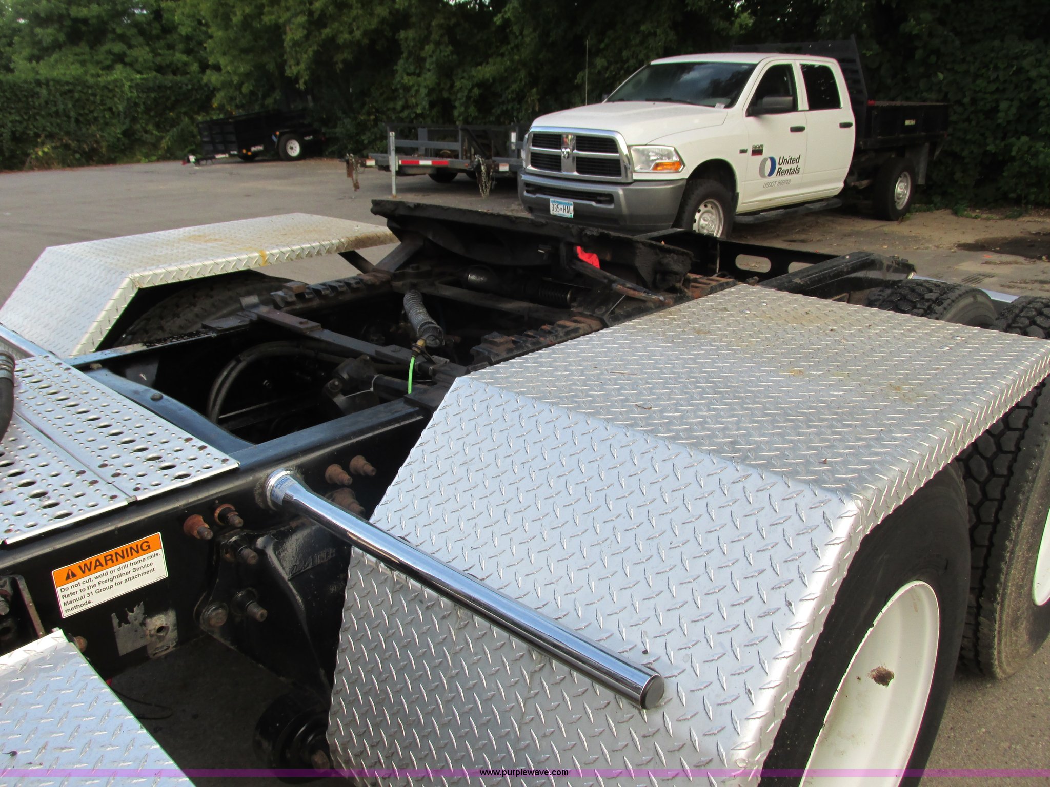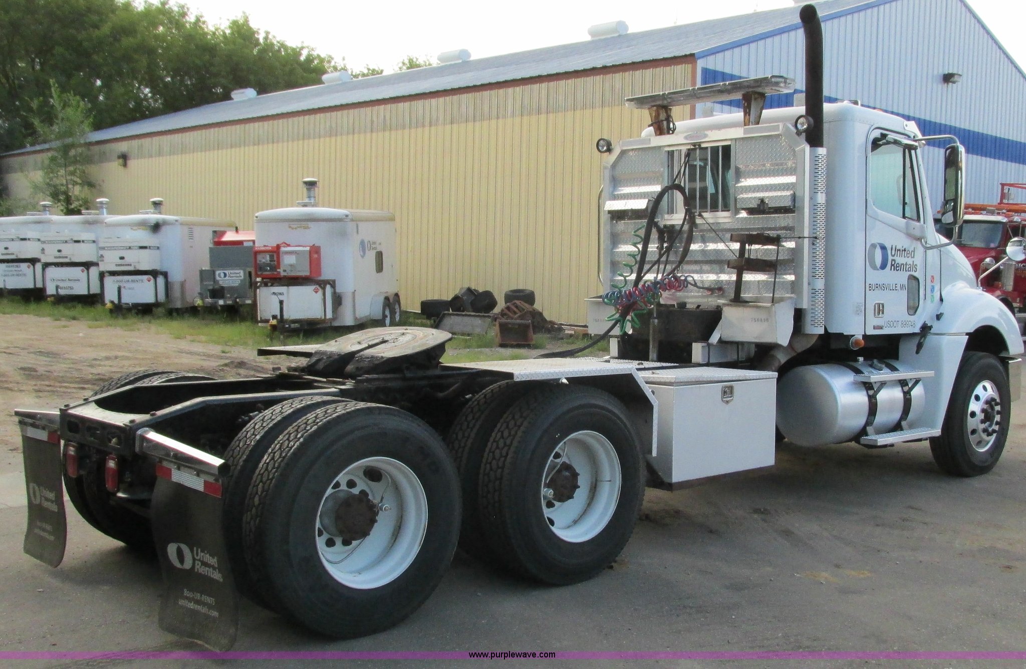 Purple Wave is selling a used Truck Tractor in Minnesota. This item is a 2009 Freightliner Columbia semi truck with the following: 192,830 miles on odometer, Detroit Diesel 14.8L L6 diesel engine, Eaton Fuller 10 speed manual transmission, Twin screw, AC and heat, Tilt, Cruise, AM/FM/CD, Passenger daylight door, Power windows, Heated mirrors, Air suspension seat, PTO, Wet kit, Dump valves, Storage box, Work lights, Warning beacon light, Headache rack, Window, Storage, Chain hanger, Exterior visor, Chrome bumper, Dual 80 gallon fuel tanks, Aluminum half fenders, Aluminum deck plate, Single rear exhaust stack, Air suspension, Air brakes, Jake brake, Cats eye tire pressure maintenance system, 216" wheelbase, 11R22.5 tires, GVWR 53,220 lbs, FAWR 13,220 lbs, IAWR 20,000 lbs, RAWR 20,000 lbs, EIN 750895RA