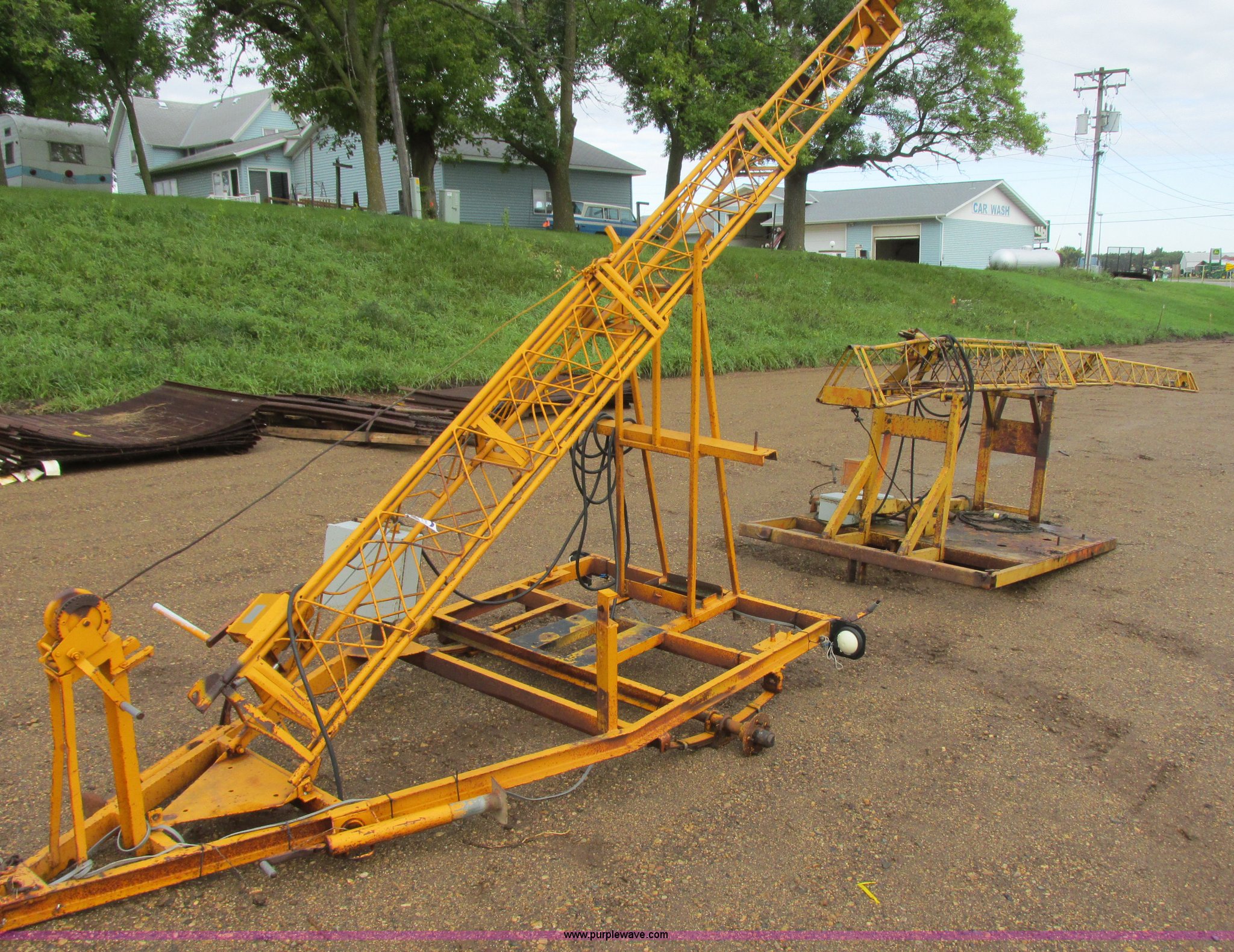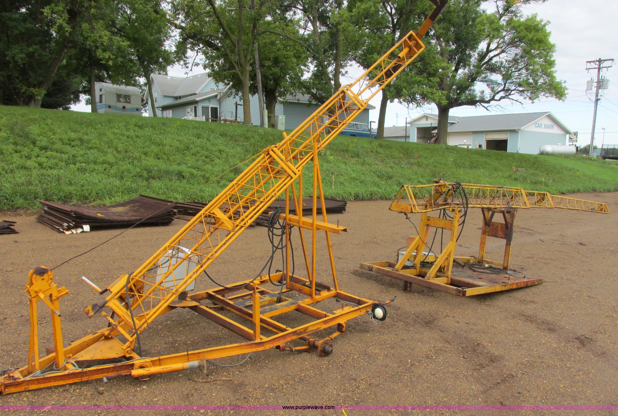 (2) light plants. (2) 9.5'L extendable sections Manual extension cable, Cosmetic damage, Rust, Bent, Axle removed, 11'L x 68"W (2) front mounted jack stands, Single rear mounted jack stand, (2) 9.5'L extendable sections, Cosmetic damage, Wheels missing. Rupp Construction. Slayton, MN 56172