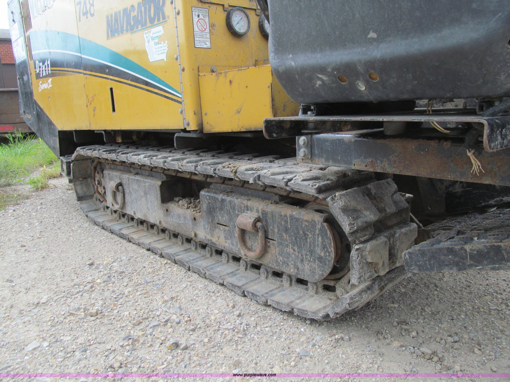 Purple Wave is selling a used Directional Boring Unit in Iowa. This item is a 2005 Vermeer D7X11 Series II Navigator directional boring machine with the following: 4,199 hours on meter, Kubota diesel engine, FMC duplex pump, Front stake down system, Approximately 55' of 1.75" diameter drill stem pipe in magazine, 9" rubber over steel track pads, Serial 1VRZ130Z651000400, Unit# 748