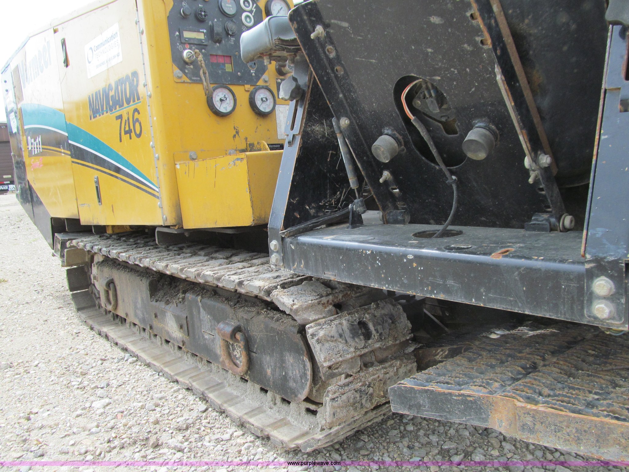 Purple Wave is selling a used Directional Boring Unit in Iowa. This item is a 2005 Vermeer D7X11 Series II Navigator directional boring machine with the following: 3,416 hours on meter, Kubota diesel engine, Front stake down system, FMC duplex pump, 9"W rubber over steel pads, Approximately 55' of 1.75" diameter drill stem in magazine, Serial 1VRZ130Z751000373, Unit# 746