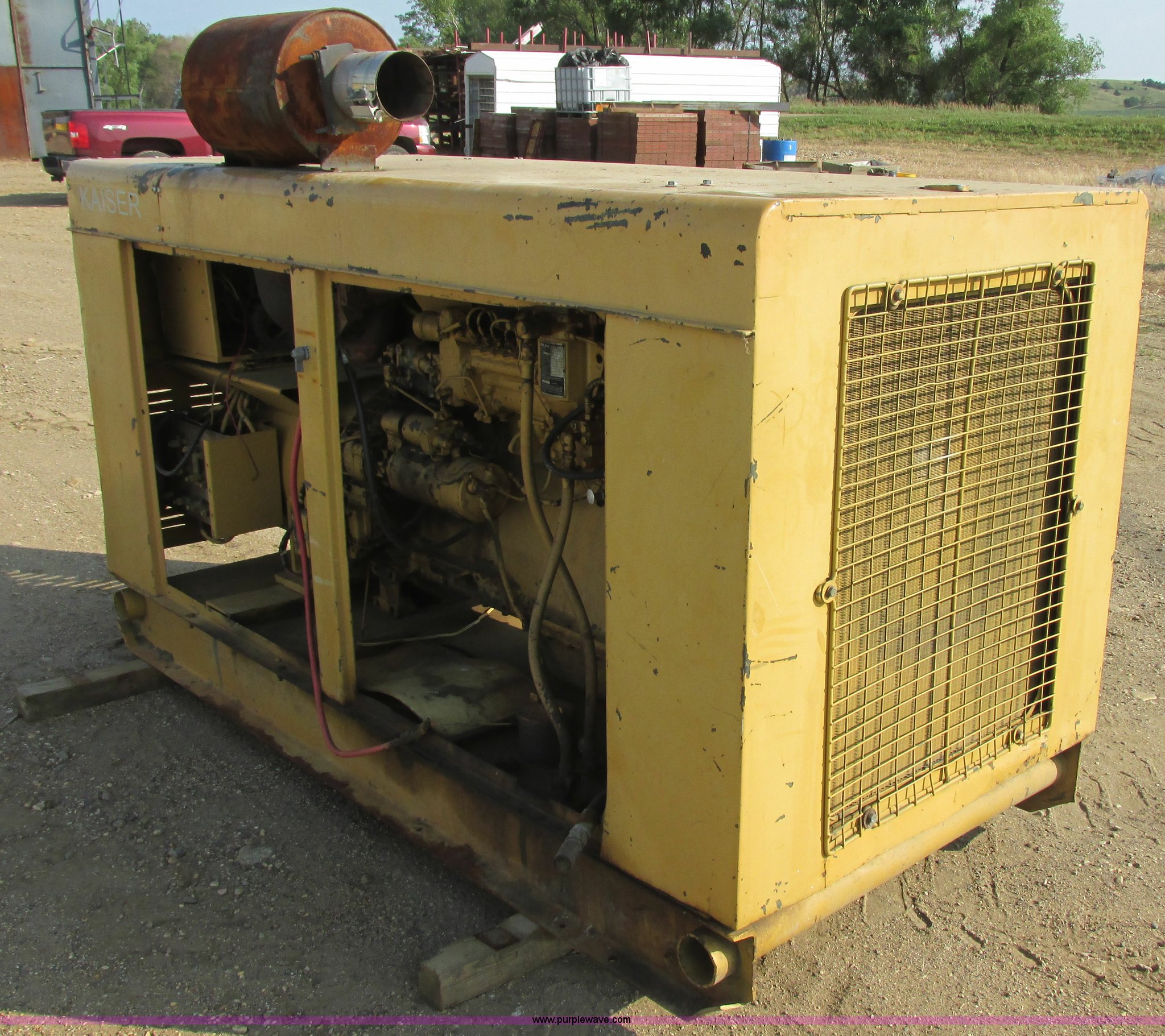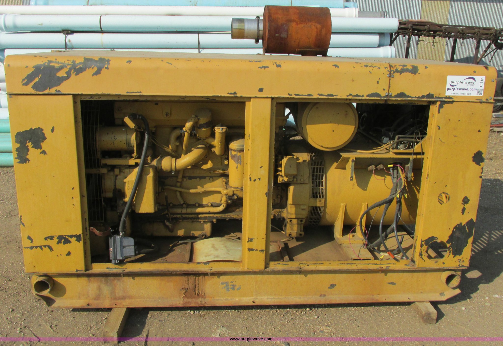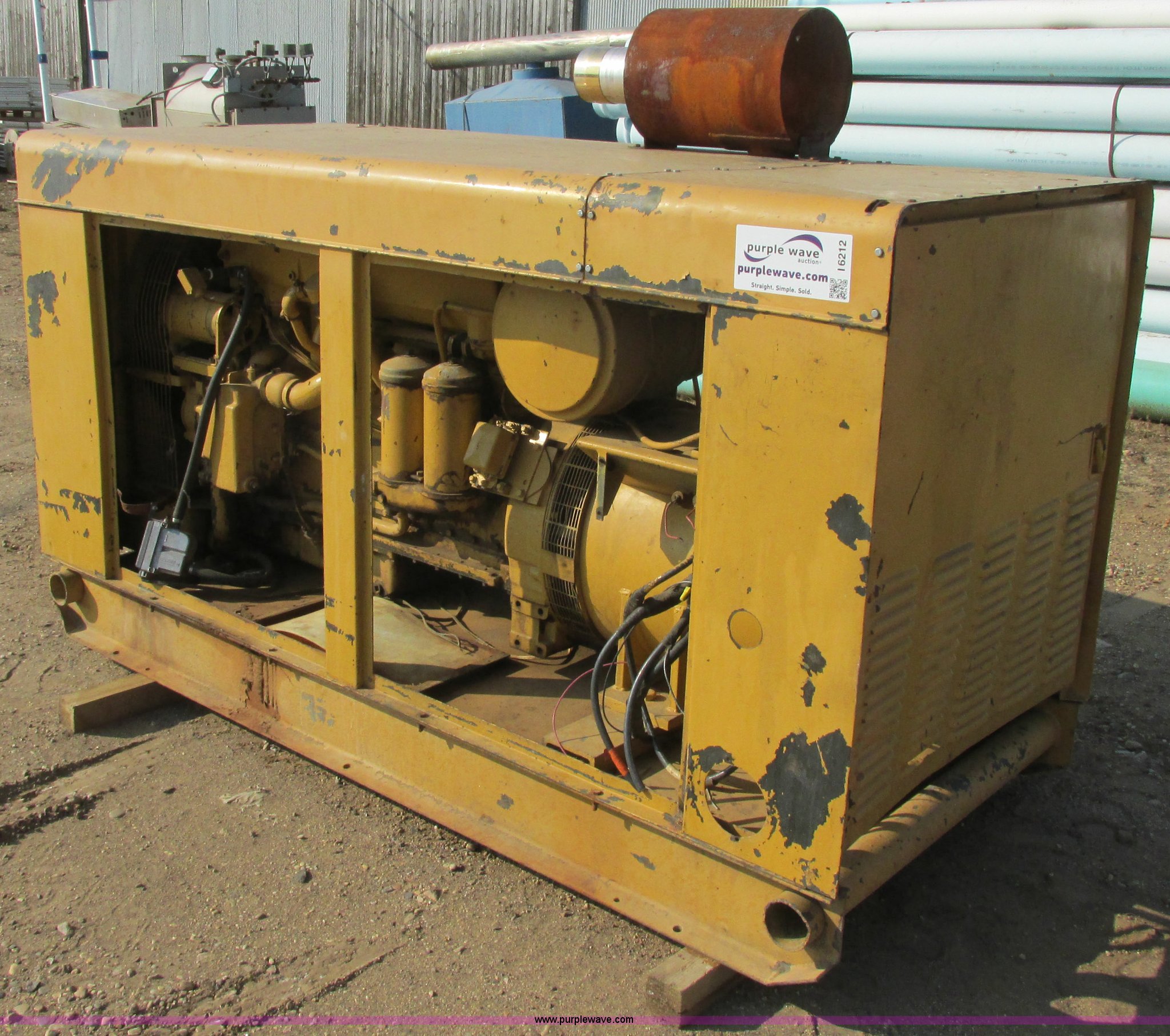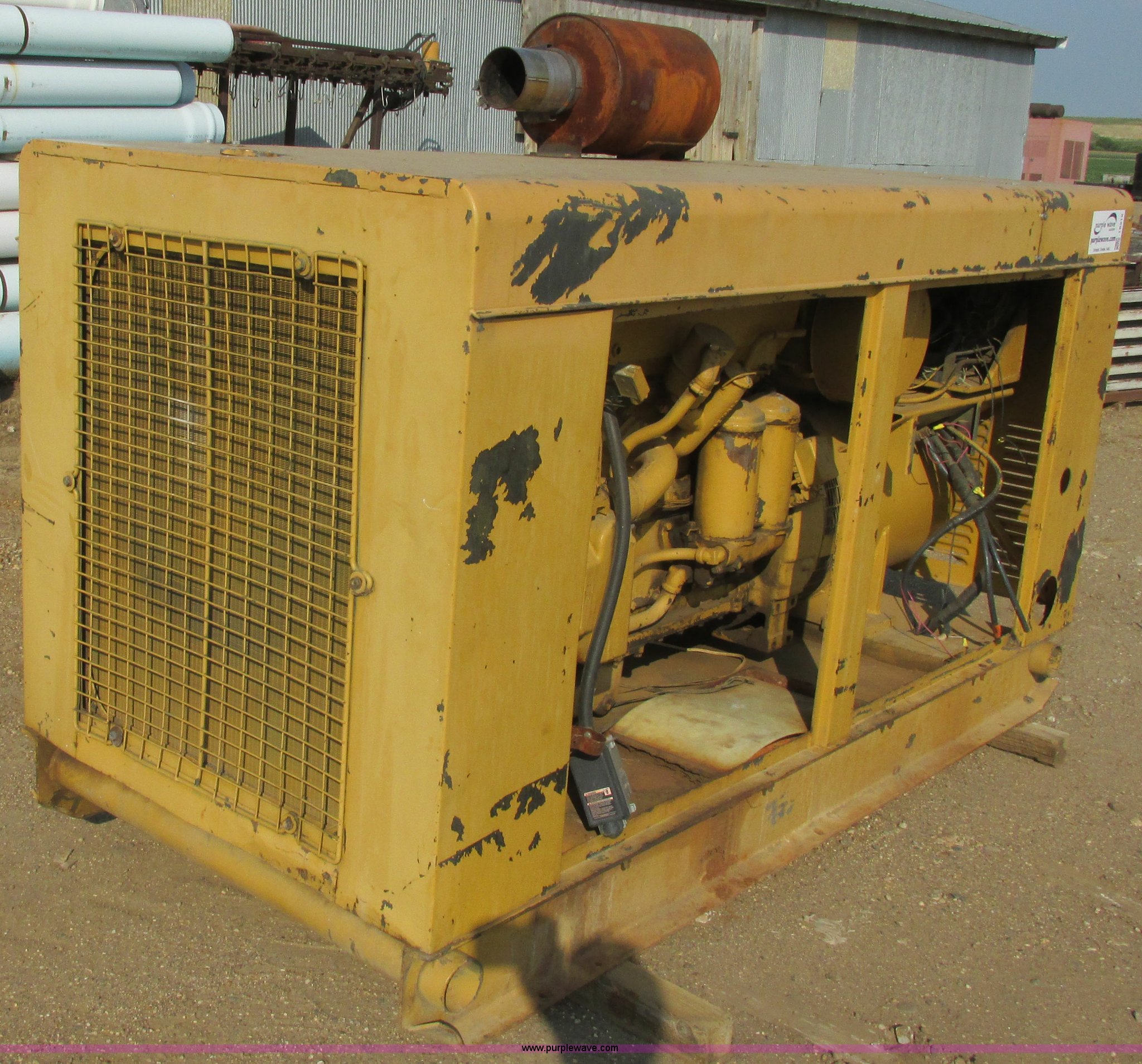 Purple Wave is selling a used Generator Set in South Dakota. This item is a Holt Brothers diesel standby generator with the following: Model HB3333C, 758 hours on meter, Caterpillar D333 six cylinder diesel engine, 158 HP, Serial 87B1928, 100 kW rating, 94"L x 43"W x 65"H including muffler, No side engine covers, Serial HB846