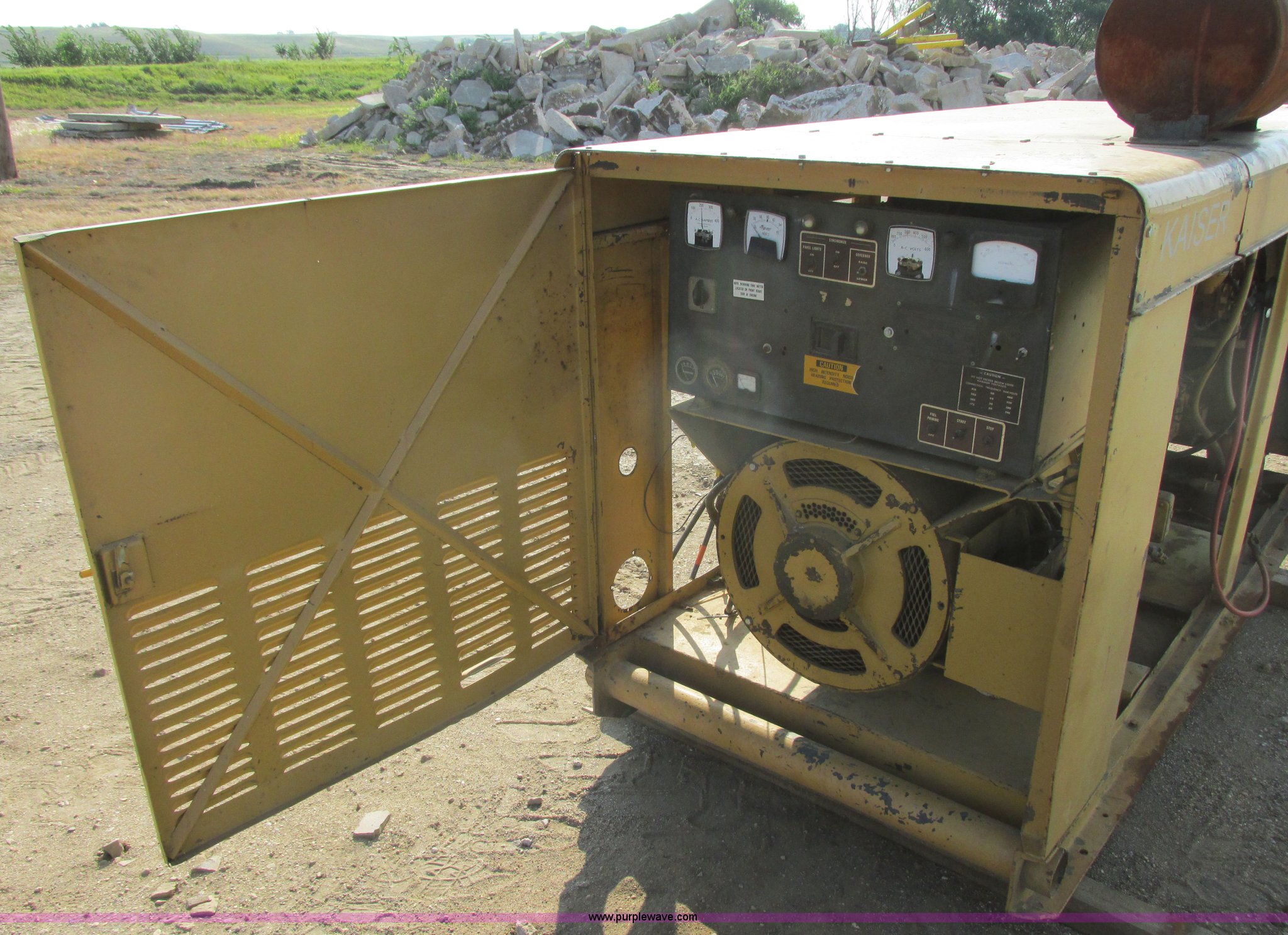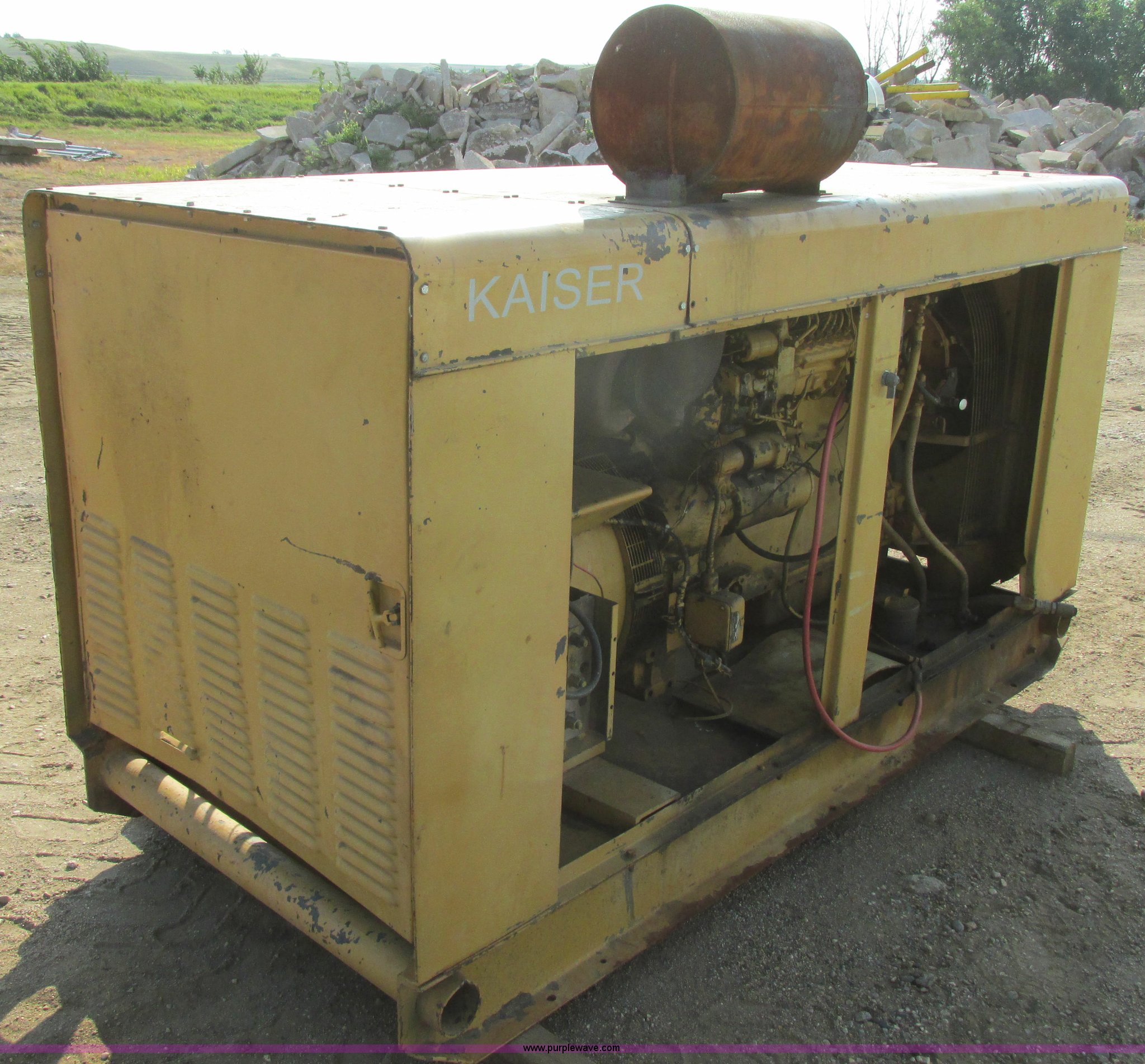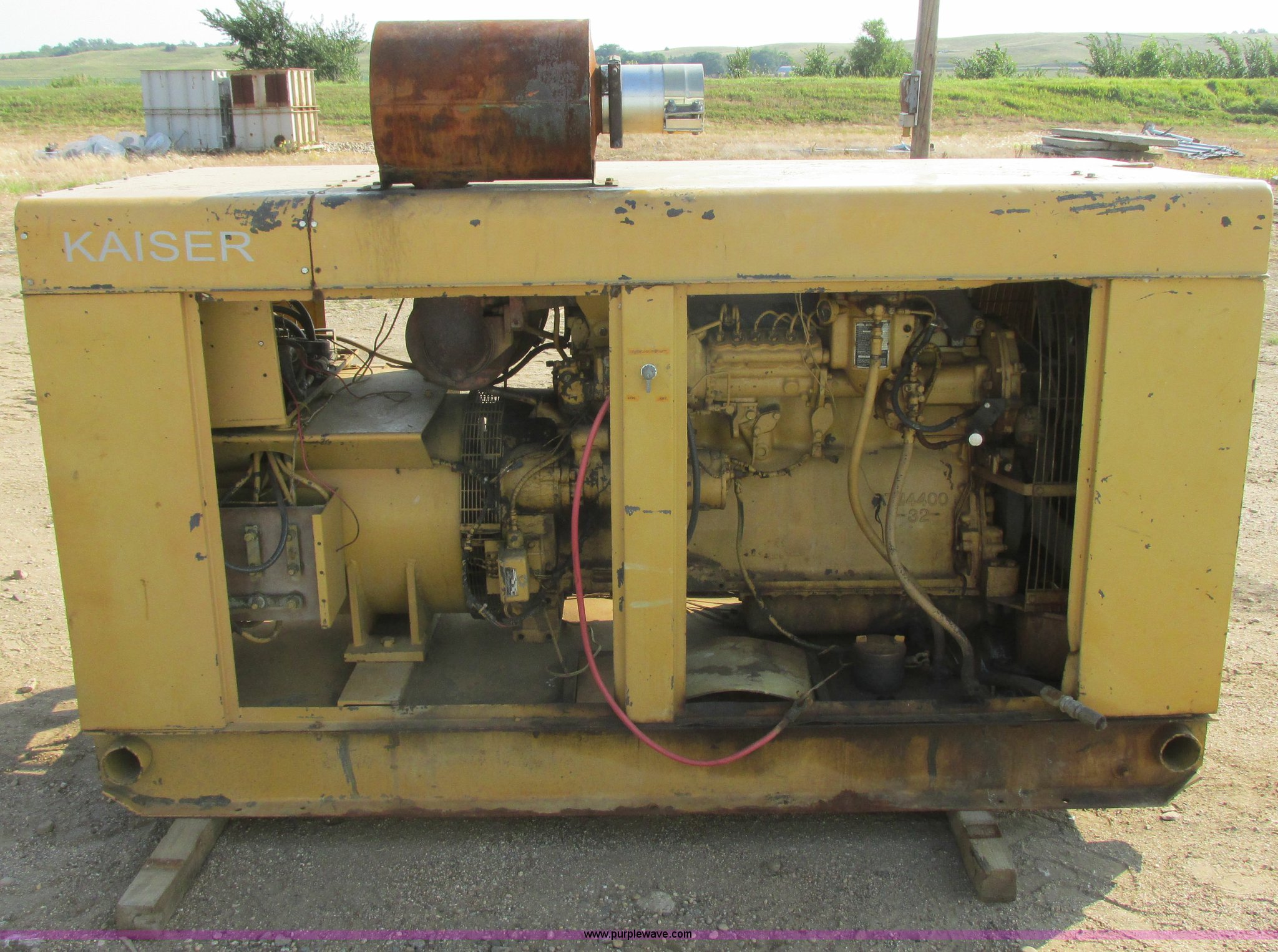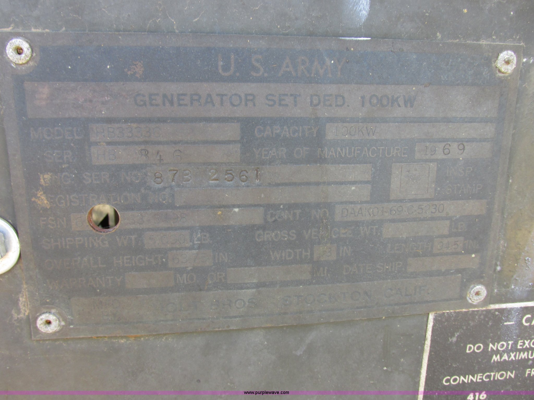 Purple Wave is selling a used Generator Set in South Dakota. This item is a Holt Brothers diesel standby generator with the following: Model HB3333C, 758 hours on meter, Caterpillar D333 six cylinder diesel engine, 158 HP, Serial 87B1928, 100 kW rating, 94"L x 43"W x 65"H including muffler, No side engine covers, Serial HB846