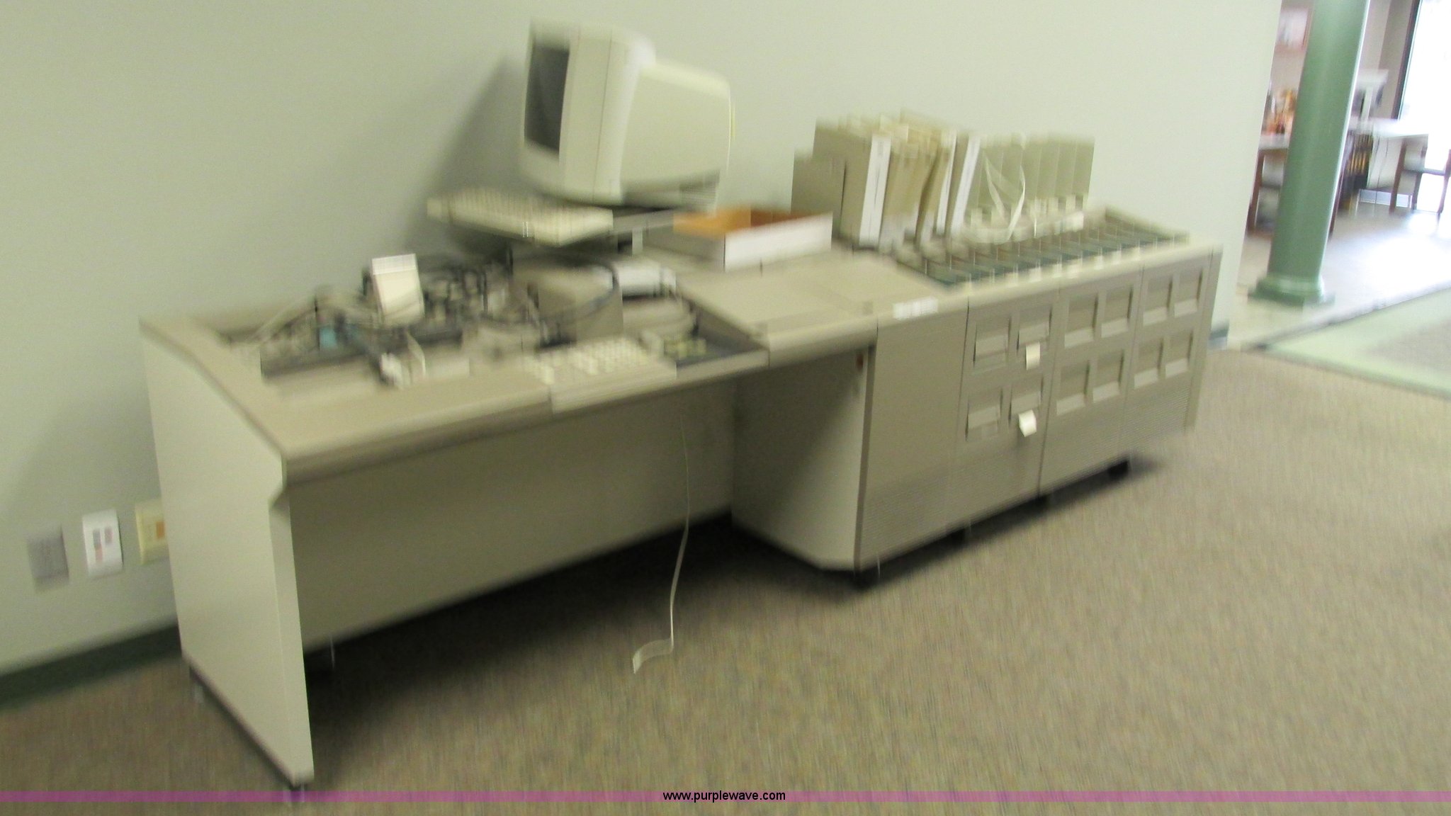 Purple Wave is selling a used Office Supplies and Equip. in Missouri. This item is a NCR check processing machine with the following: Model NT7695B, NCK monitor, Approx. 15"D, Keyboard, Approx. 126"L x 28"W, Sorter model 7800, Operators manual, Serial 90-3350236