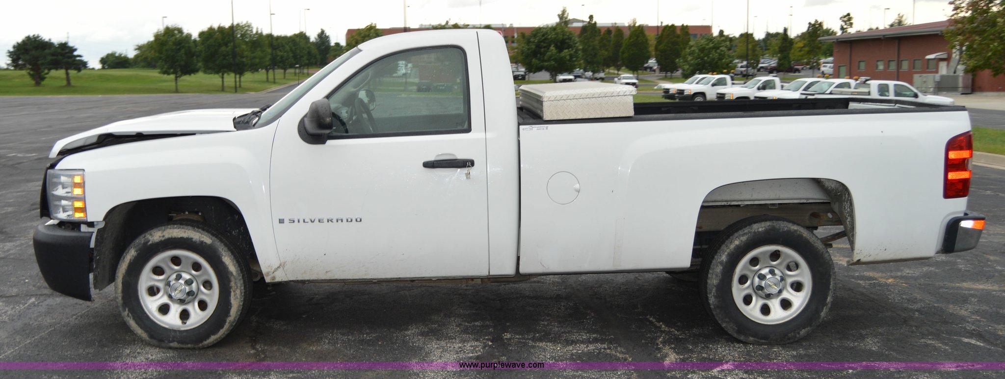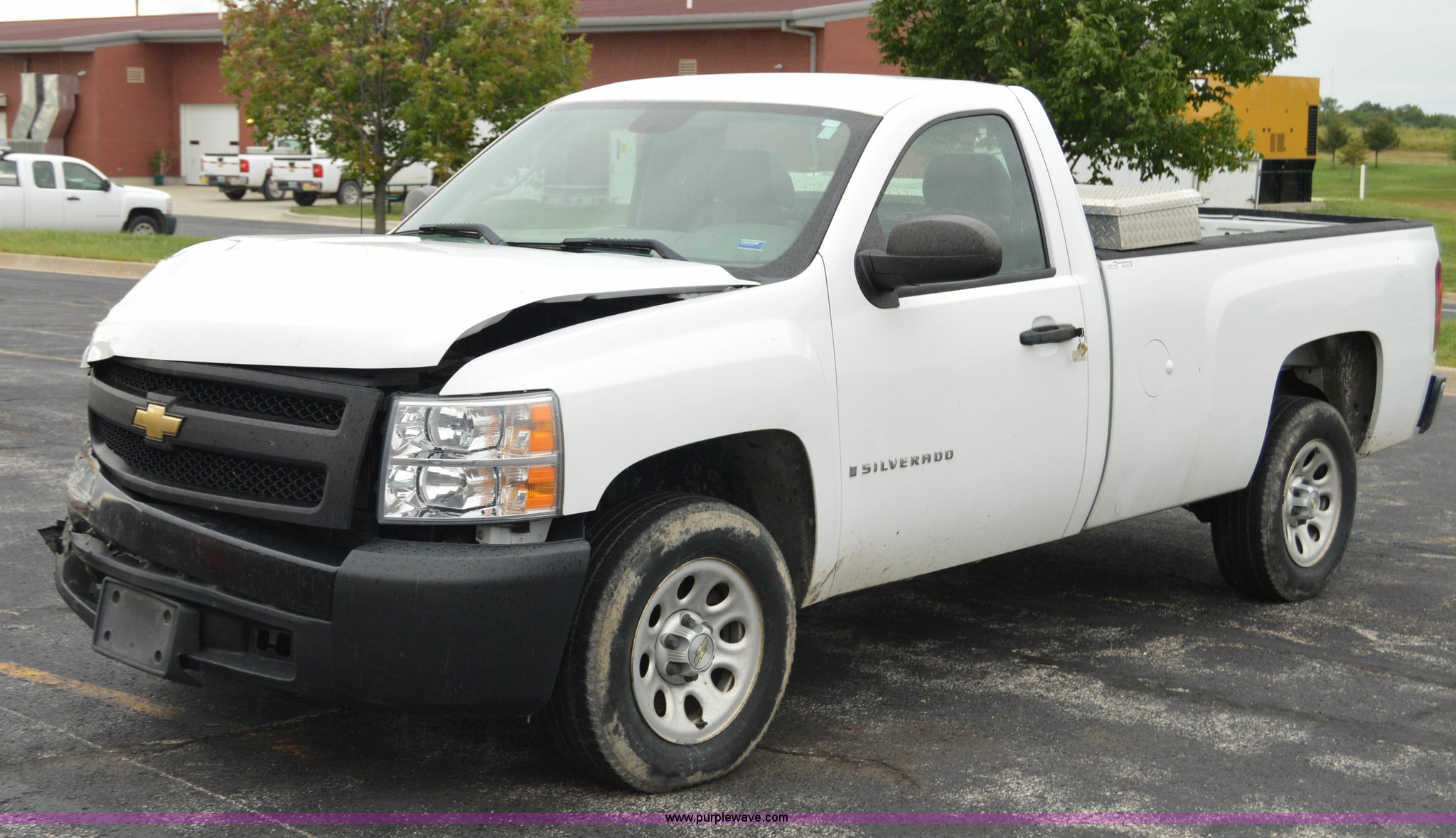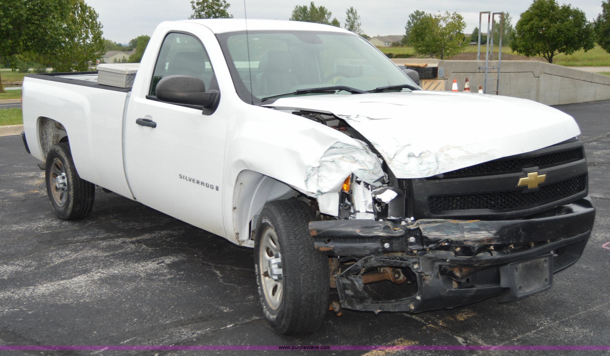 Purple Wave is selling a used 1/2 Ton Pickup or Van in Missouri. This item is a 2008 Chevrolet Silverado 1500 pickup truck with the following: 94,951 miles on odometer, 5.3L V8 OHV 16V FFV gas engine, Automatic transmission, AC and heat, Tilt, Cruise, AM/FM/CD, Manual windows and locks, Vinyl interior, Long bed, Toolbox, 245/70R17 tires, Front end damage, Broken tie rod/ball joint, Antifreeze leak, Not able to be driven, must towed or hauled