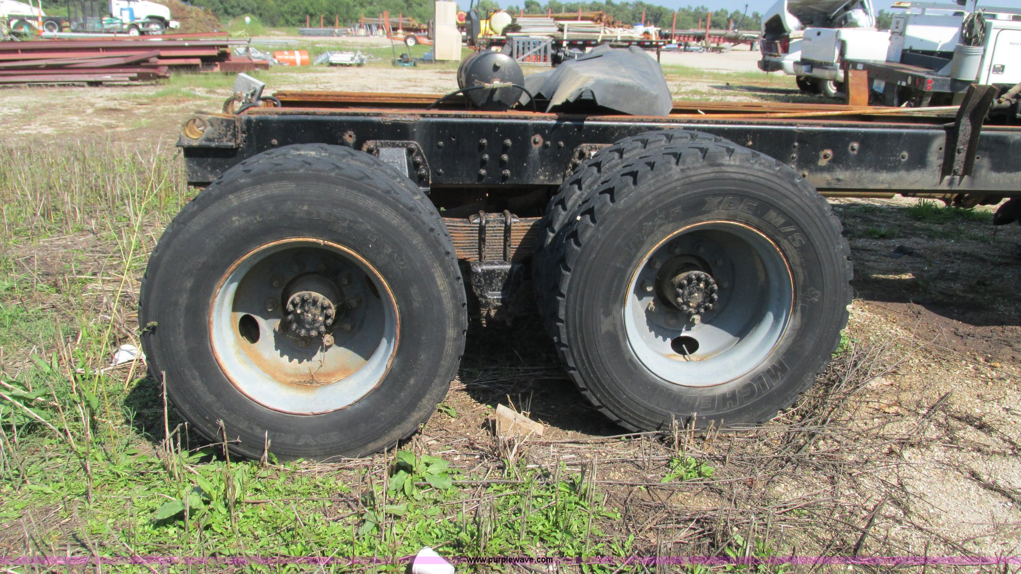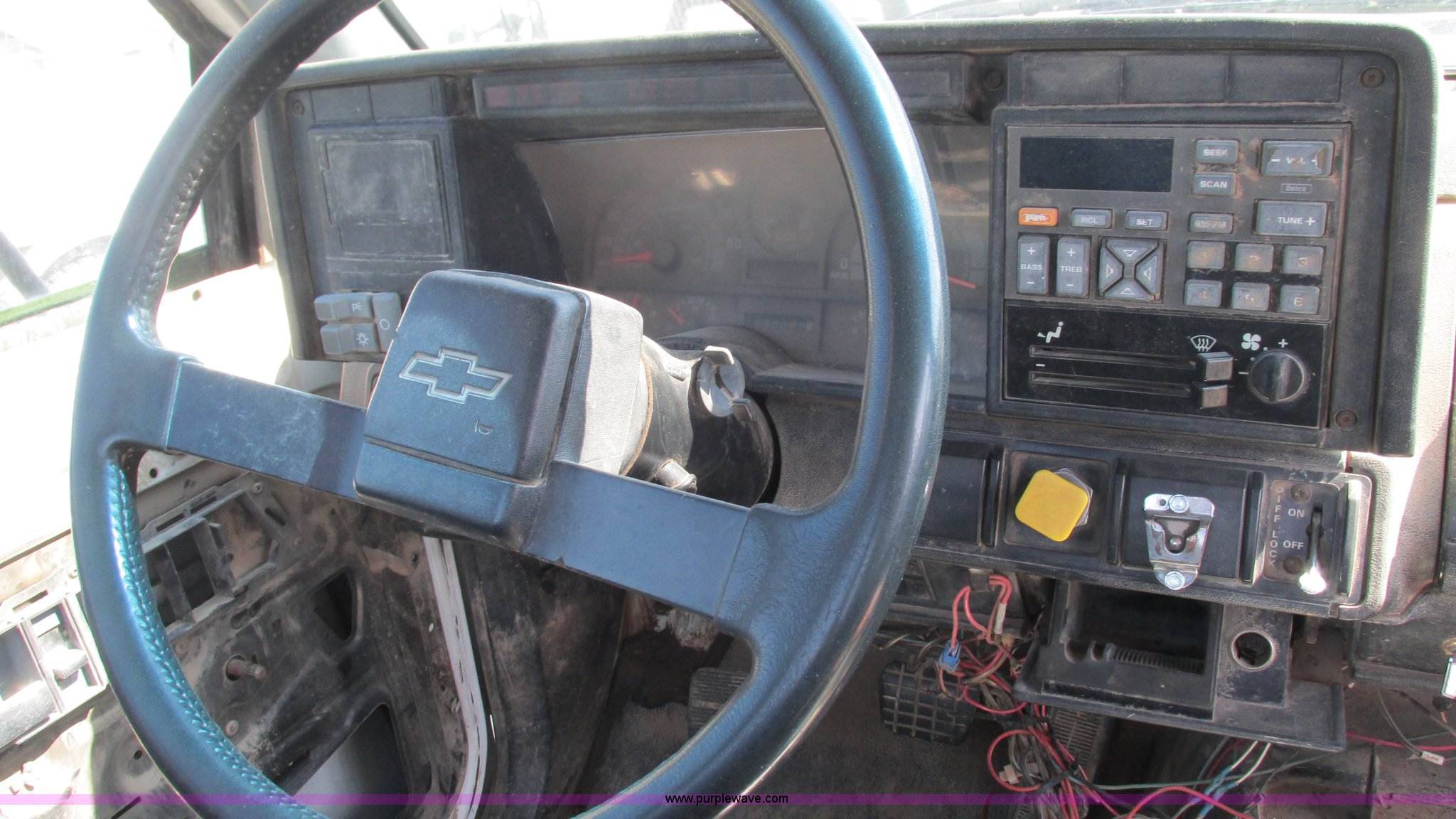 Purple Wave is selling a used Truck Chassis in Missouri. This item is a 1992 Chevrolet Kodiak truck cab and chassis with the following: 230,027 miles on odometer, 2,355 hours on meter, Caterpillar 3116 6.6L six cylinder diesel engine, 150 HP, Serial 7HJ06983, Manual transmission, Heat, AM/FM, Manual windows and locks, Three stage hydraulic lift cylinder, Previously used as dump truck, Air brakes, 11R22.5 tires, 15' from cab to rear of frame, Interior/exterior cosmetic damage, Dead battery, Must be jump started, Front bumper damage, Unit# 10164
