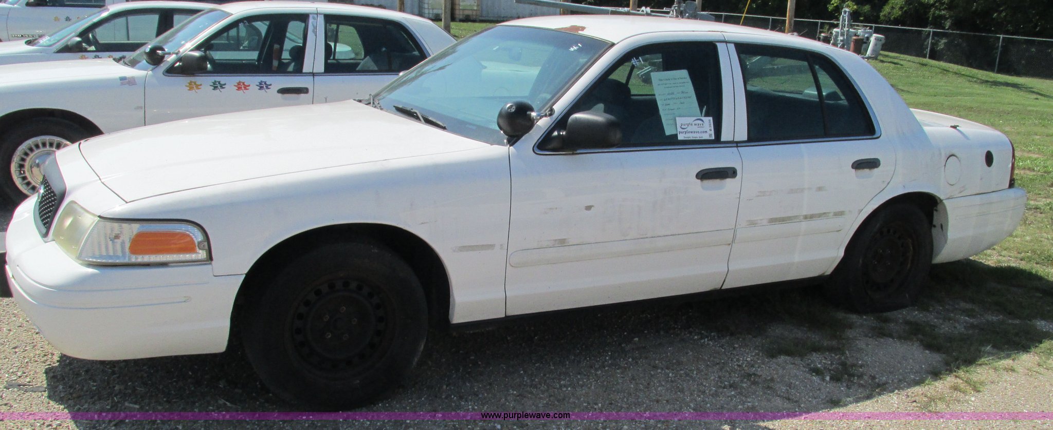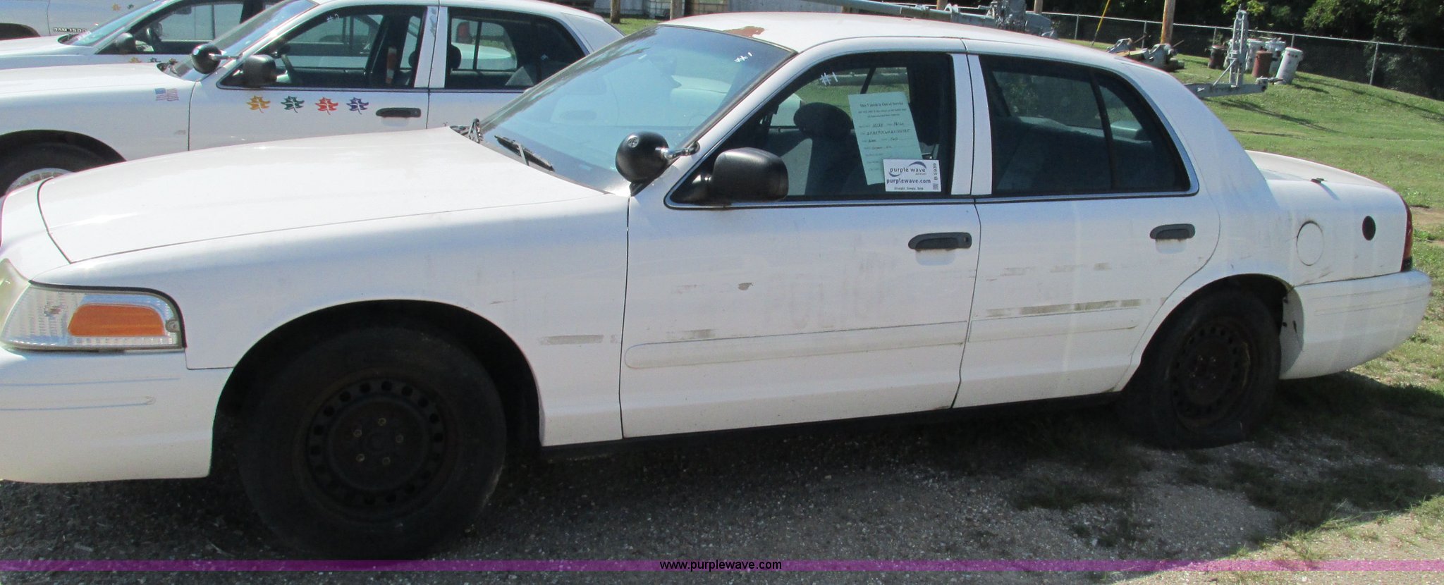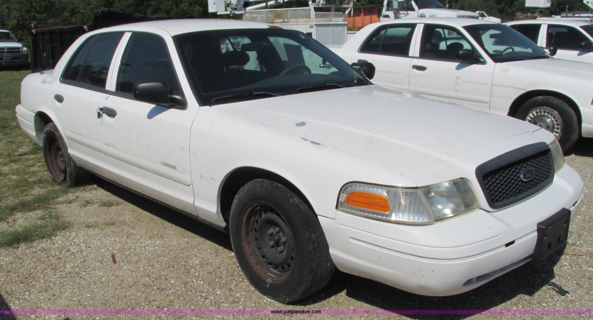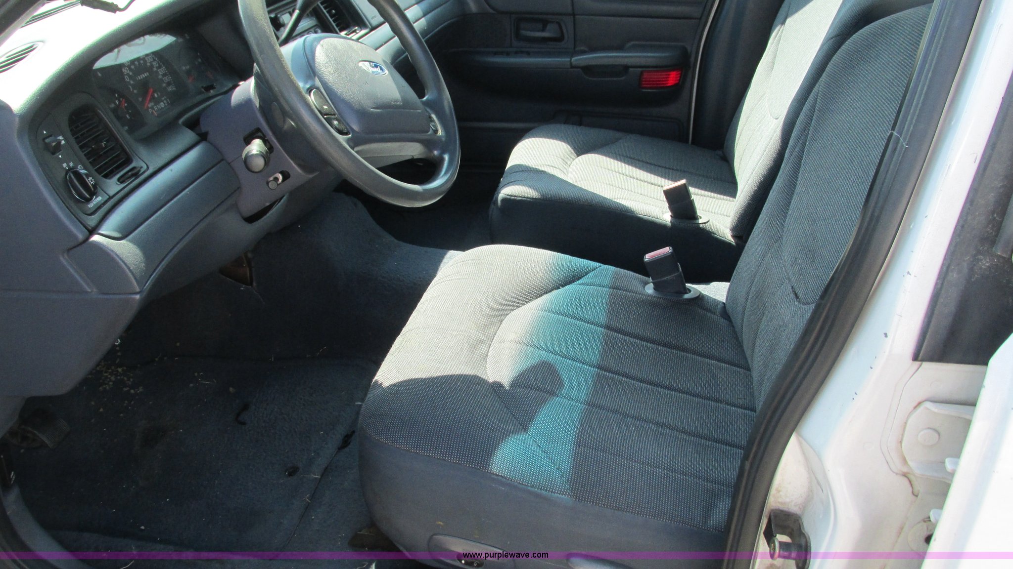 Purple Wave is selling a used Passenger Vehicle in Missouri. This item is a 2002 Ford Crown Victoria Police Interceptor with the following: 132,548 miles on odometer, 4.6L V8 SOHC 16V gas engine, Automatic transmission, AC and heat, Tilt, Cruise, AM/FM, Power windows, locks, and mirrors, Cloth interior, 2225/60R16 tires, Interior/exterior cosmetic damage, Dead battery, Flat tires, Unit# 10138