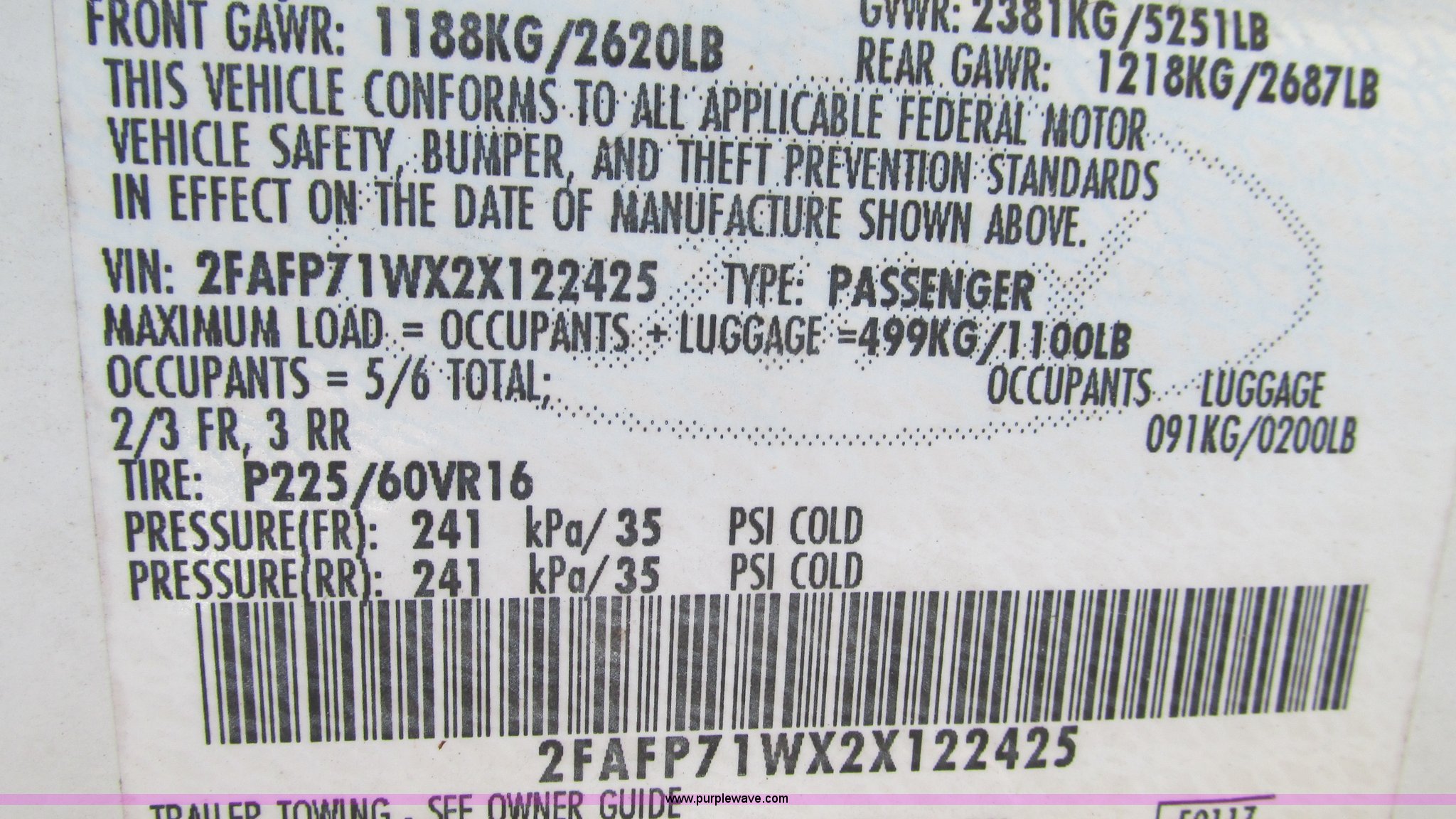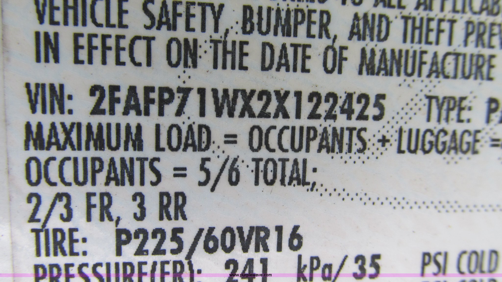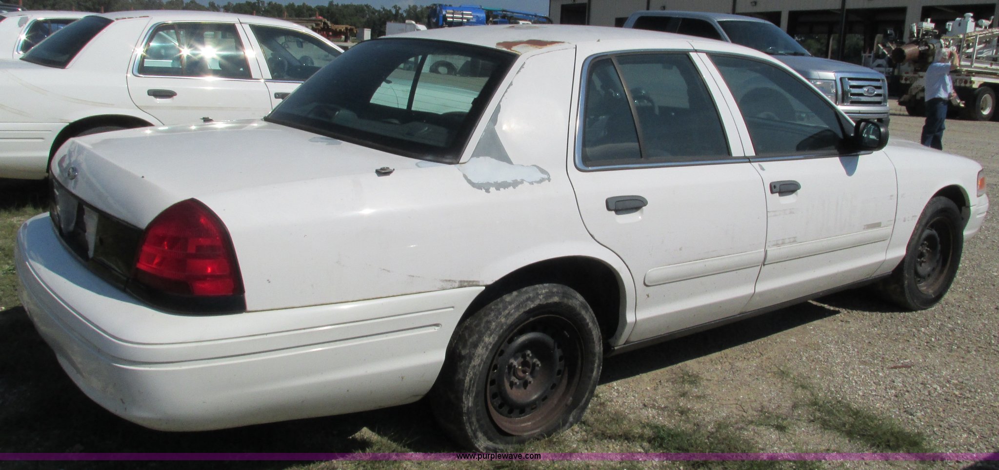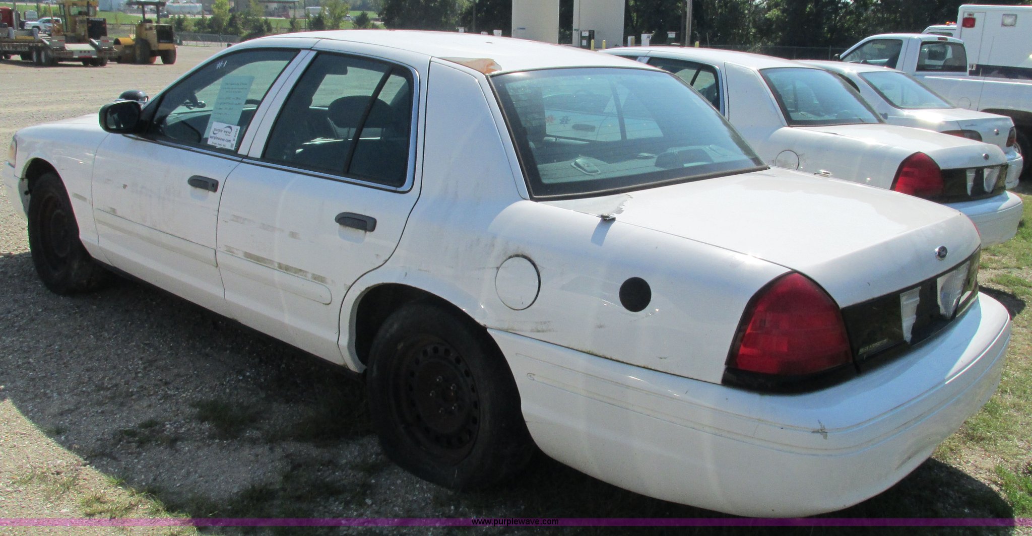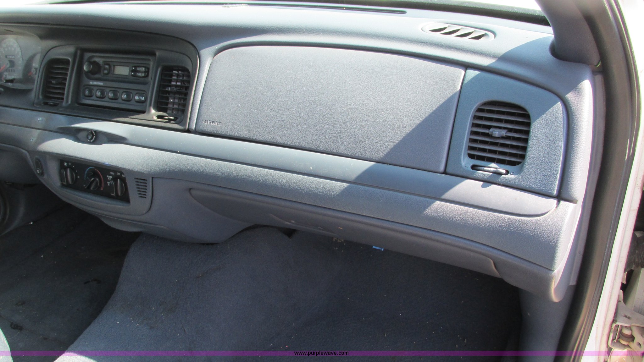 Purple Wave is selling a used Passenger Vehicle in Missouri. This item is a 2002 Ford Crown Victoria Police Interceptor with the following: 132,548 miles on odometer, 4.6L V8 SOHC 16V gas engine, Automatic transmission, AC and heat, Tilt, Cruise, AM/FM, Power windows, locks, and mirrors, Cloth interior, 2225/60R16 tires, Interior/exterior cosmetic damage, Dead battery, Flat tires, Unit# 10138