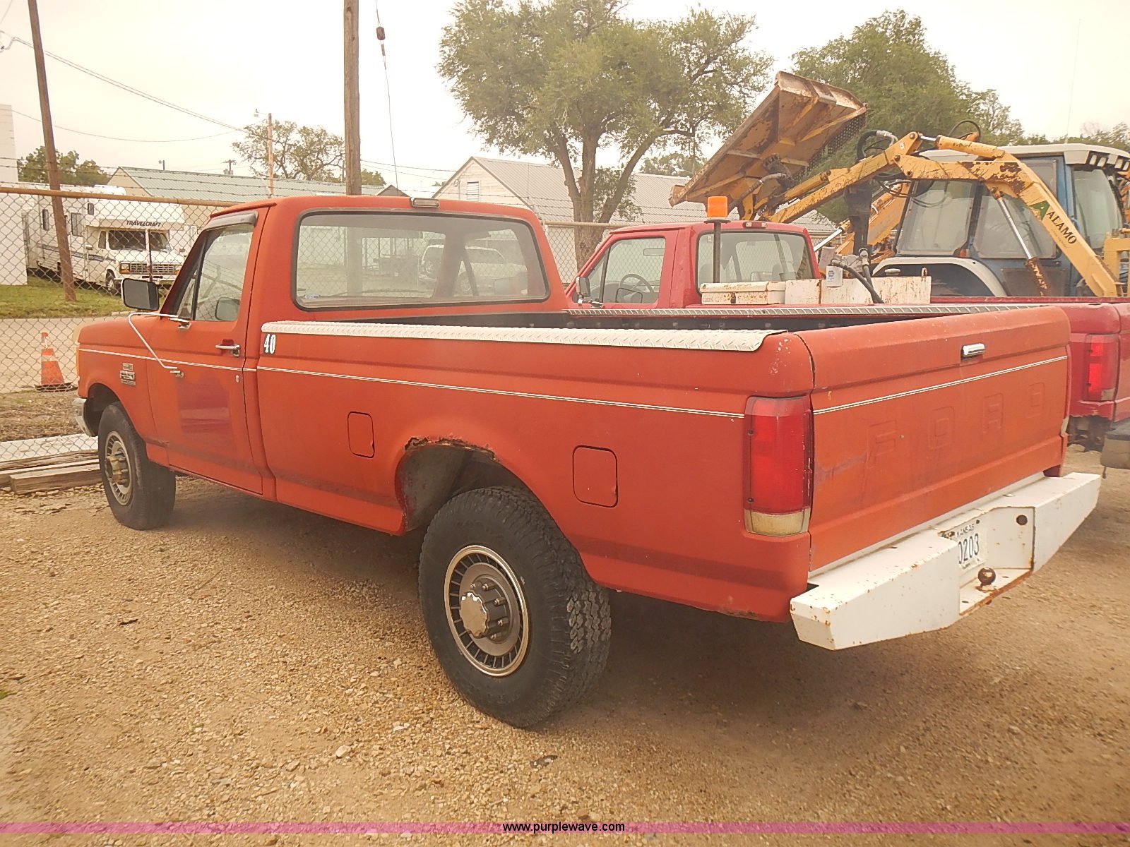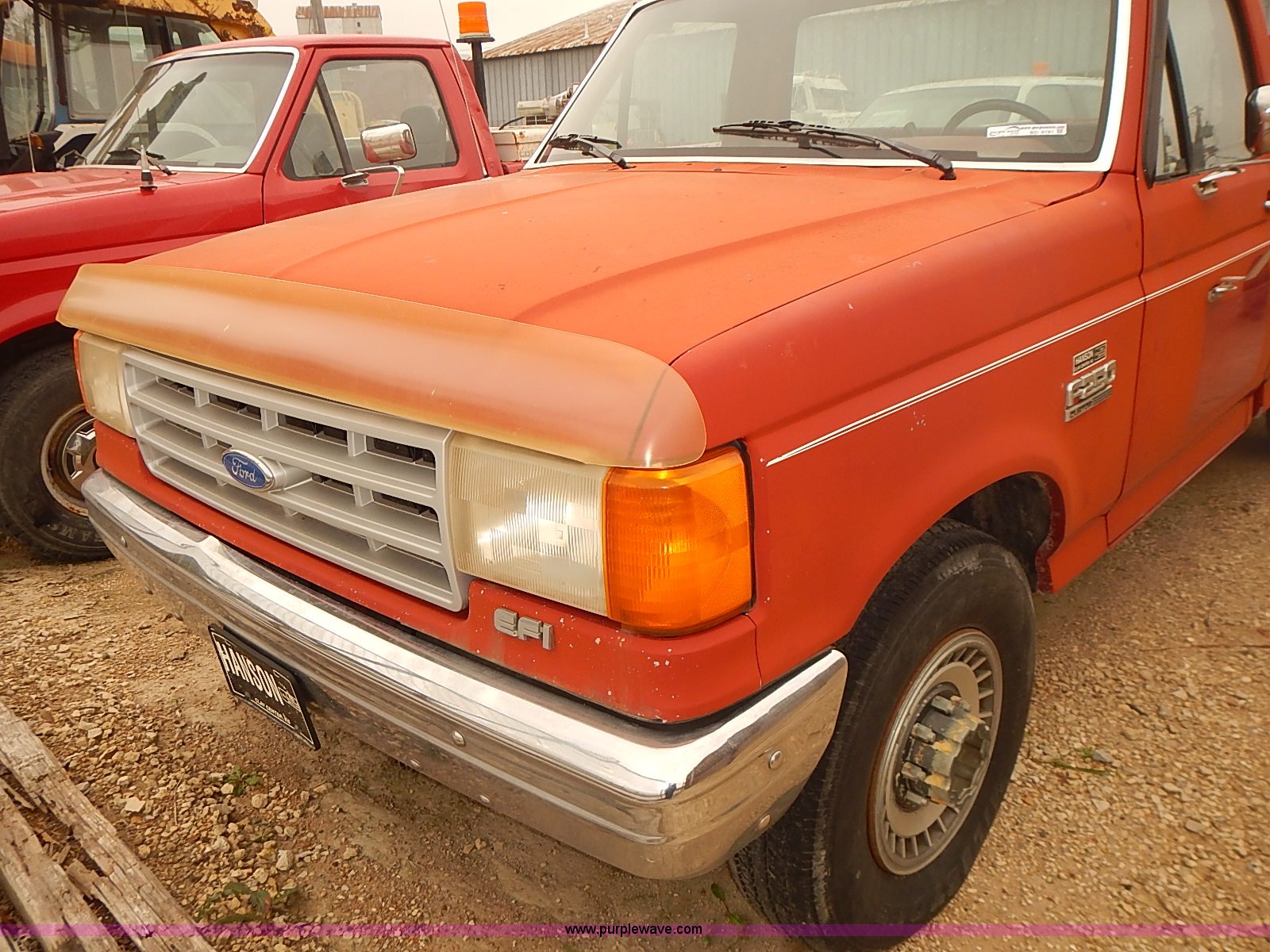 Purple Wave is selling a used 3/4 or 1 Ton Pickup or Van in Kansas. This item is a 1991 Ford F250 Custom pickup truck with the following: 96,425 miles on odometer, 5.8L V8 gas engine, Automatic transmission, AC and heat, Cruise, AM/FM, Manual windows and locks, Vinyl interior, Rugger bed liner, Bug deflector, Dual fuel tanks, Ball hitch, 235/85R16 tires, Interior/exterior cosmetic damage, Unattached rear view mirror included, Spare parts included, Manuals, Weak battery, Rust, Dents, Scratches, Smokes, Transmission rebuilt at 95,585 miles, Unit# 40