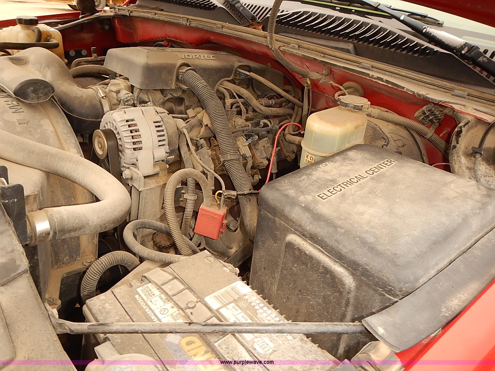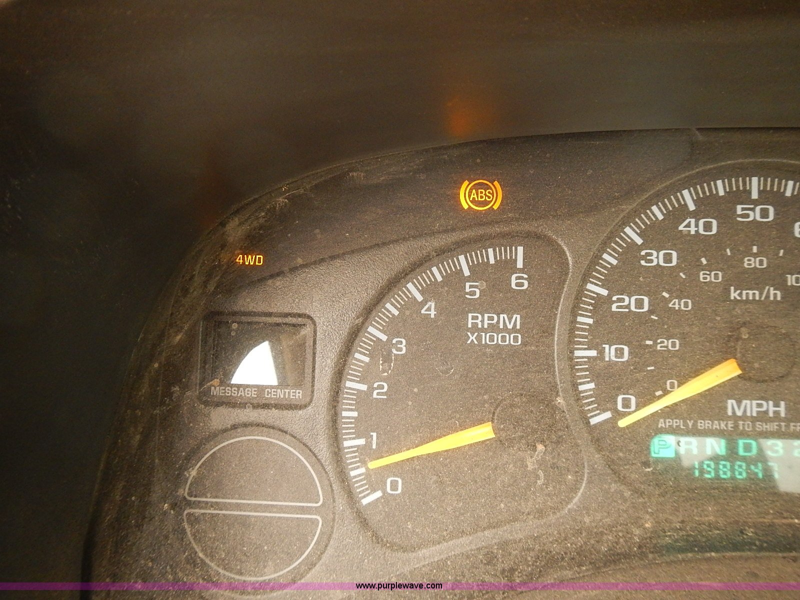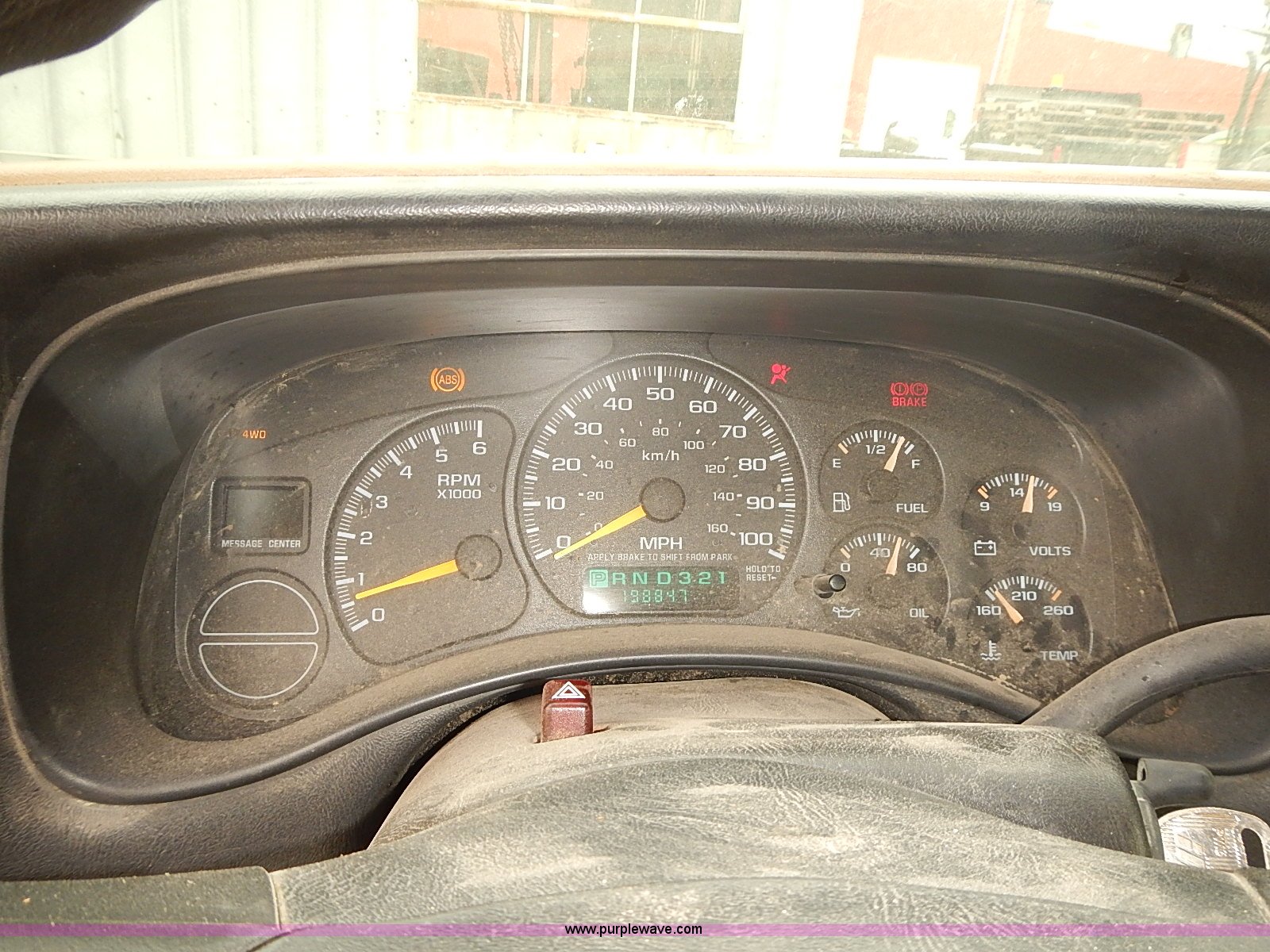 Purple Wave is selling a used 1/2 Ton Pickup or Van in Kansas. This item is a 1999 Chevrolet Silverado 1500 pickup truck with the following: 198,847 miles on odometer, 5.3L V8 gas engine, Automatic transmission, Four wheel drive, AC and heat, Tilt, AM/FM, Manual windows and locks, Cloth interior, Front tow hooks, 245/75R16 tires, Manuals, Interior/exterior cosmetic damage, Cracked frame behind right front wheel, ABS light on, Service light on, Rust, Dents, Scratches, Unit# 16