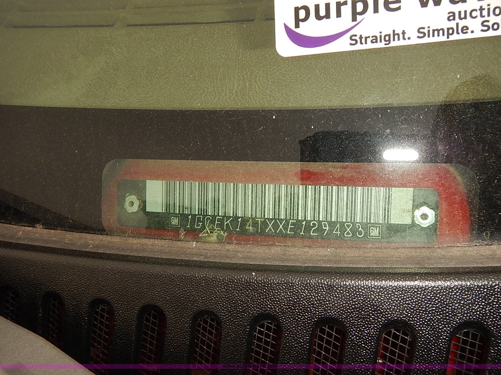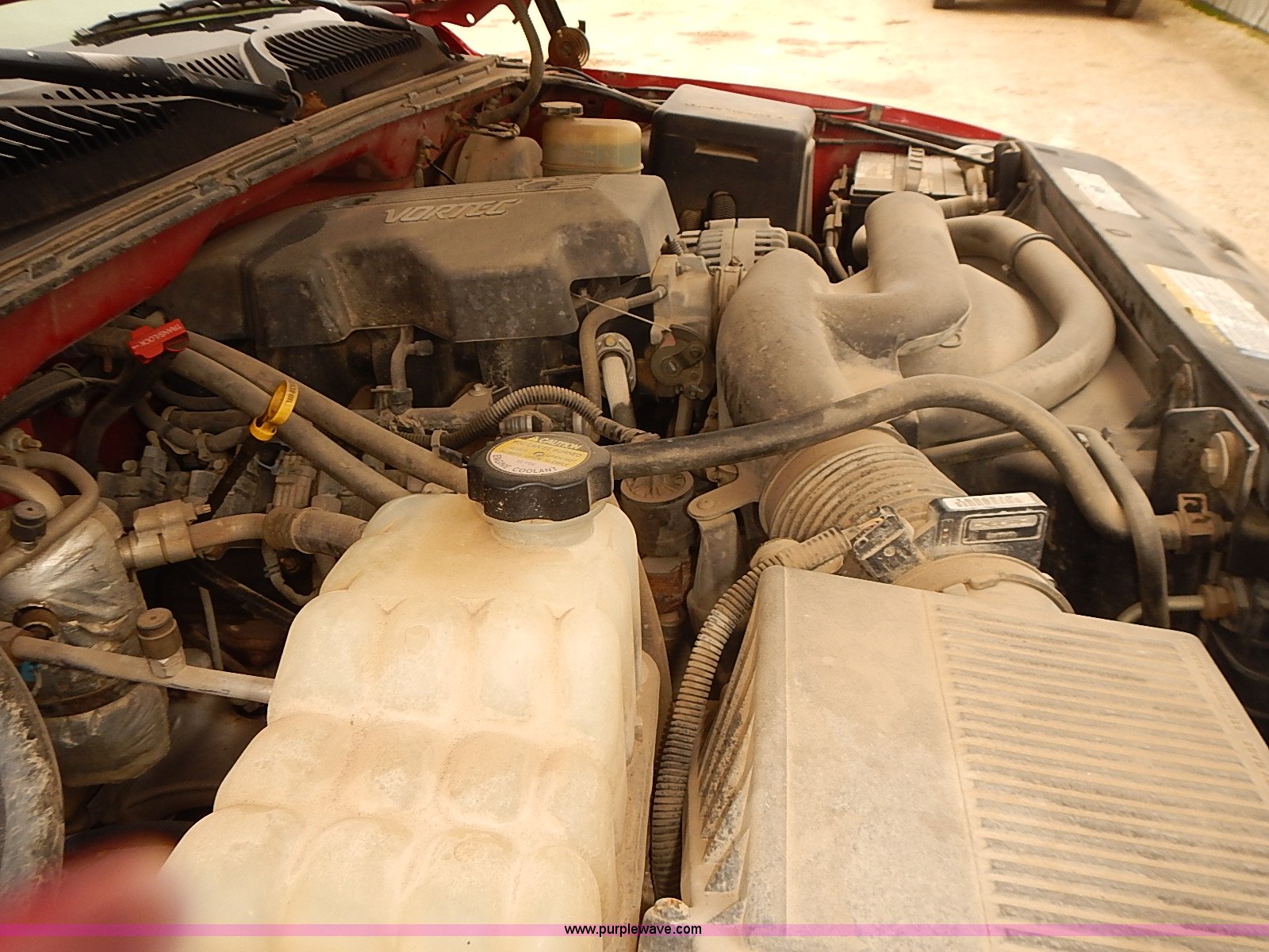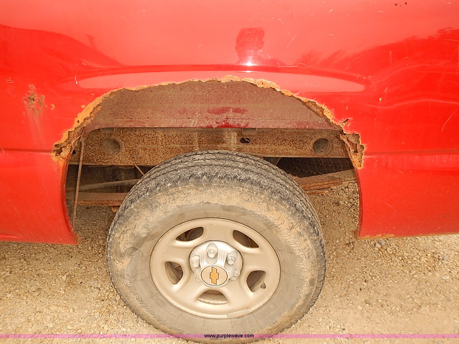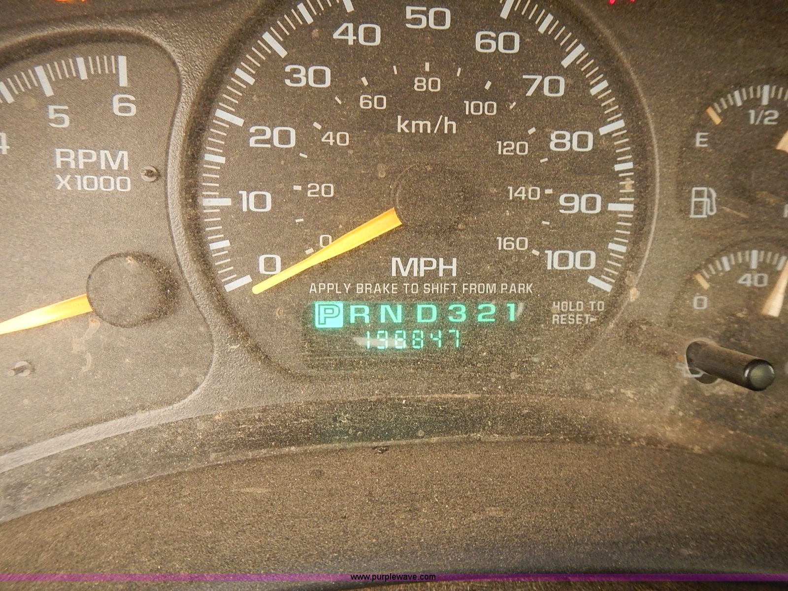 Purple Wave is selling a used 1/2 Ton Pickup or Van in Kansas. This item is a 1999 Chevrolet Silverado 1500 pickup truck with the following: 198,847 miles on odometer, 5.3L V8 gas engine, Automatic transmission, Four wheel drive, AC and heat, Tilt, AM/FM, Manual windows and locks, Cloth interior, Front tow hooks, 245/75R16 tires, Manuals, Interior/exterior cosmetic damage, Cracked frame behind right front wheel, ABS light on, Service light on, Rust, Dents, Scratches, Unit# 16