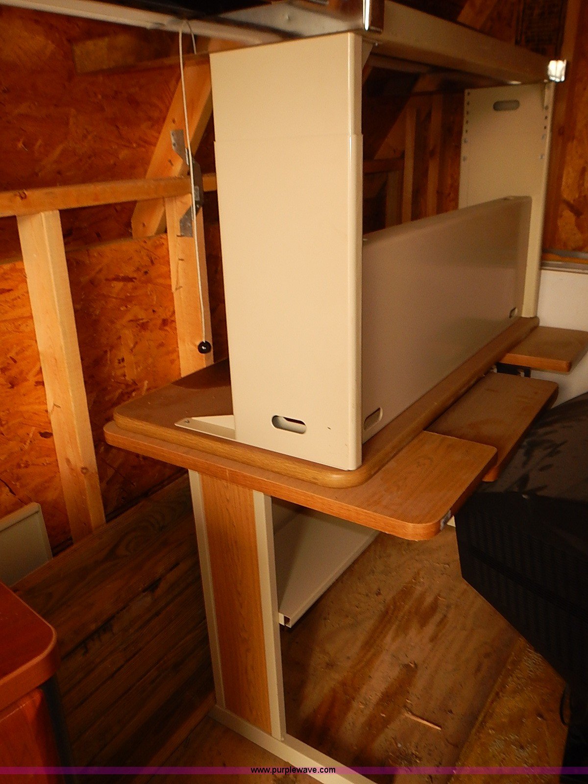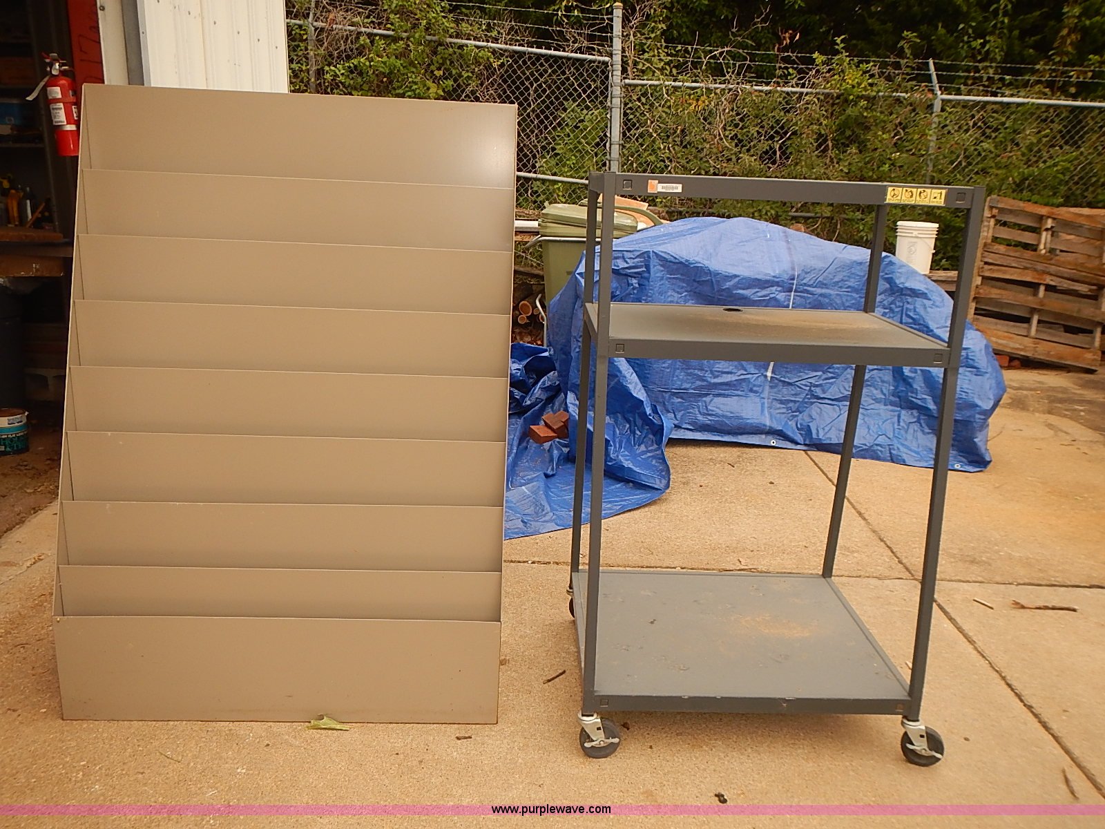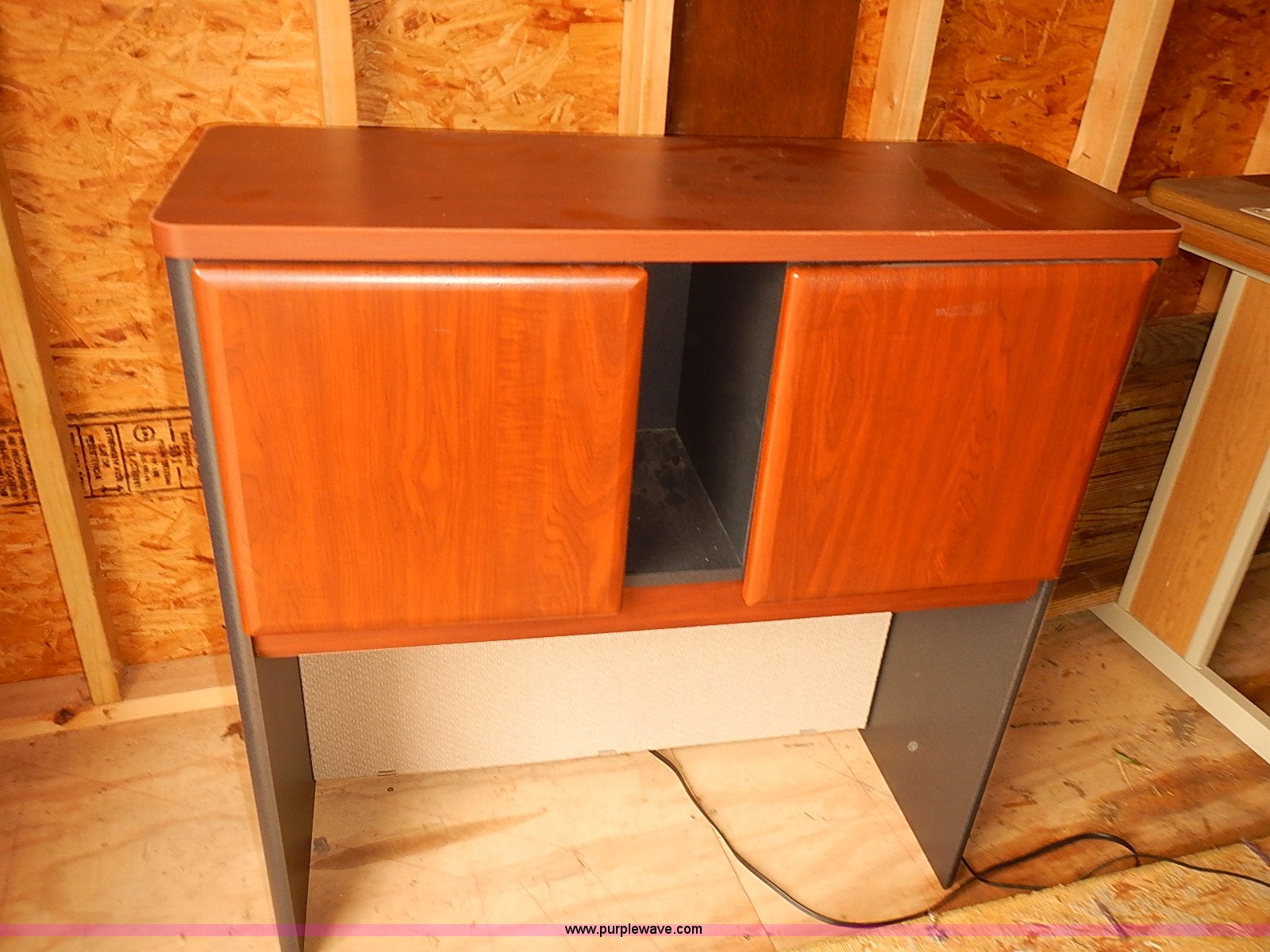 Purple Wave is selling a used Office Supplies and Equip. in Kansas. This item is a Assorted office furniture with the following: (2) computer desks, 48" x 30" x 30", (8) chairs, 38" x 27" x 27" desk, Desk top unit, 36" x 13.5" x 37", Media cart, Magazine rack, 42" x 19" x 60"