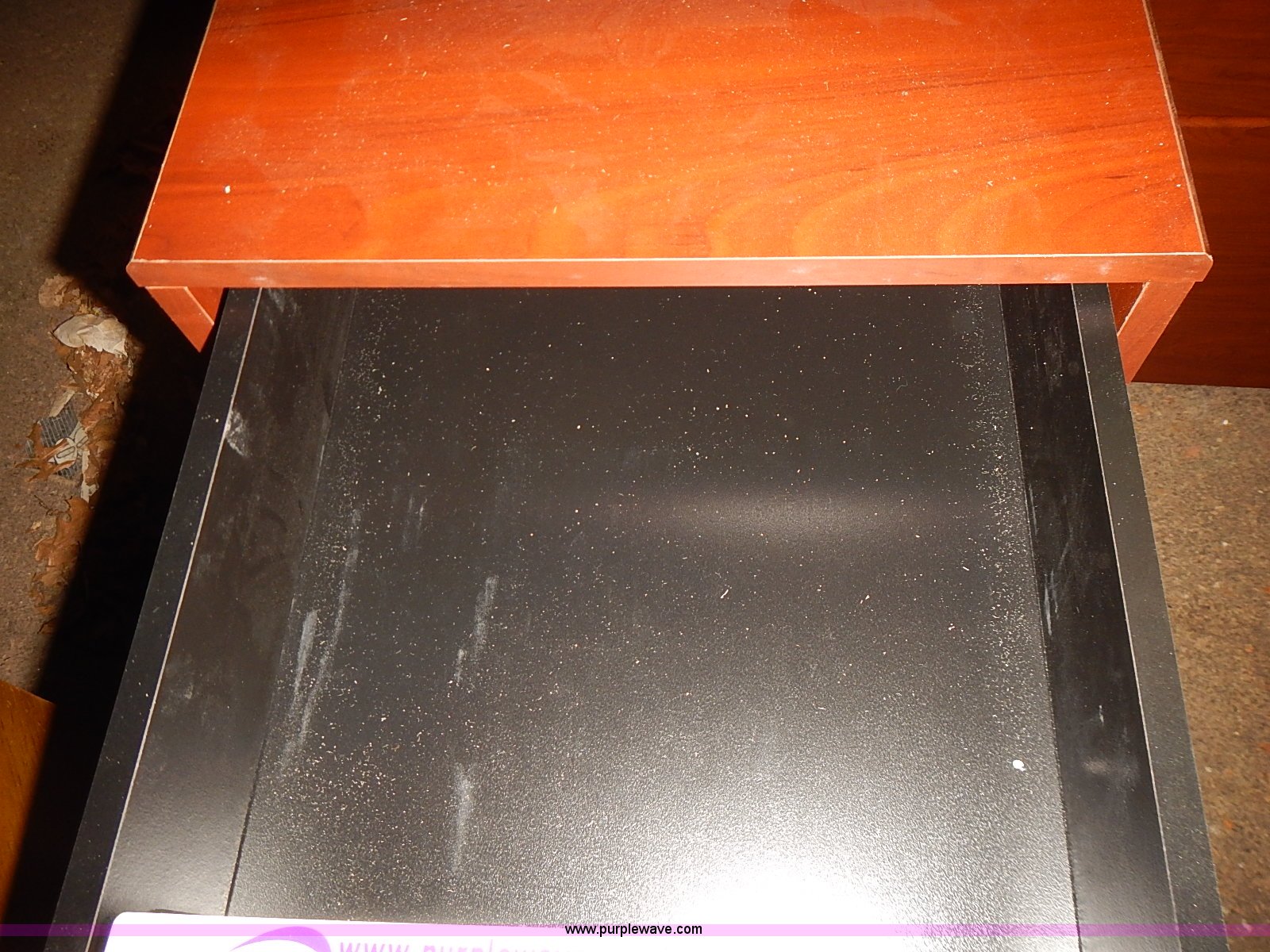 Purple Wave is selling a used Office Supplies and Equip. in Kansas. This item is a Assorted office furniture with the following: Three drawer locking file cabinet, Desk top storage, 5'L x 2'H x 14"D