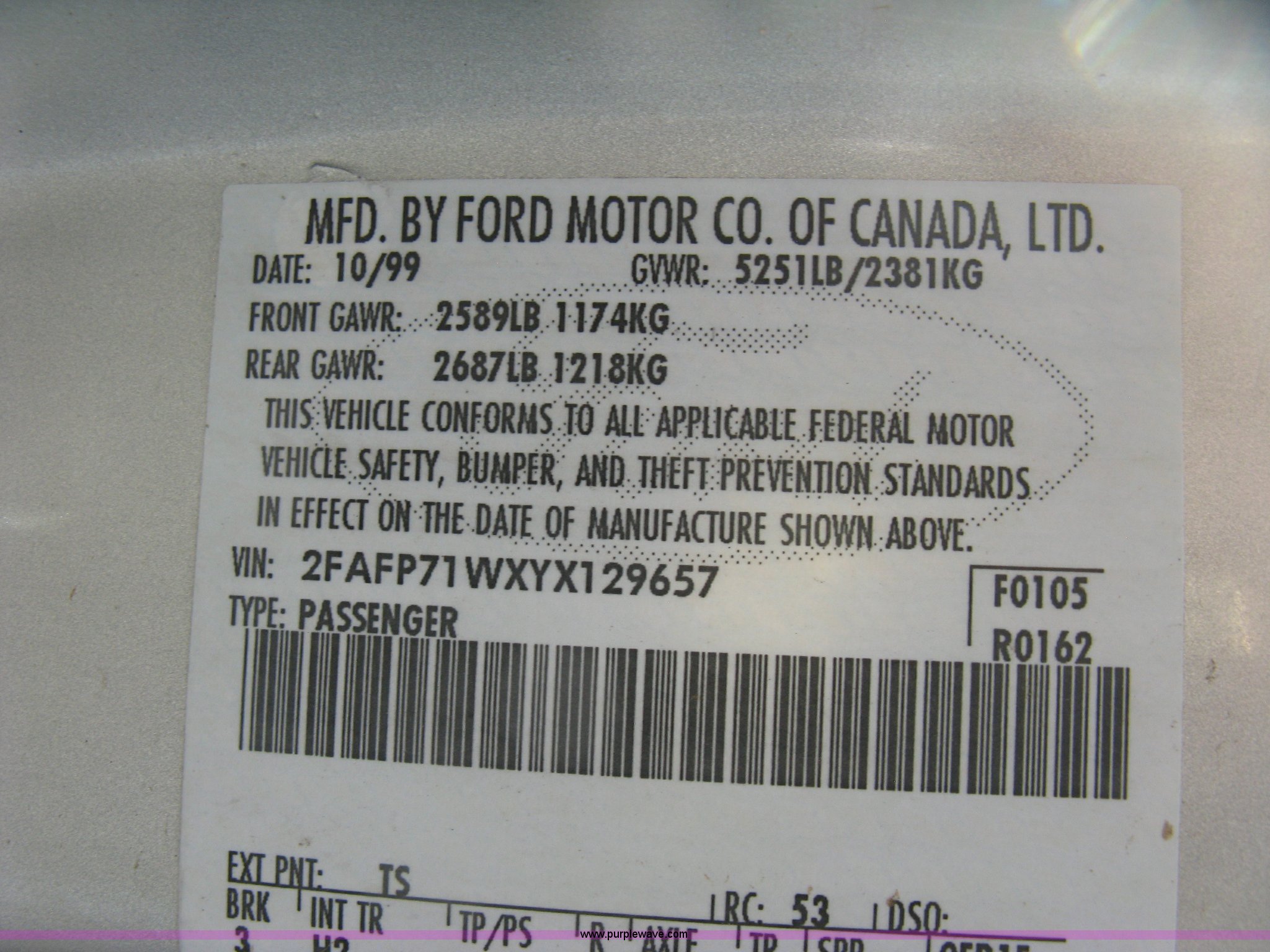 Purple Wave is selling a used Passenger Vehicle in Kansas. This item is a 2000 Ford Crown Victoria Police Interceptor with the following: 113,116 actual miles, 4.6L V8 SOHC 16V gas engine, Automatic transmission, AC and heat, Tilt, Cruise, AM/FM, Power windows, locks, mirrors, and seats, Cloth interior, P225/60R16 tires, Interior/exterior cosmetic damage, Scratches, Dents, Spark plug broke in head, Debris dropped in cylinder, Runs rough, Unit# 266