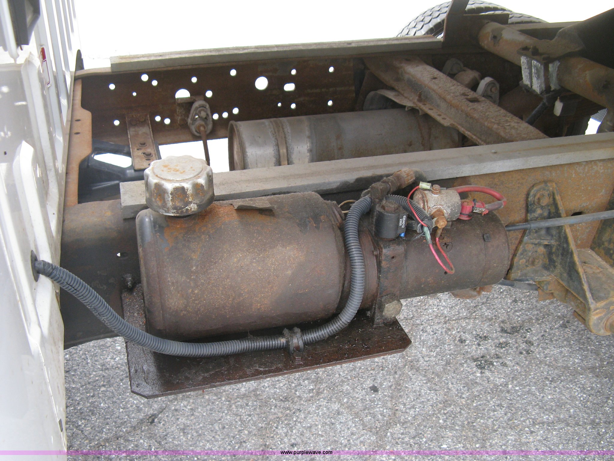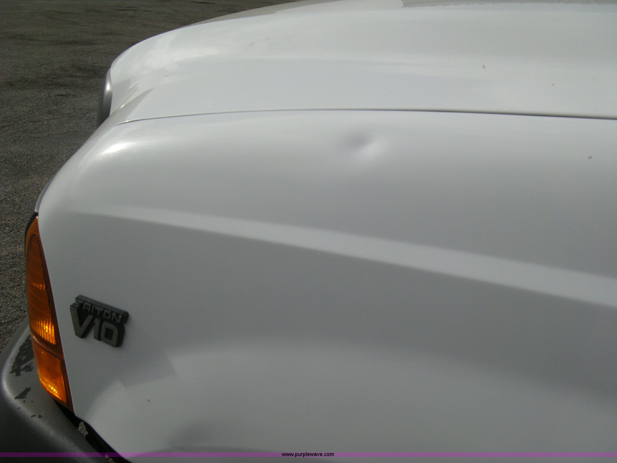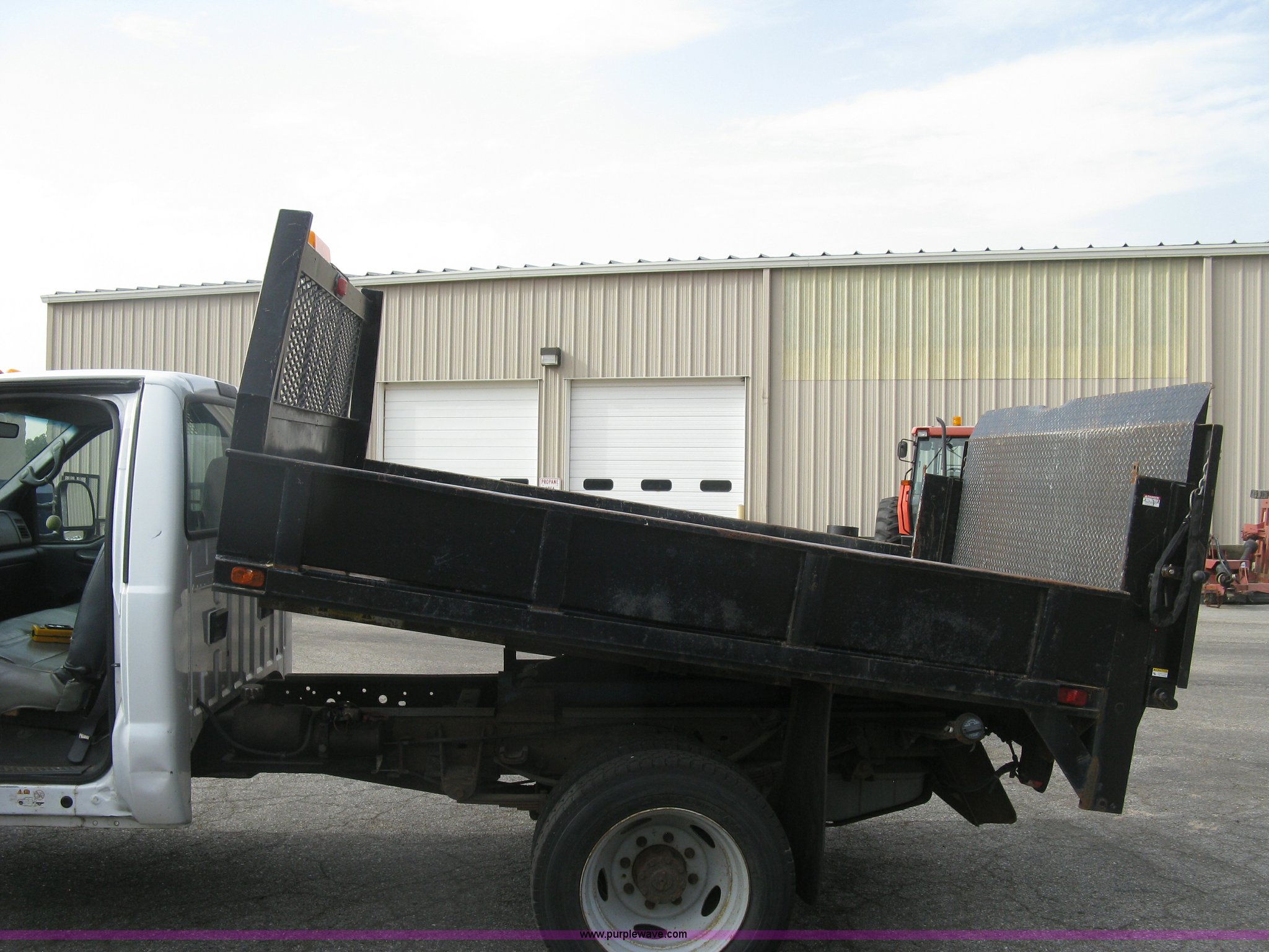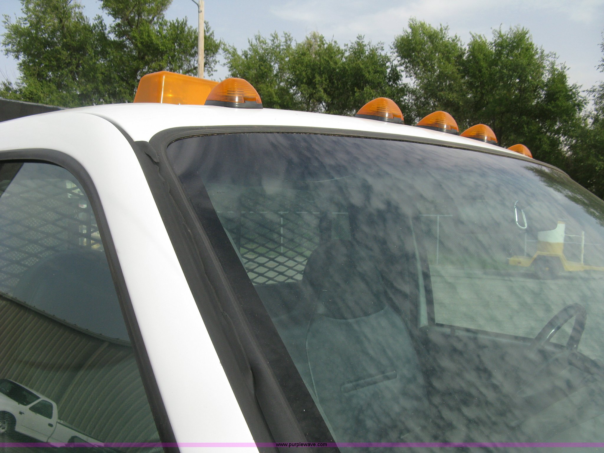 Purple Wave is selling a used Flat Bed Truck in Kansas. This item is a 2000 Ford F450 Super Duty XL flatbed truck with the following: 115,796 actual miles, 6.8L V10 SOHC 20V gas engine, Automatic transmission, AC and heat, AM/FM, Manual windows and locks, Vinyl interior, Electric trailer brake booster, Western plow control toggle, Tethered dump bed remote, 9'L x 91" dump flatbed, Harsh hoist, Tommy Gate lift gate, Large platform, Serial 00505659, Western snow plow mounting frame, No plow, Receiver hitch, Trailer wiring, 225/70R19.5 tires, Interior/exterior cosmetic damage, Cracked windshield, Catalytic converter is bad, Body damage, Rust, Unit# 94