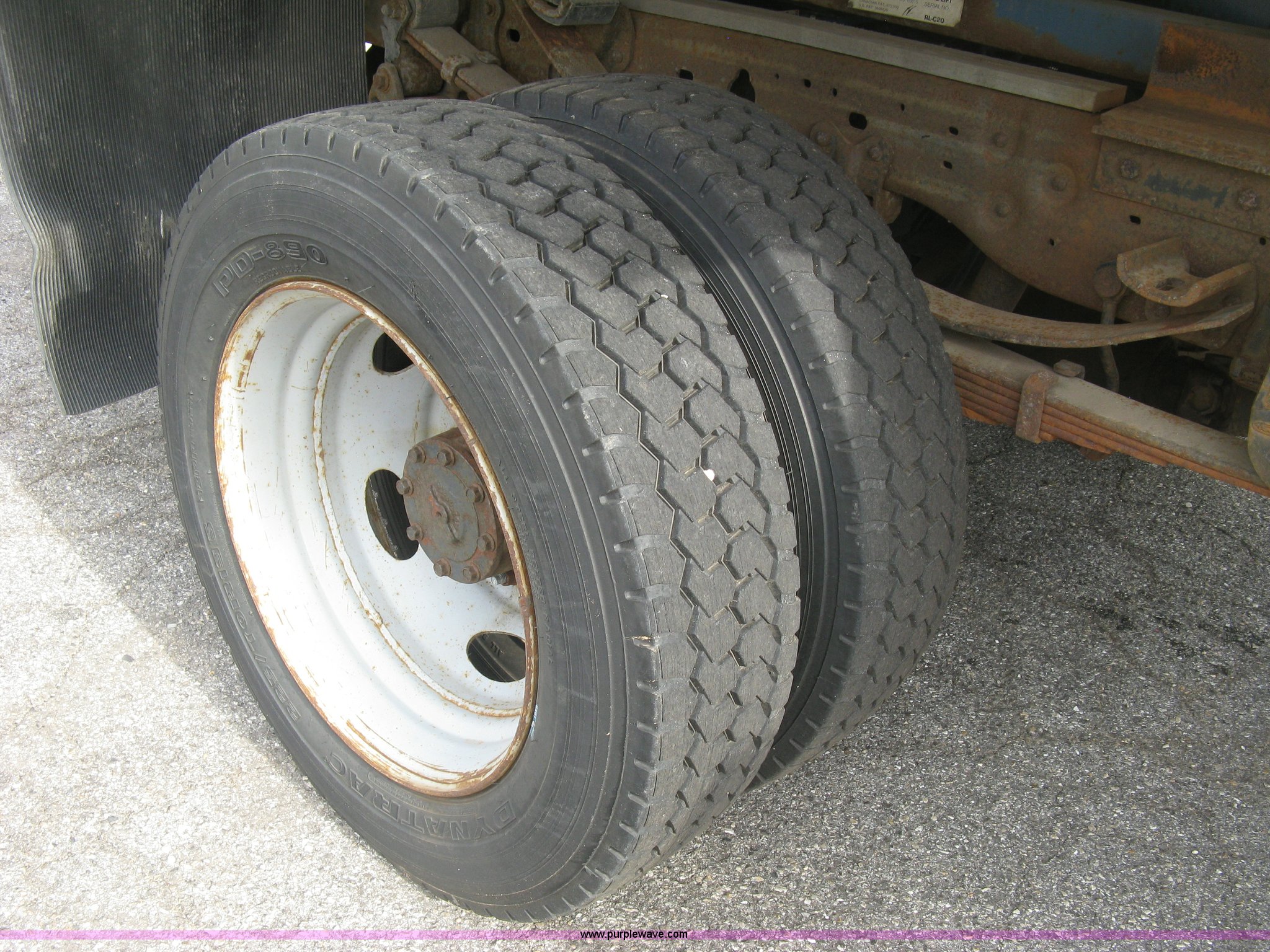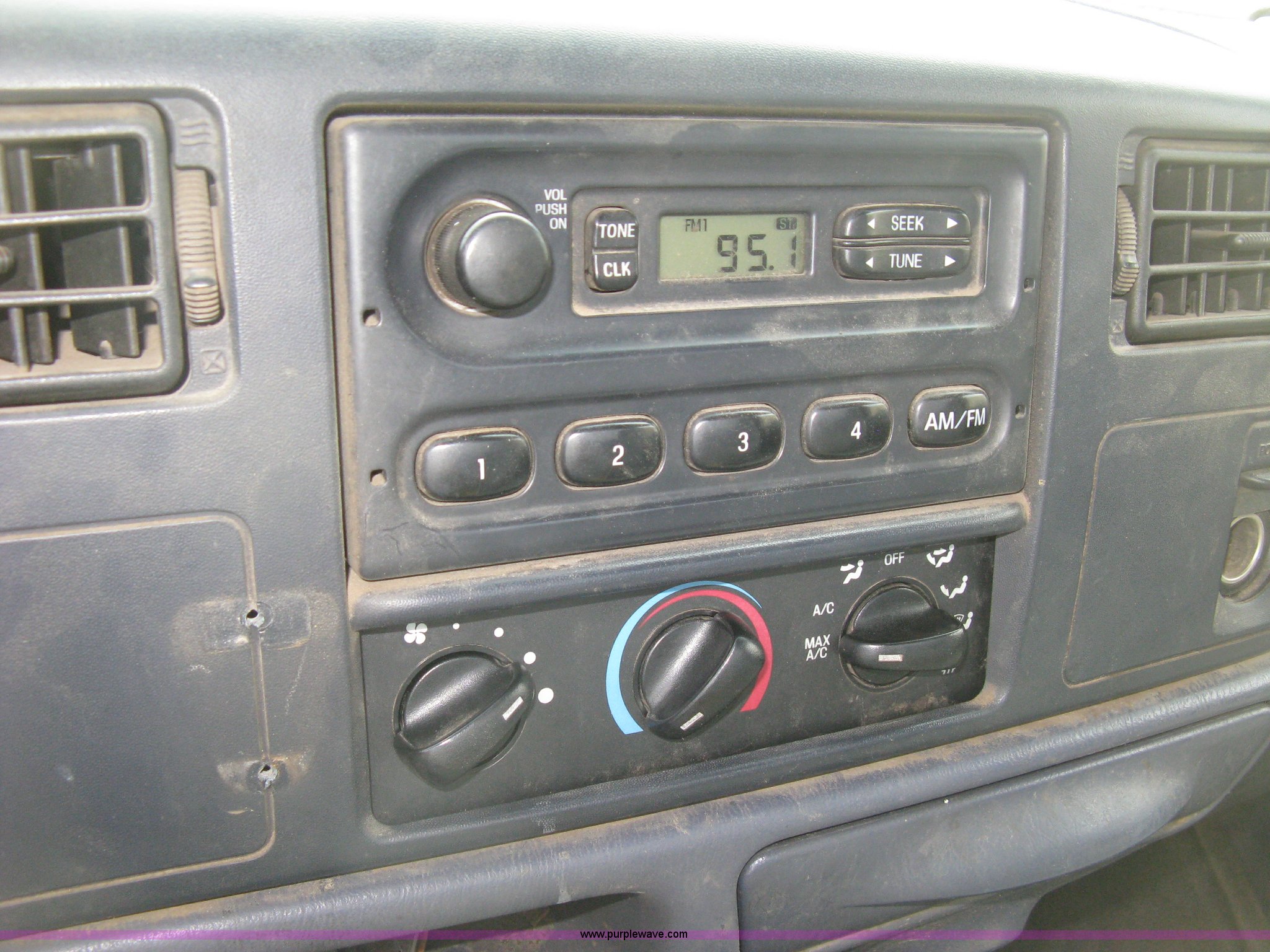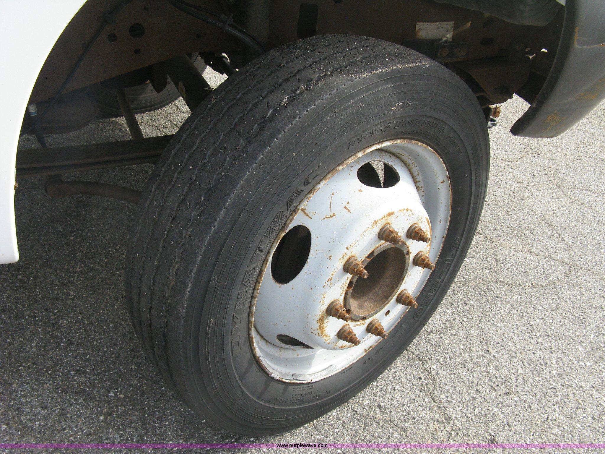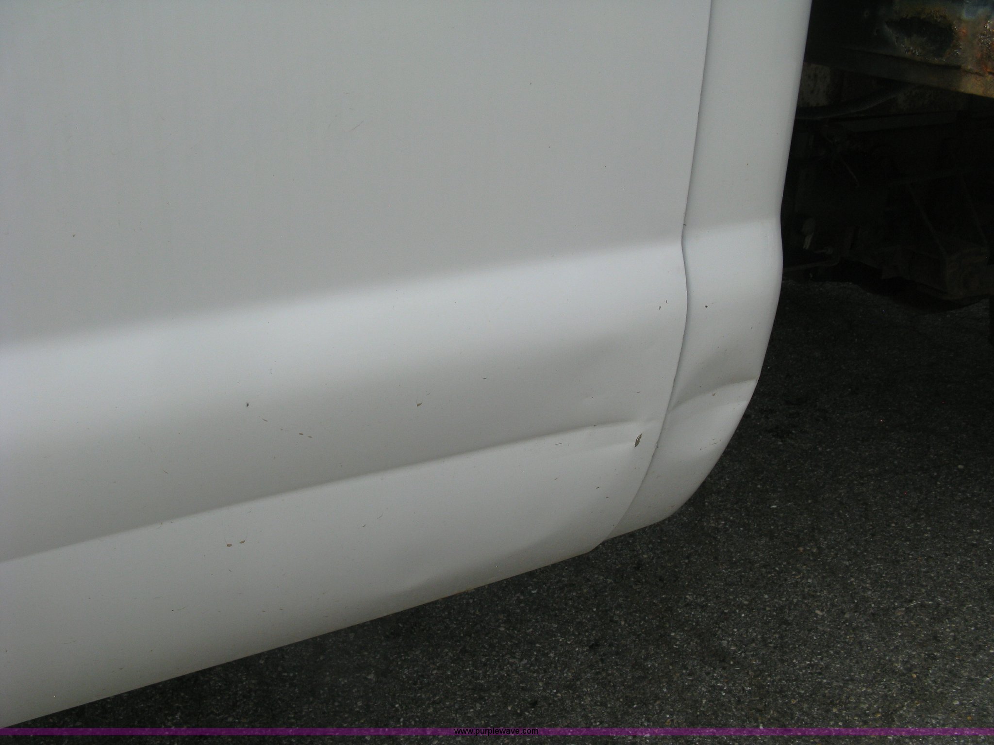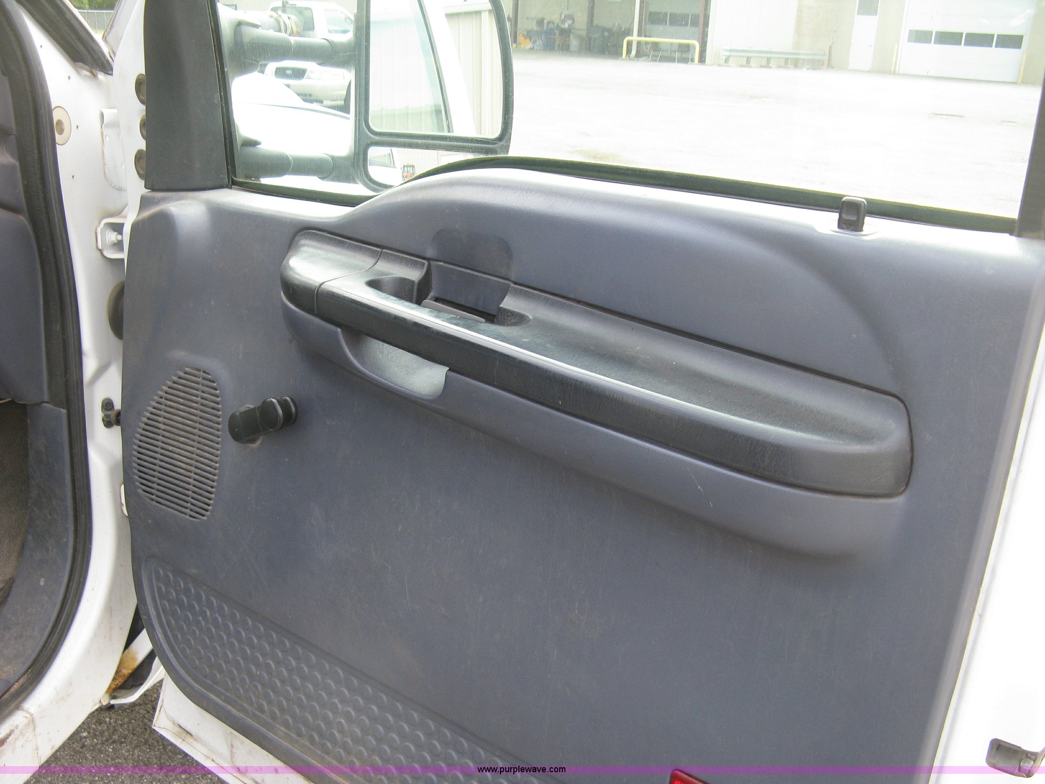 Purple Wave is selling a used Flat Bed Truck in Kansas. This item is a 2000 Ford F450 Super Duty XL flatbed truck with the following: 115,796 actual miles, 6.8L V10 SOHC 20V gas engine, Automatic transmission, AC and heat, AM/FM, Manual windows and locks, Vinyl interior, Electric trailer brake booster, Western plow control toggle, Tethered dump bed remote, 9'L x 91" dump flatbed, Harsh hoist, Tommy Gate lift gate, Large platform, Serial 00505659, Western snow plow mounting frame, No plow, Receiver hitch, Trailer wiring, 225/70R19.5 tires, Interior/exterior cosmetic damage, Cracked windshield, Catalytic converter is bad, Body damage, Rust, Unit# 94