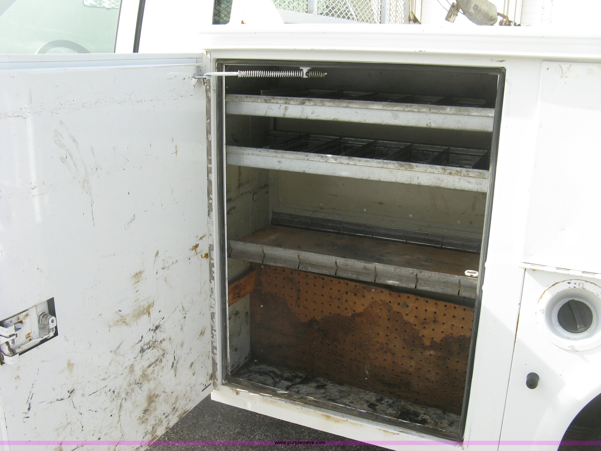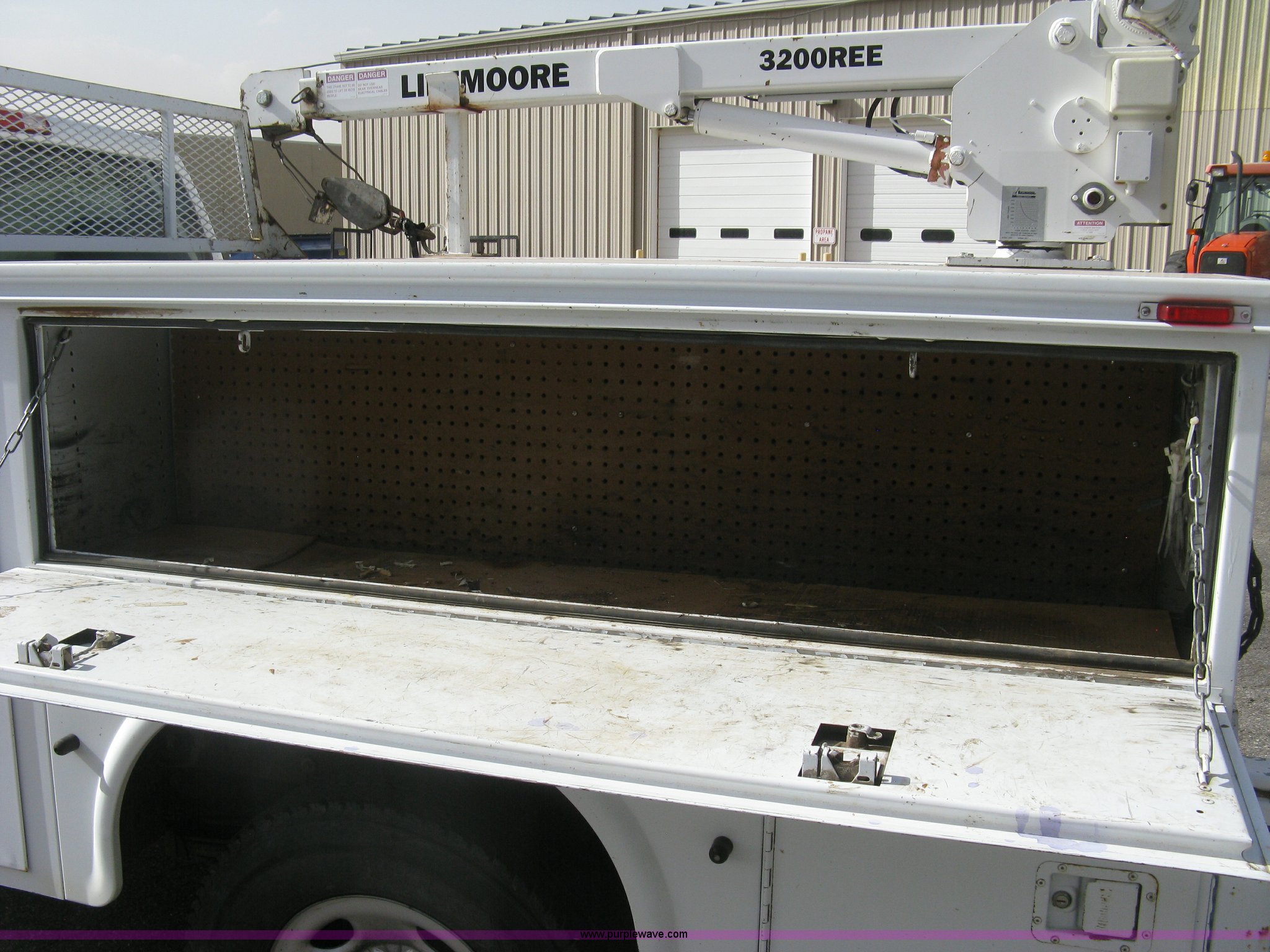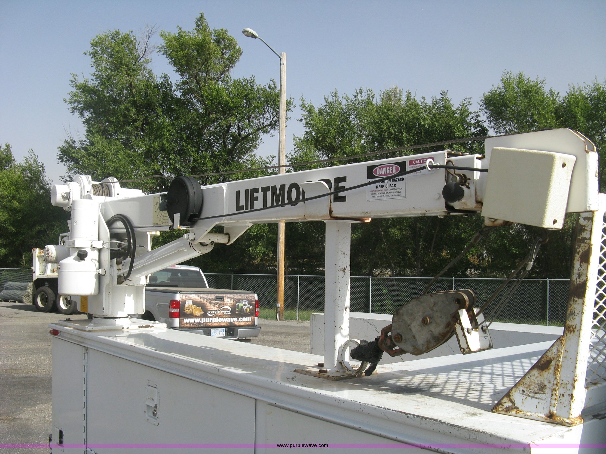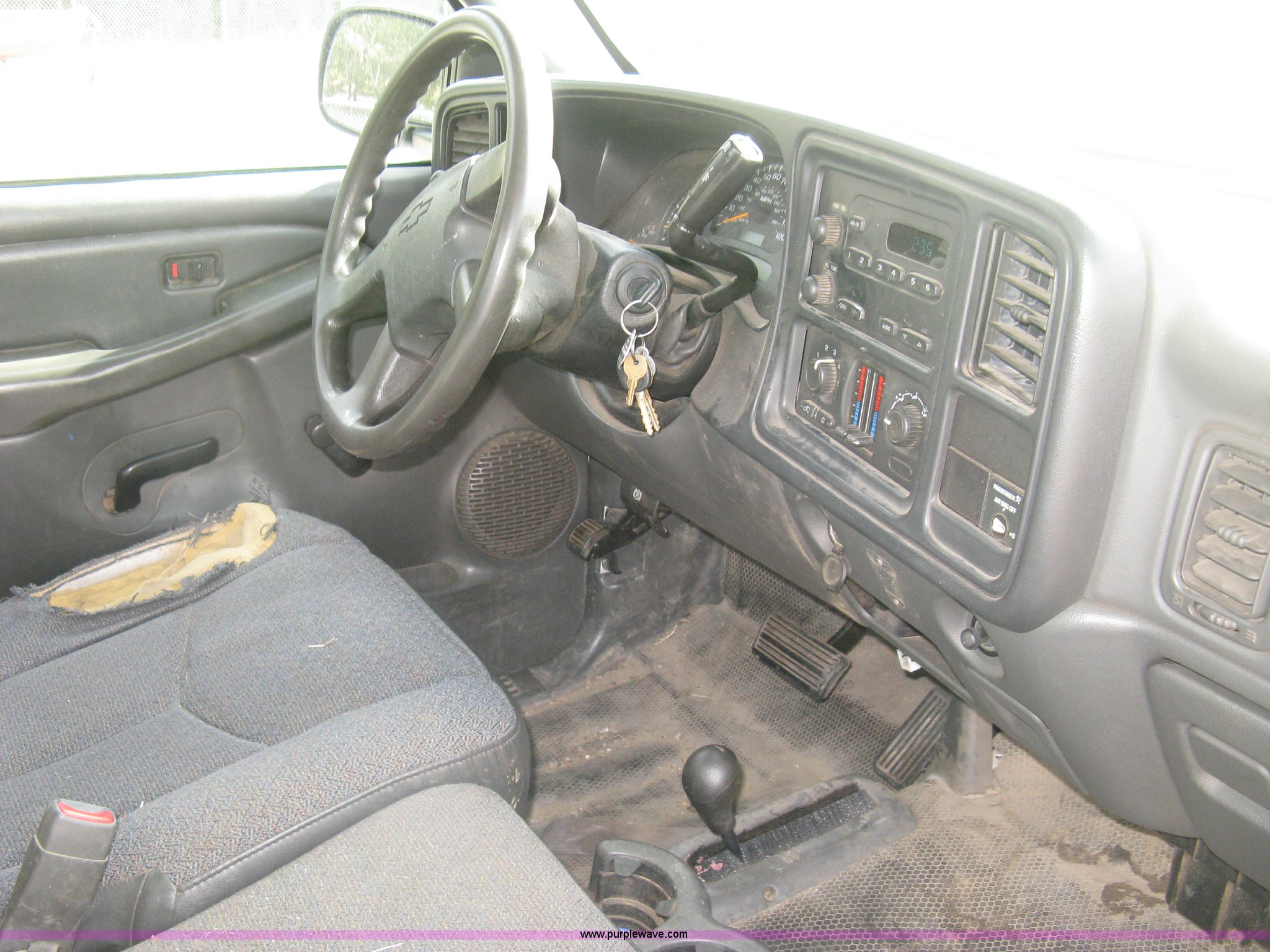Purple Wave is selling a used Service Truck in Kansas. This item is a 2004 Chevrolet Silverado 2500HD utility truck with the following: 119,662 actual miles, 6.0L V8 OHV 16V gas engine, Automatic transmission, Four wheel drive, AC and heat, Tilt, AM/FM, Manual windows and locks, Cloth interior, Knapheide utility bed, 8'L x 78"W, Headache rack, Step-up bumper, Manual jack support/outrigger on rear bumper, (6) tool cabinets, Lift Moore 3200REE telescopic crane, Tethered remote, Serial S554W58, Boss snow plow mounting frame, No plow, Receiver hitch, Trailer wiring, LT245/75R16 tires, Interior/exterior cosmetic damage, Unit# 31