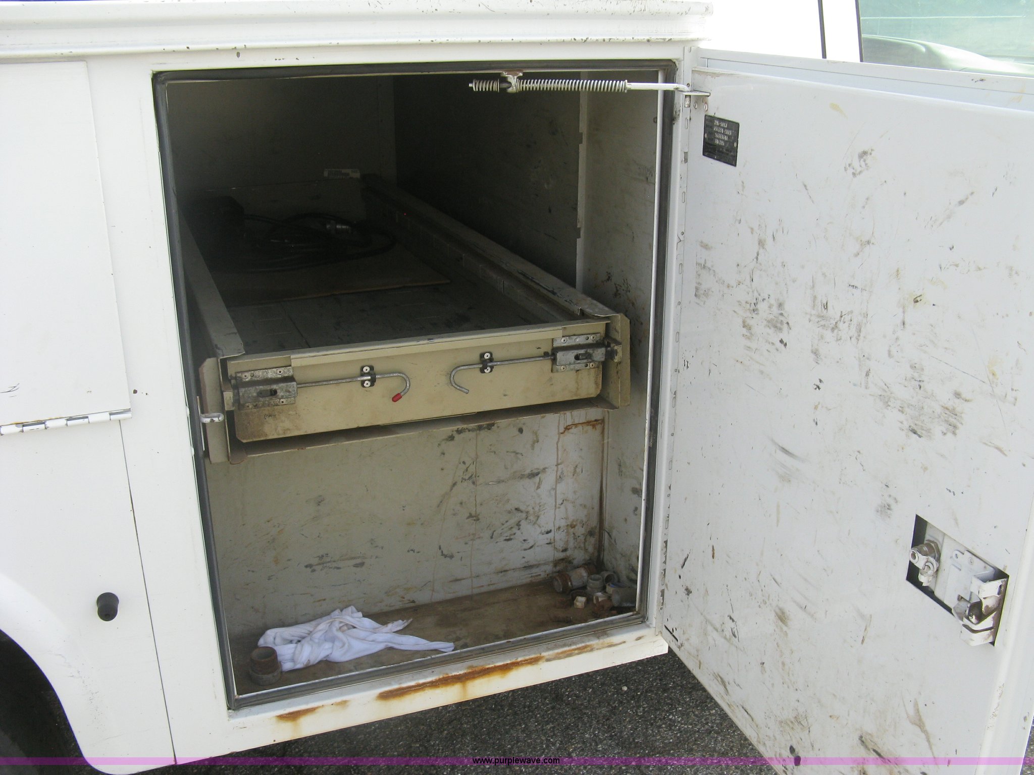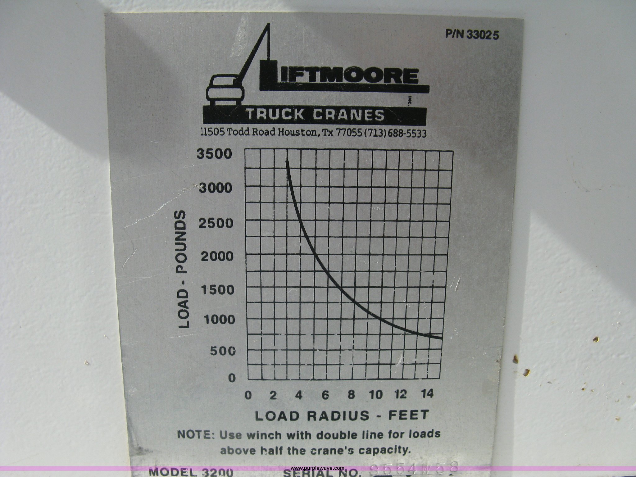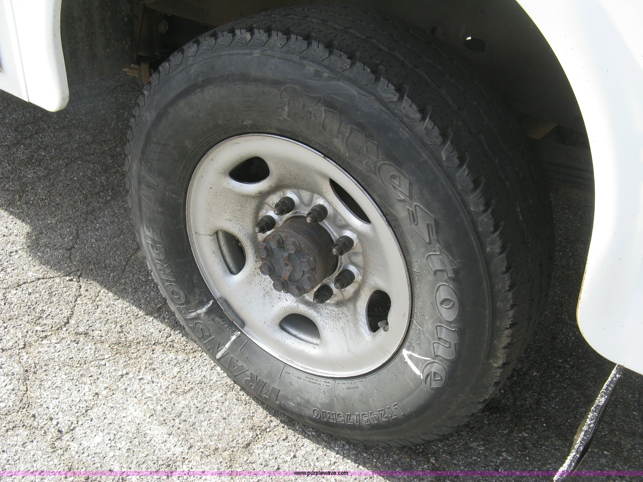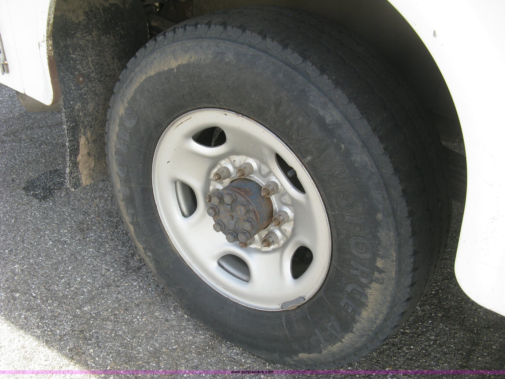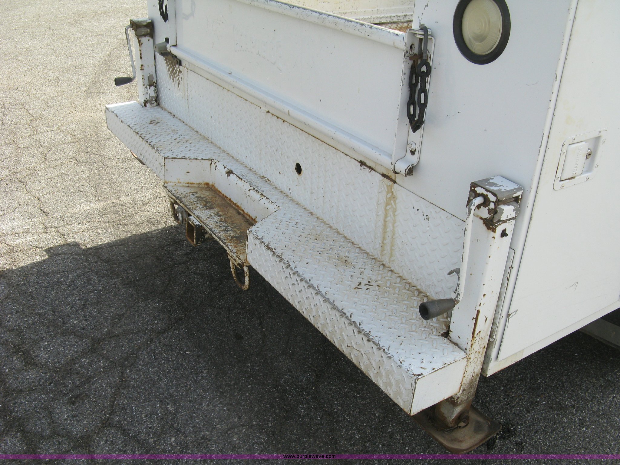 Purple Wave is selling a used Service Truck in Kansas. This item is a 2004 Chevrolet Silverado 2500HD utility truck with the following: 119,662 actual miles, 6.0L V8 OHV 16V gas engine, Automatic transmission, Four wheel drive, AC and heat, Tilt, AM/FM, Manual windows and locks, Cloth interior, Knapheide utility bed, 8'L x 78"W, Headache rack, Step-up bumper, Manual jack support/outrigger on rear bumper, (6) tool cabinets, Lift Moore 3200REE telescopic crane, Tethered remote, Serial S554W58, Boss snow plow mounting frame, No plow, Receiver hitch, Trailer wiring, LT245/75R16 tires, Interior/exterior cosmetic damage, Unit# 31