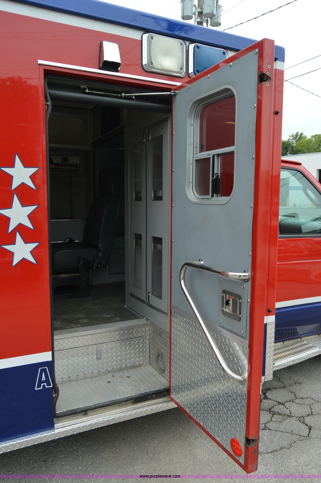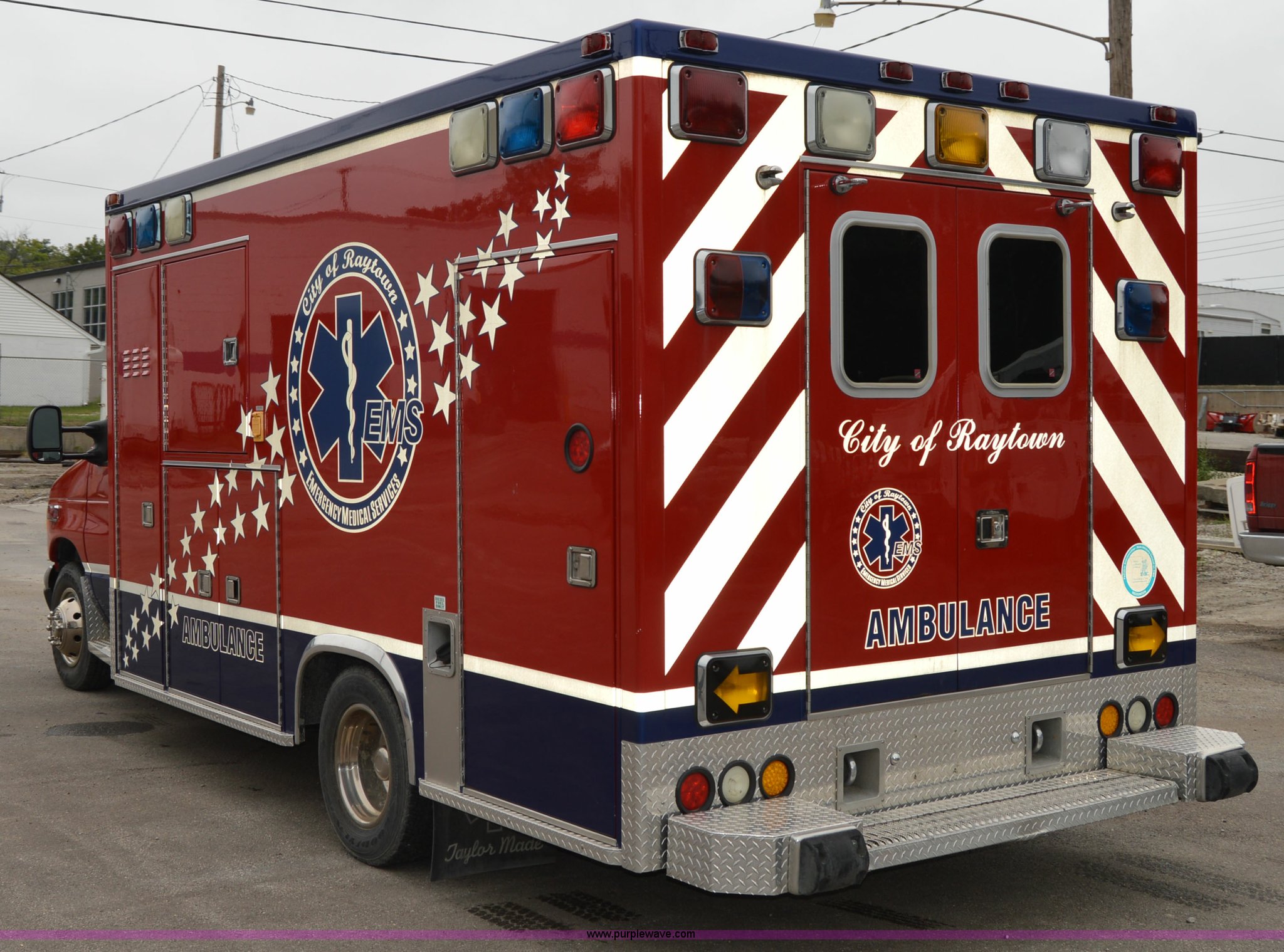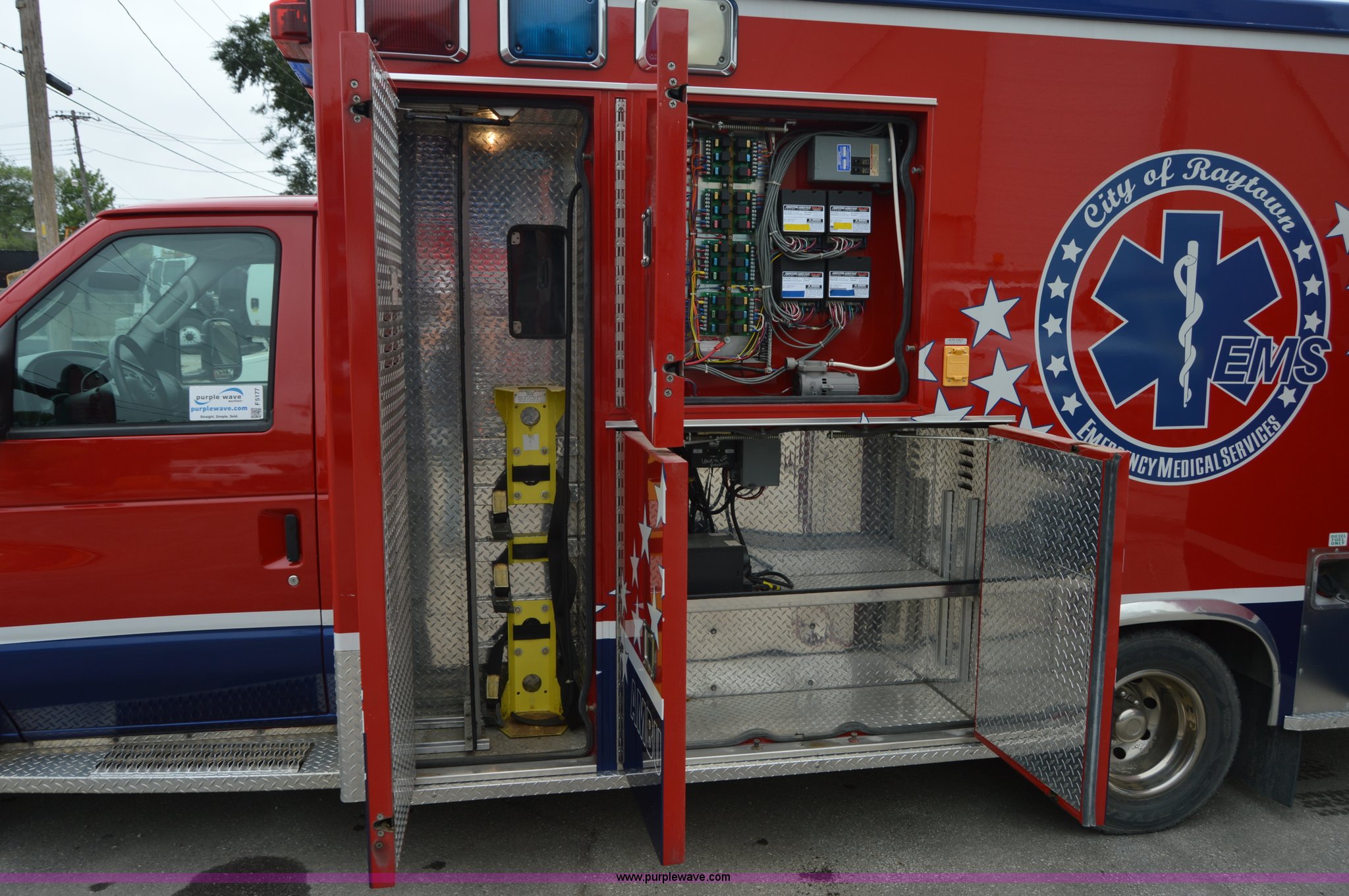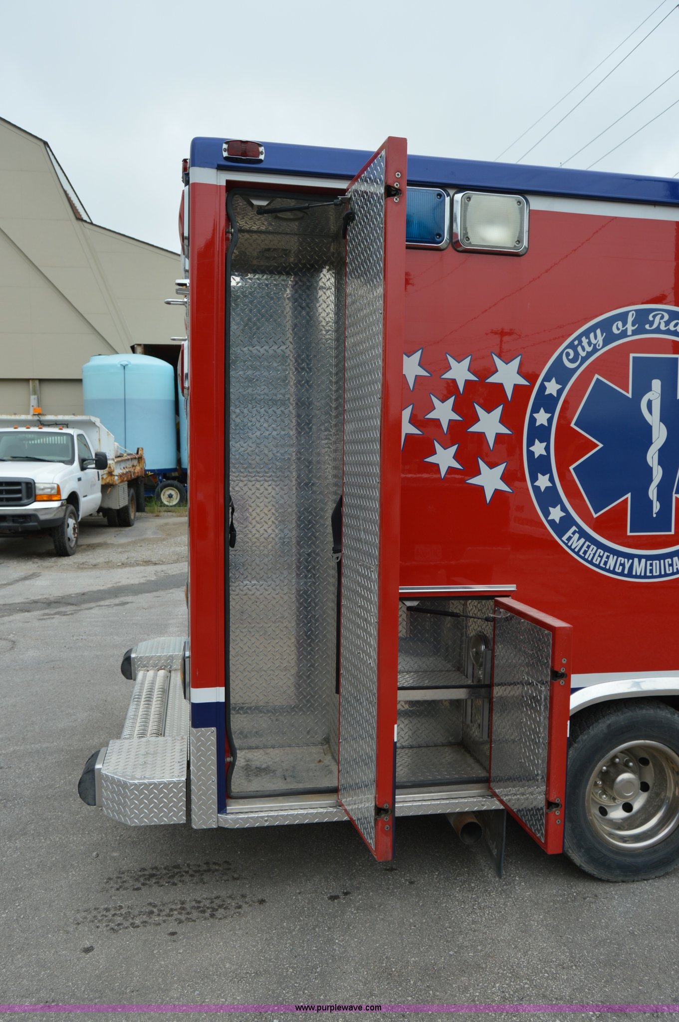 Purple Wave is selling a used Fire Truck or Emergency Vehicle in Missouri. This item is a 2003 Ford 801 ambulance with the following: 141,983 miles on odometer, 7.3L V8 OHV 16V turbo diesel engine, Automatic transmission, AC and heat, Tilt, Cruise, AM/FM/cassette, Power windows and locks, Cloth interior, 158" wheelbase, 225/75R16 tires, Interior/exterior cosmetic damage, Decals will be removed prior to auction date, Emitter and other loose equipment will be removed prior to auction