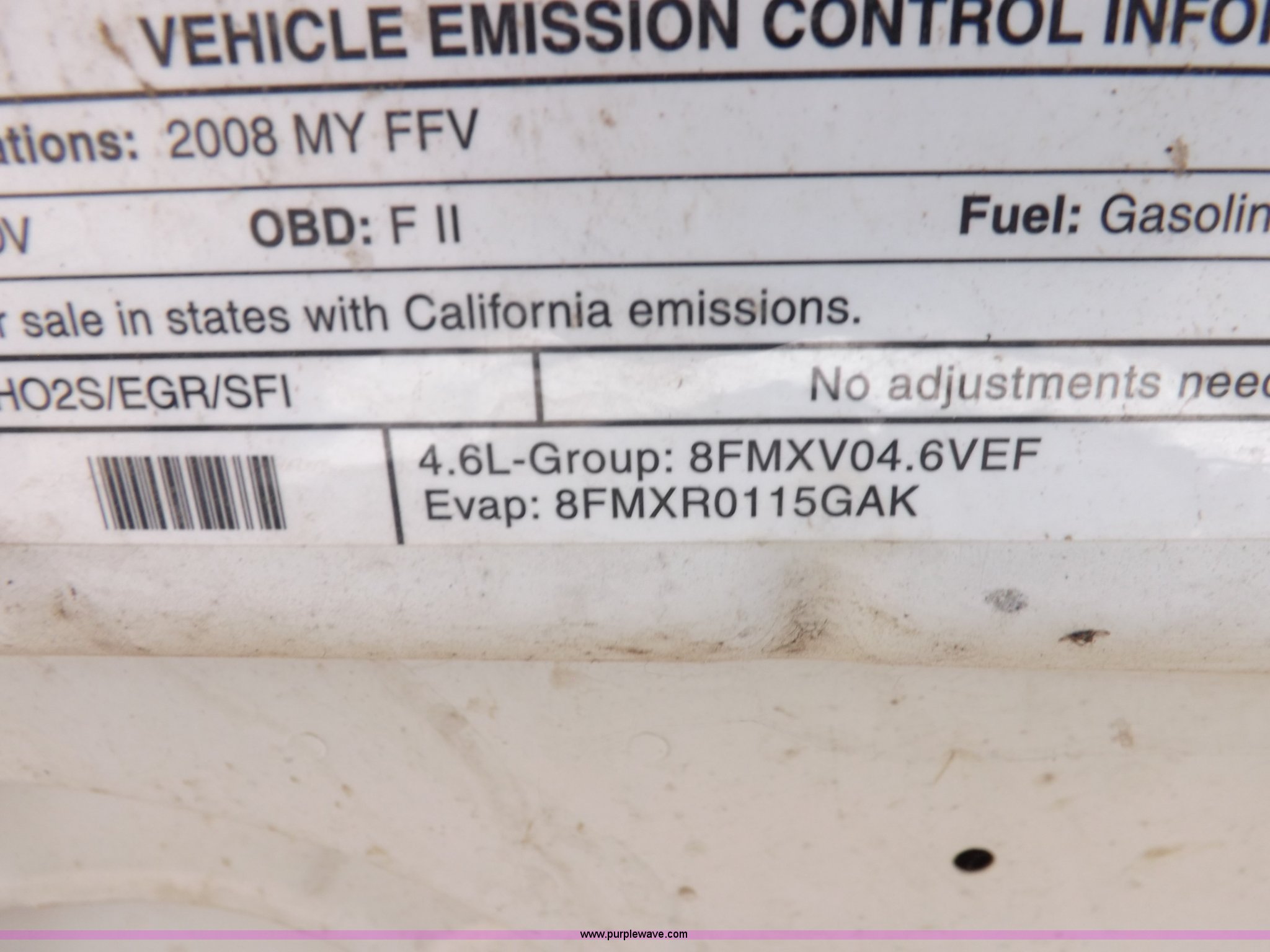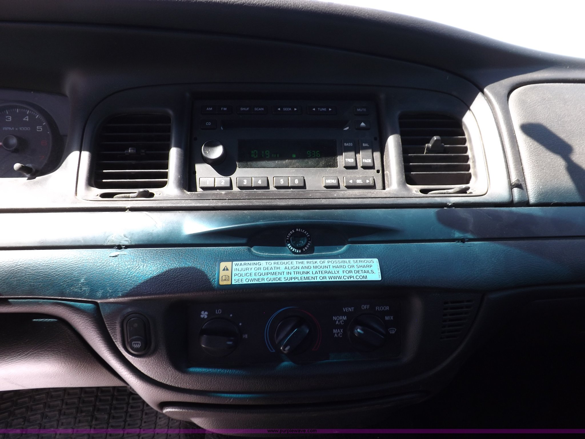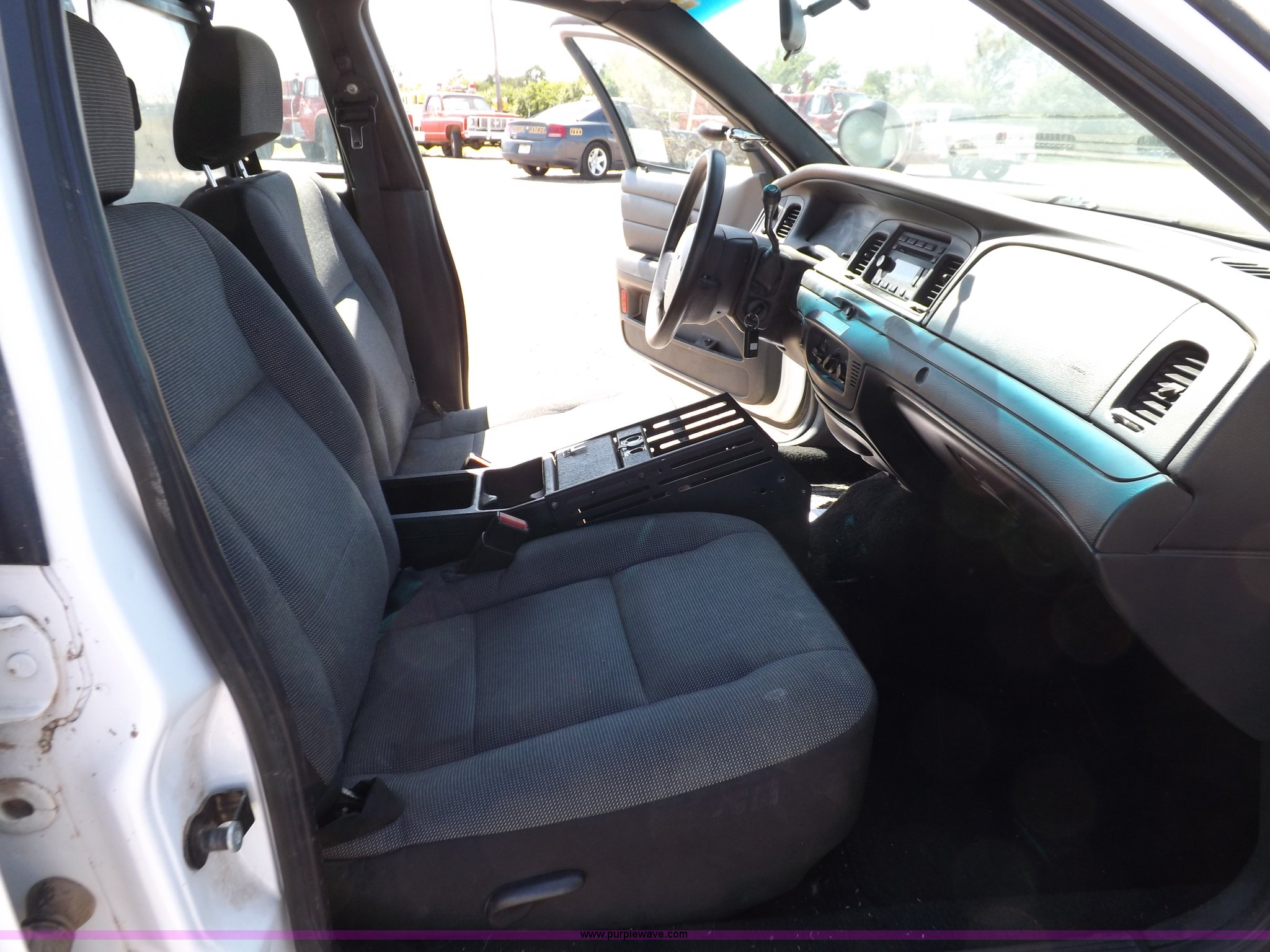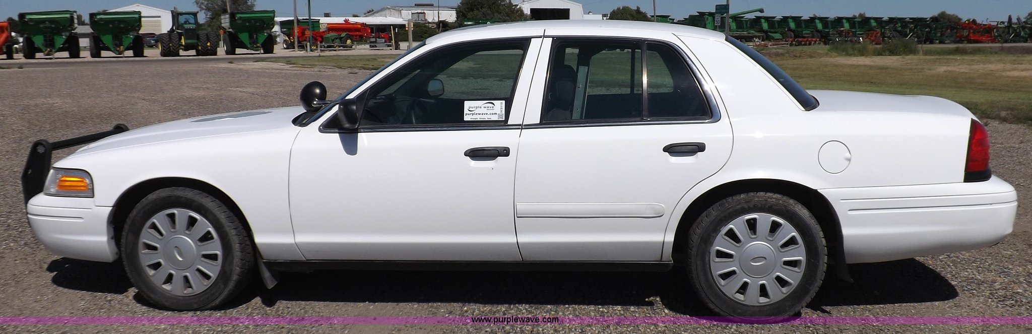 Purple Wave is selling a used Passenger Vehicle in Kansas. This item is a 2008 Ford Crown Victoria Police Interceptor with the following: 122,006 actual miles, 4.6L V8 2V SOHC gas engine, Automatic transmission, AC and heat, Tilt, Cruise, AM/FM/CD, Power windows, locks, mirrors, and seats, Cloth interior, Spotlight, Setina Body Guard grill guard, Law Enforcement console, Front to rear partition, Keyless start, 235/55R17 tires, Top drill holes, Paint damage, Weak battery