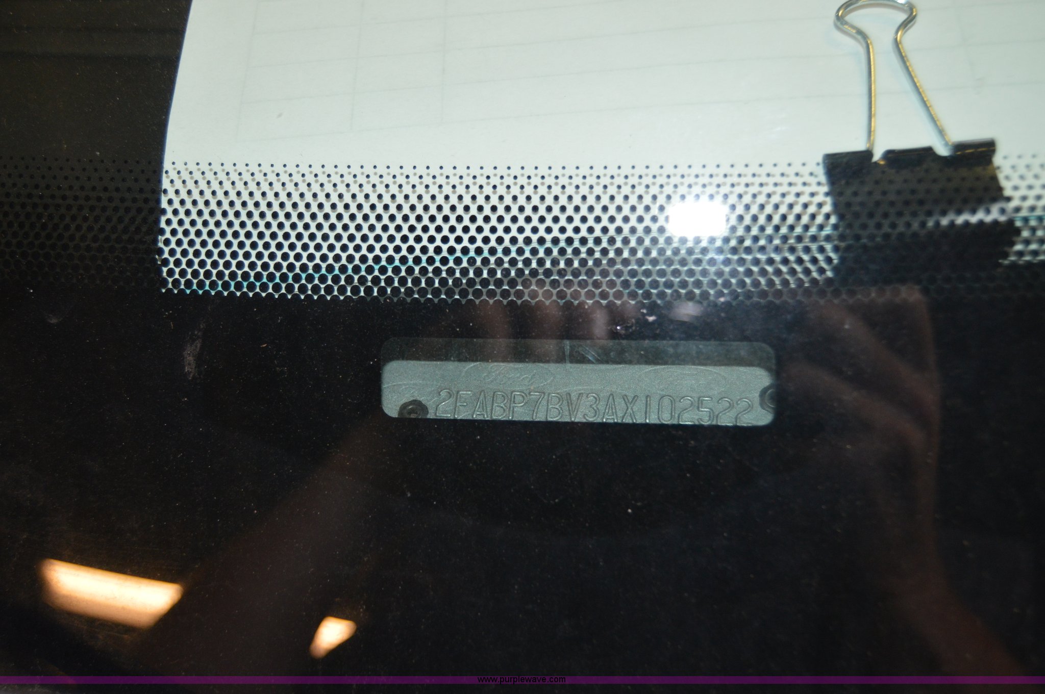 Purple Wave is selling a used Passenger Vehicle in Missouri. This item is a 2010 Ford Crown Victoria Police Interceptor with the following: 104,660 miles on odometer, 4.6L V8 SOHC 16V FFV gas engine, Automatic transmission, AC and heat, Tilt, Cruise, AM/FM, Power windows, locks, and mirrors, Cloth interior, Adjustable foot pedals, 235/55R17 tires, Interior/exterior cosmetic damage, Check engine light on, Original rear seat included, Unit# 106