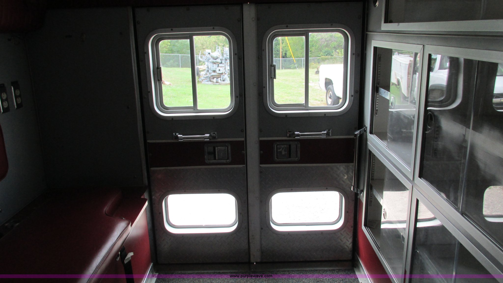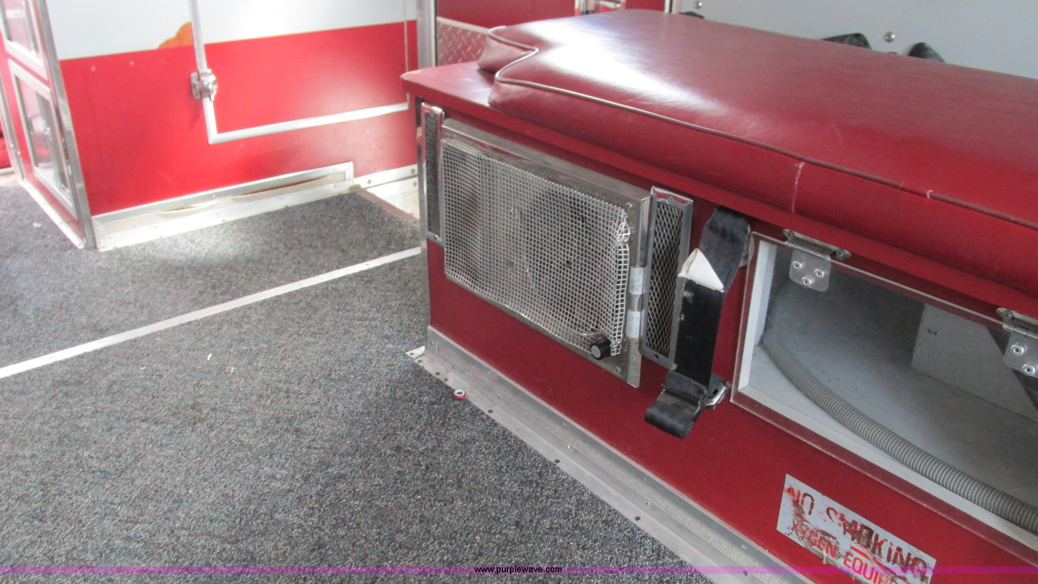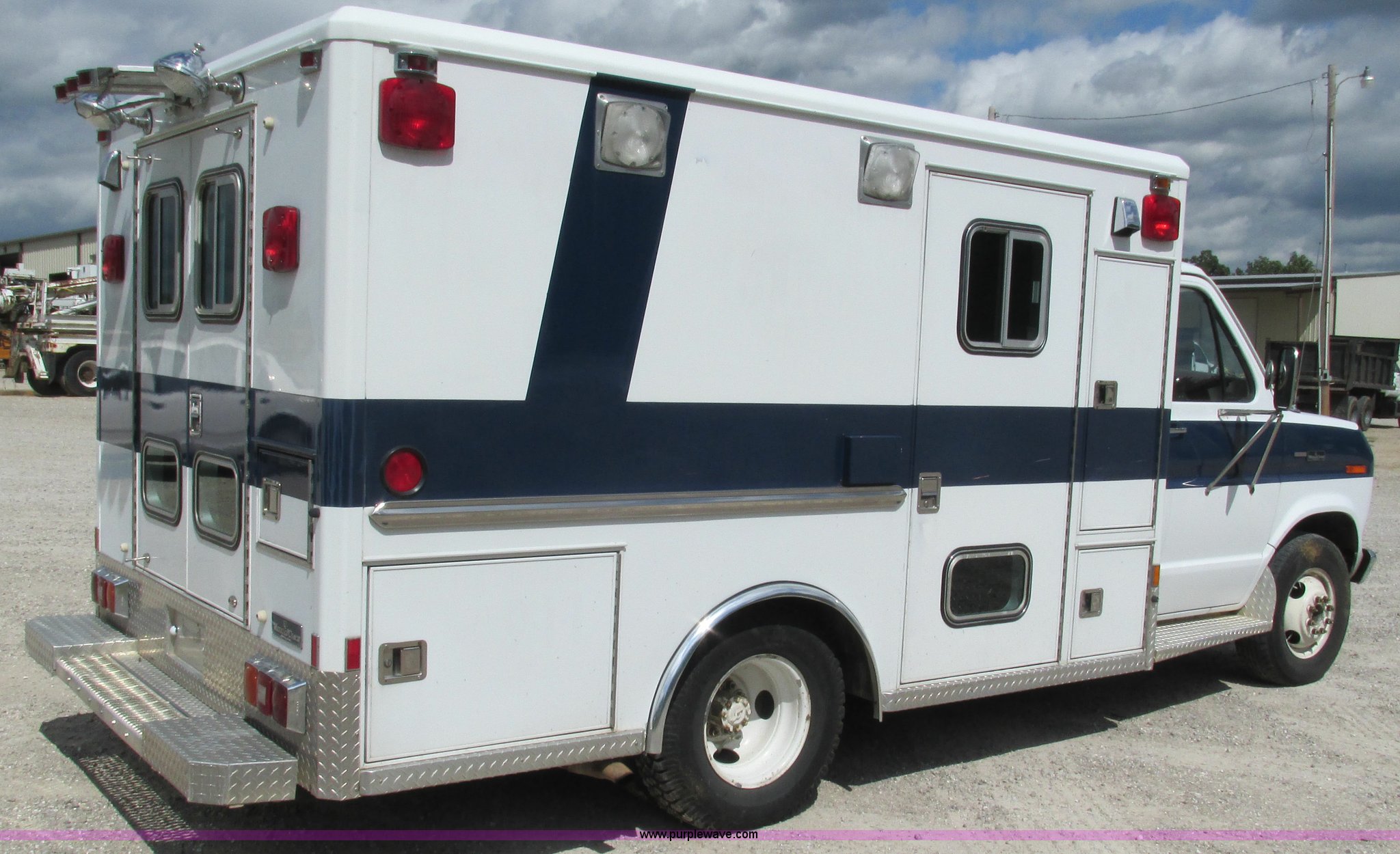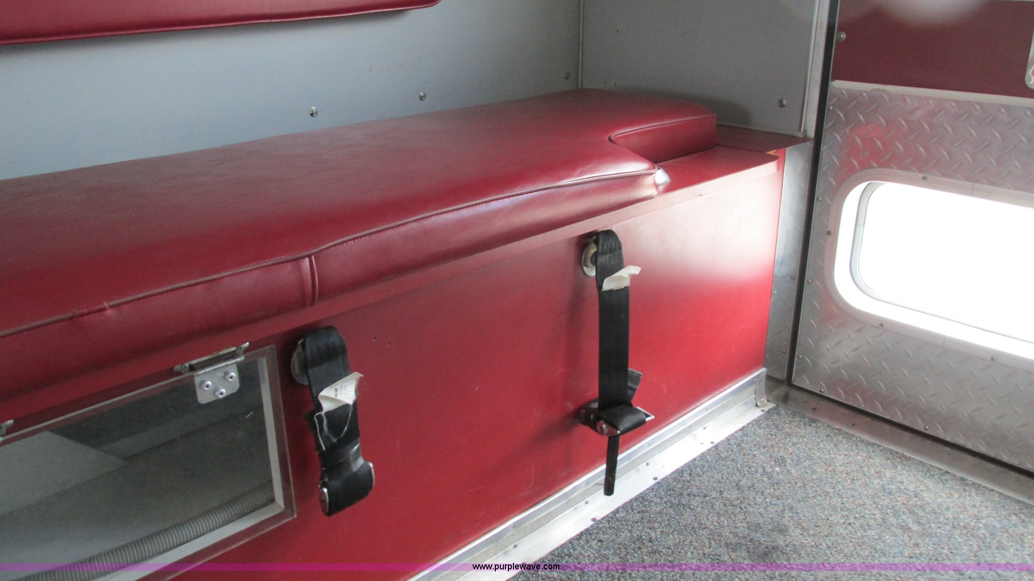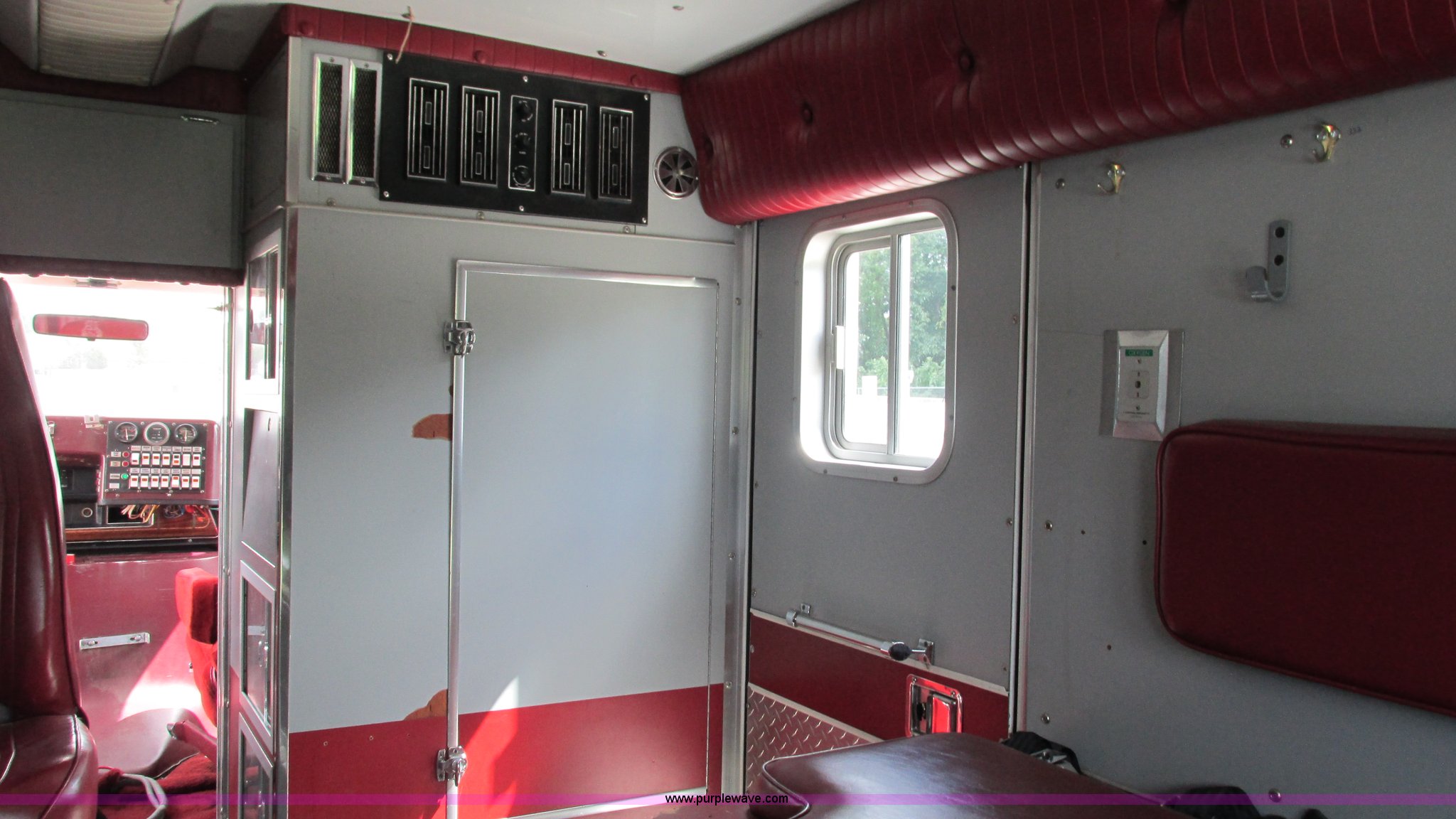 Purple Wave is selling a used Fire Truck or Emergency Vehicle in Missouri. This item is a 1989 Ford Econoline E350 van with the following: 69,508 miles on odometer, 3,583 hours on meter, 7.3L V8 OHV 16V diesel engine, Automatic transmission, AC and heat, Cruise, AM/FM, Manual windows and locks, Cloth interior, Rear AC and heat, Vinyl jump seat and bench seat, Aluminum running boards, Rear wok lights, Wheeled coach conversion, LT215/85R16 tires, FAWR 4,200 lbs, RAWR 10,5000 lbs, RAWR 7,480 lbs, Interior/exterior cosmetic damage, Two compartments will not open, Grill parts missing, Unit# 10145