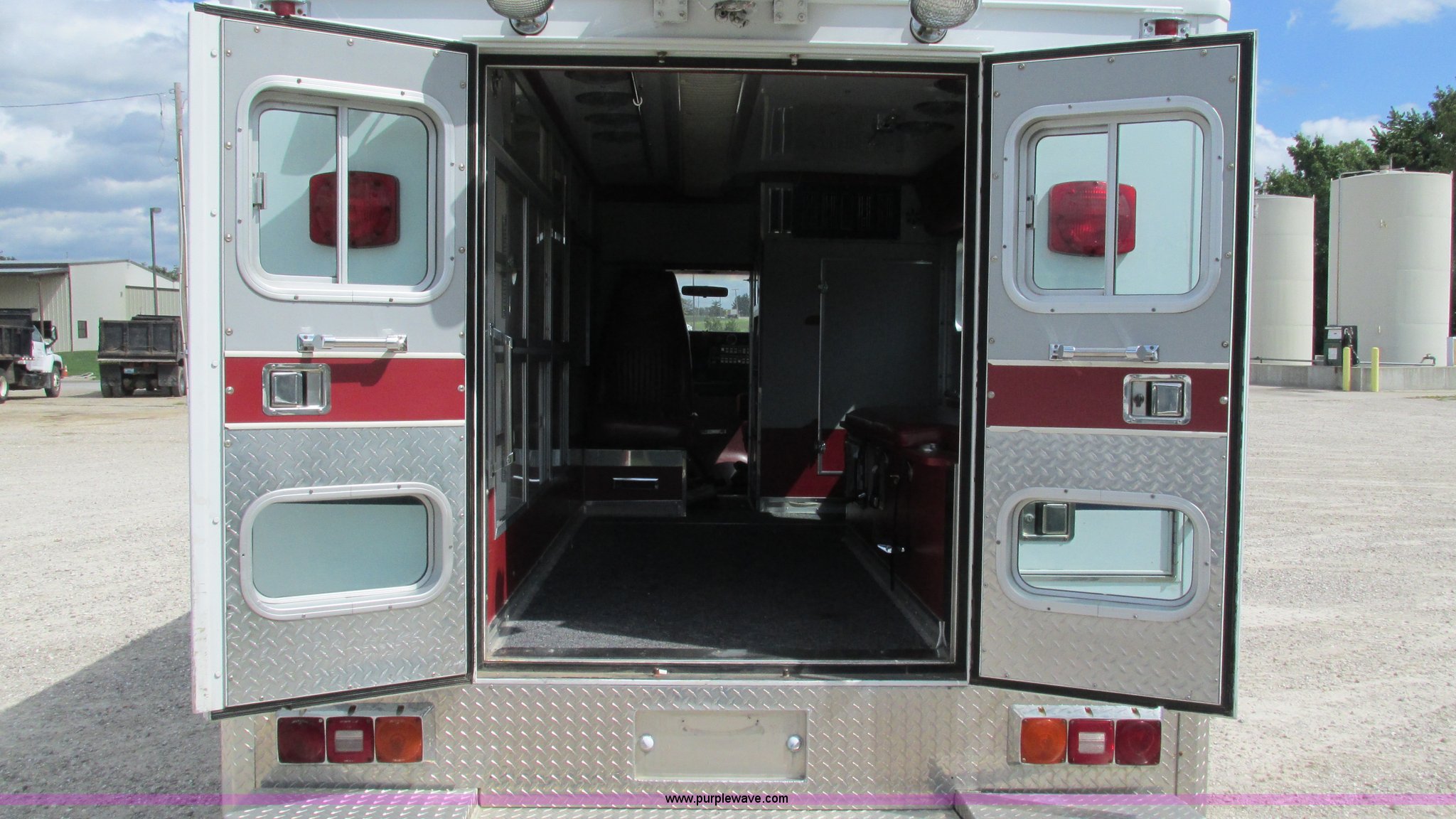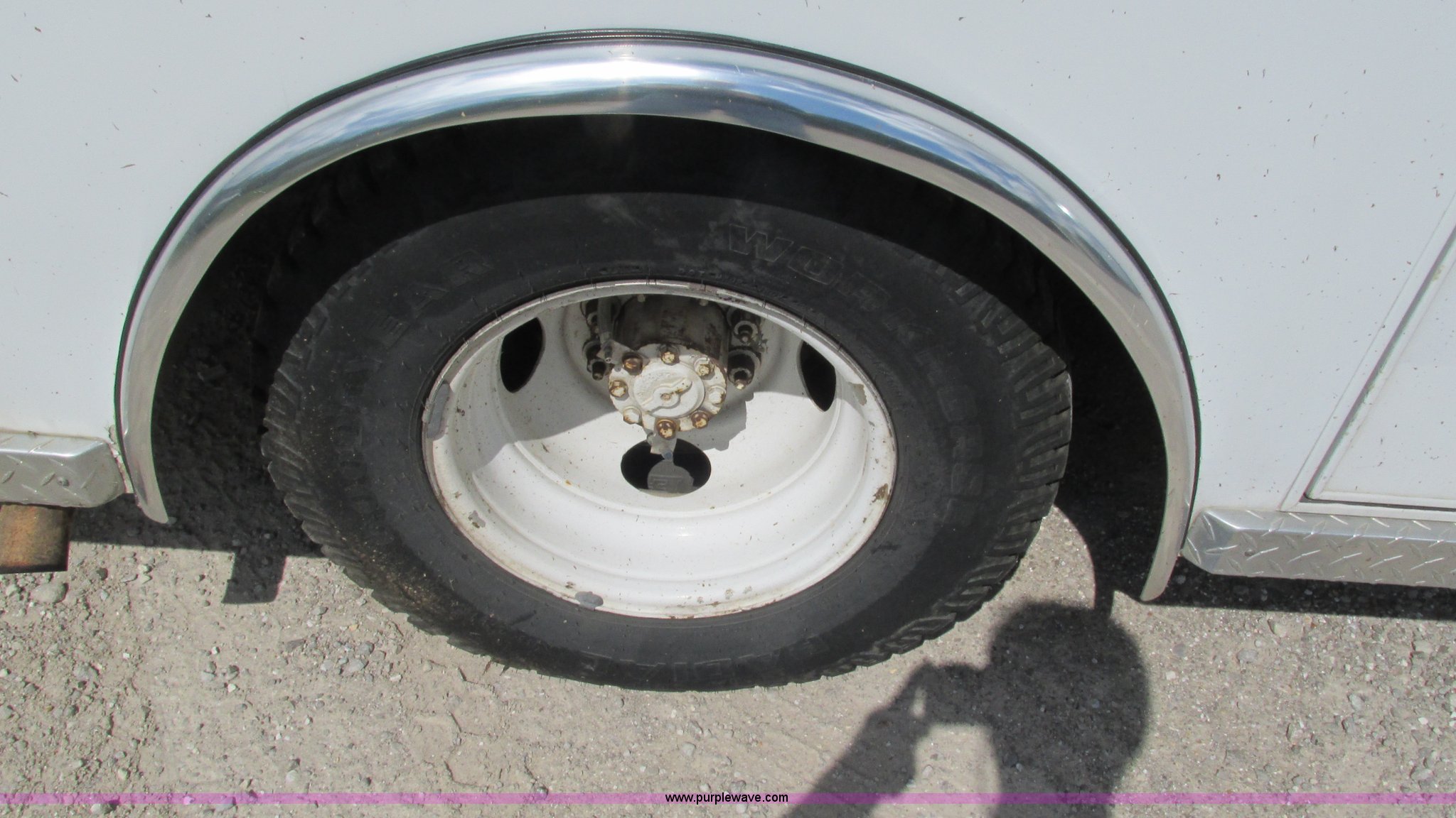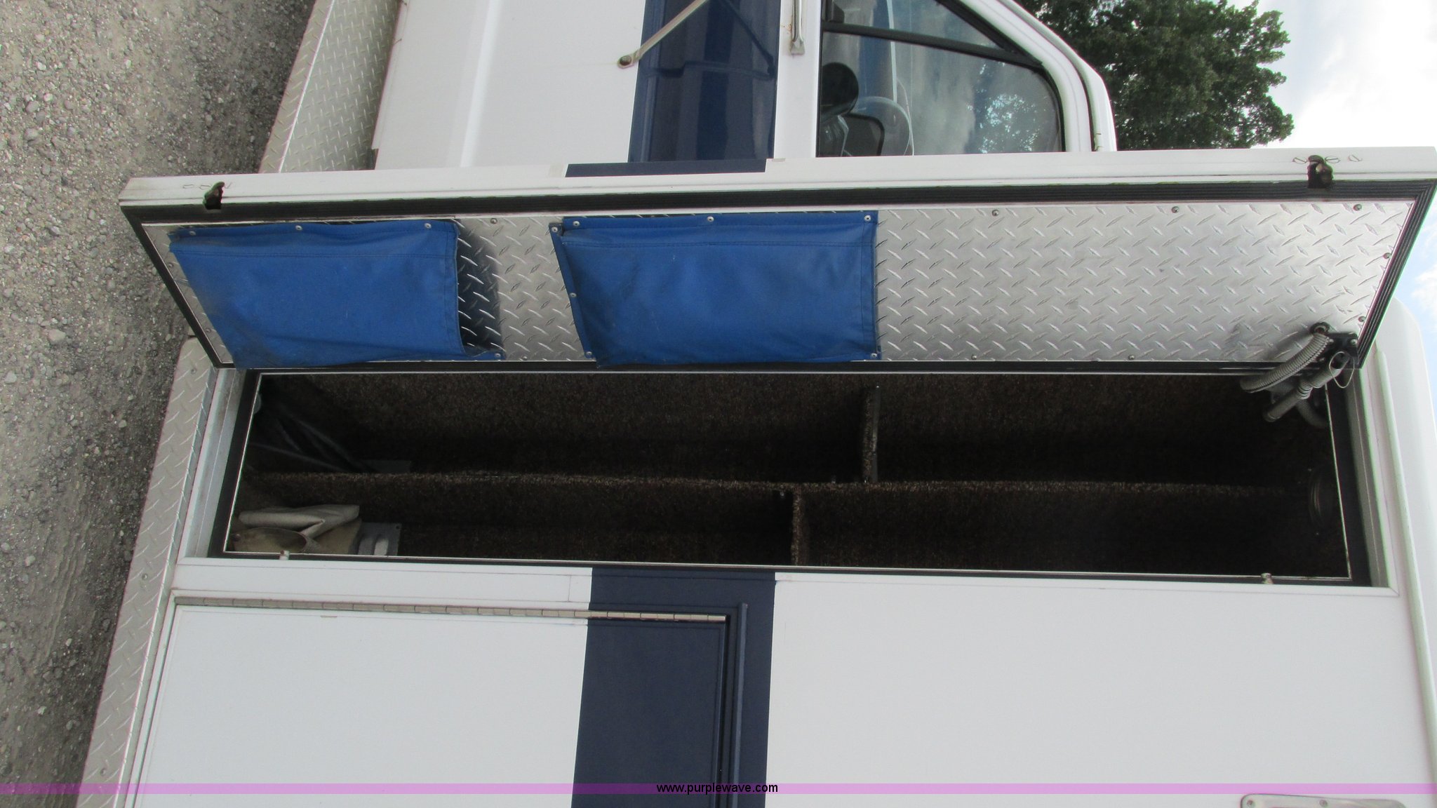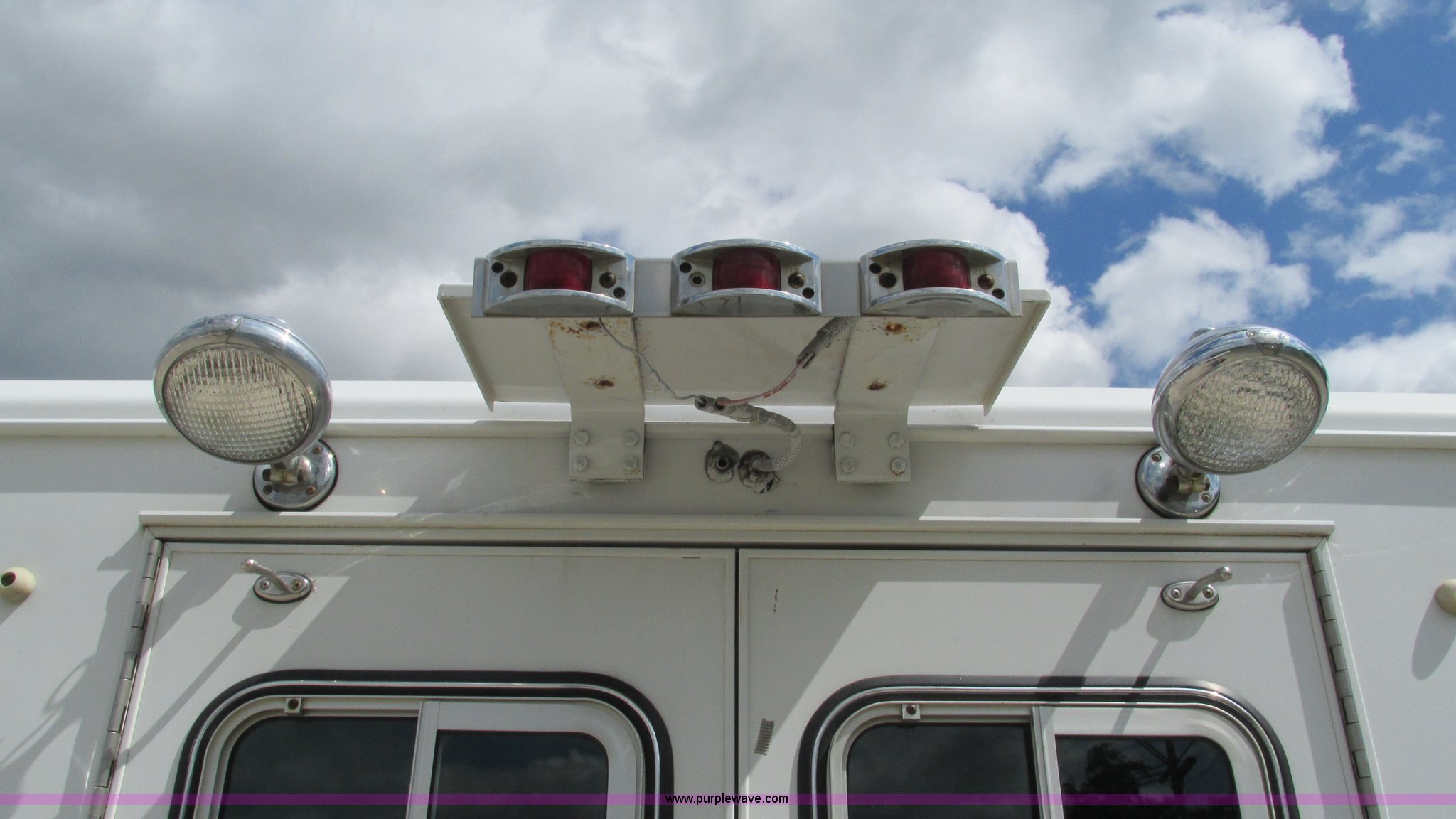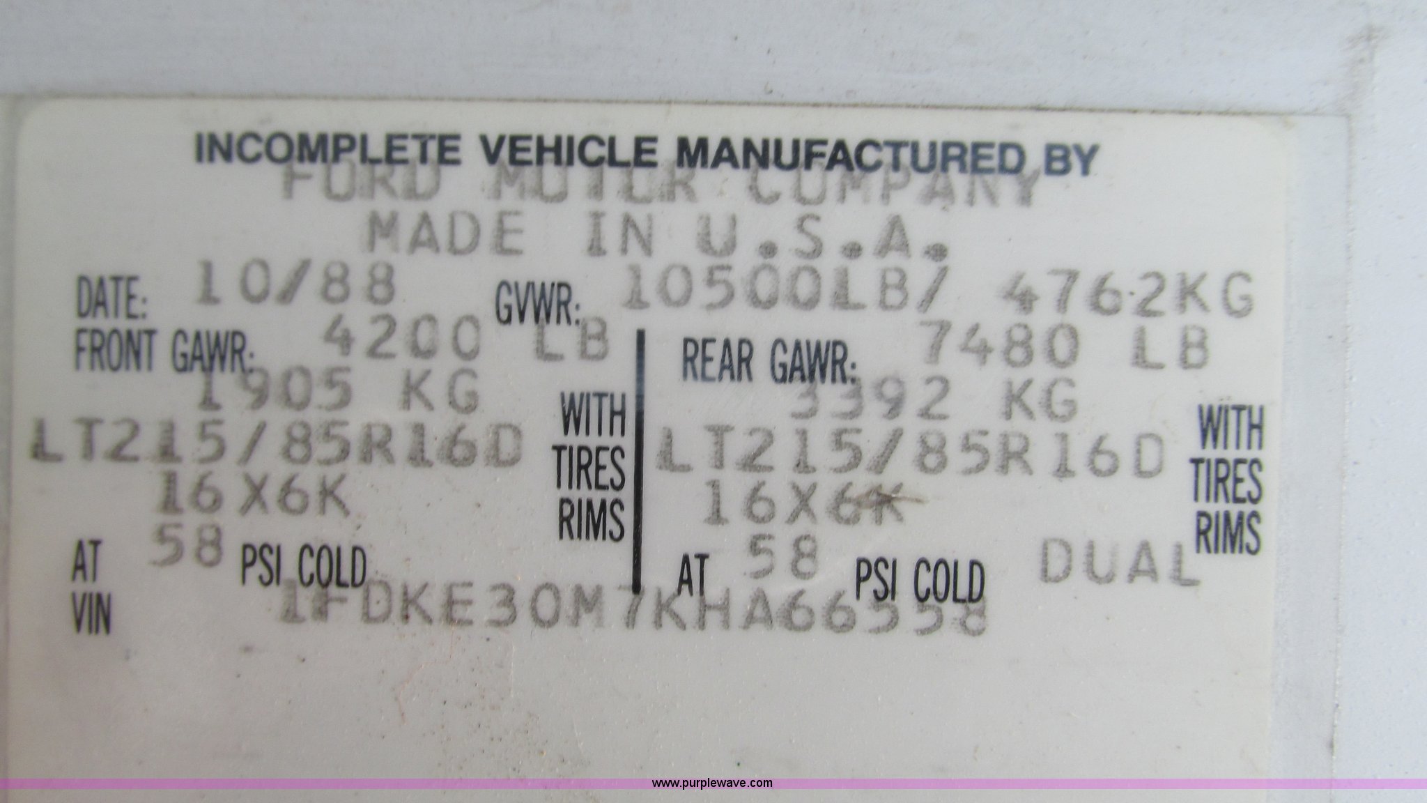 Purple Wave is selling a used Fire Truck or Emergency Vehicle in Missouri. This item is a 1989 Ford Econoline E350 van with the following: 69,508 miles on odometer, 3,583 hours on meter, 7.3L V8 OHV 16V diesel engine, Automatic transmission, AC and heat, Cruise, AM/FM, Manual windows and locks, Cloth interior, Rear AC and heat, Vinyl jump seat and bench seat, Aluminum running boards, Rear wok lights, Wheeled coach conversion, LT215/85R16 tires, FAWR 4,200 lbs, RAWR 10,5000 lbs, RAWR 7,480 lbs, Interior/exterior cosmetic damage, Two compartments will not open, Grill parts missing, Unit# 10145