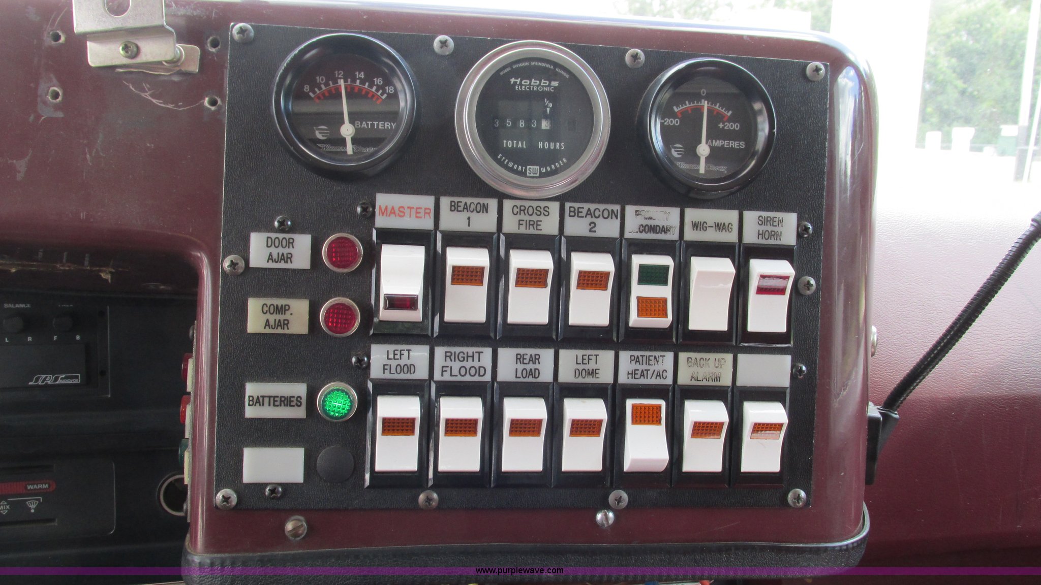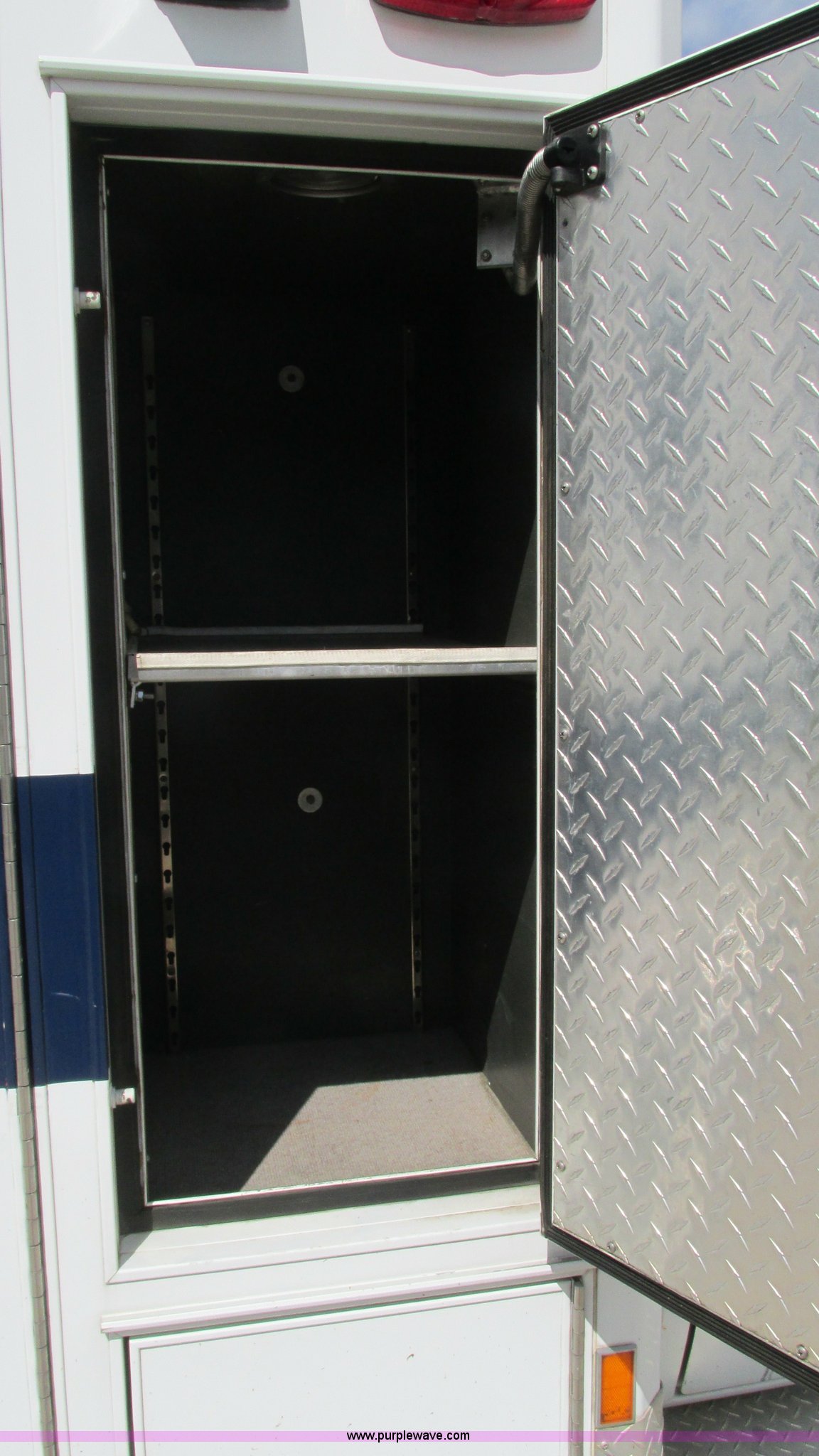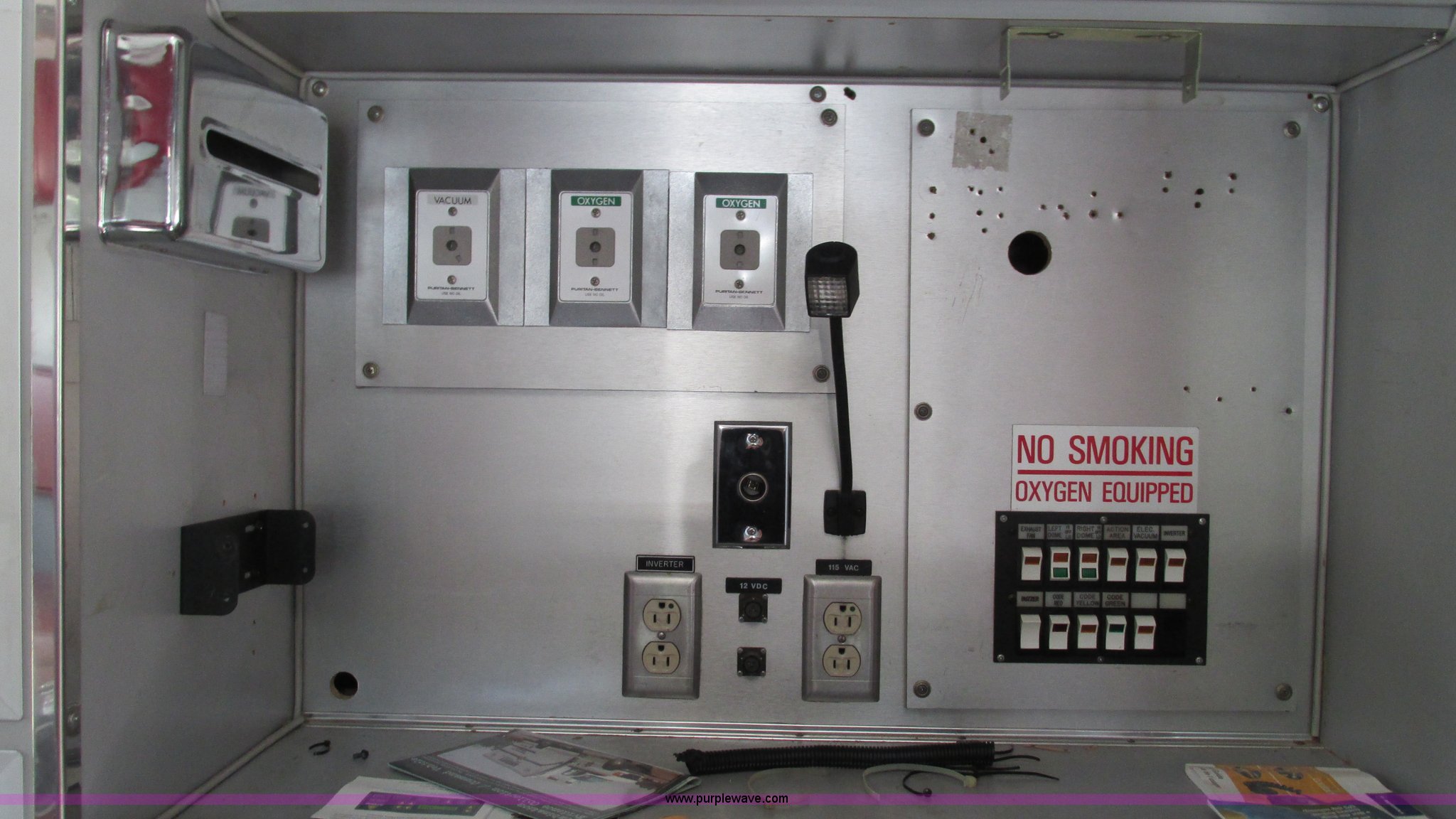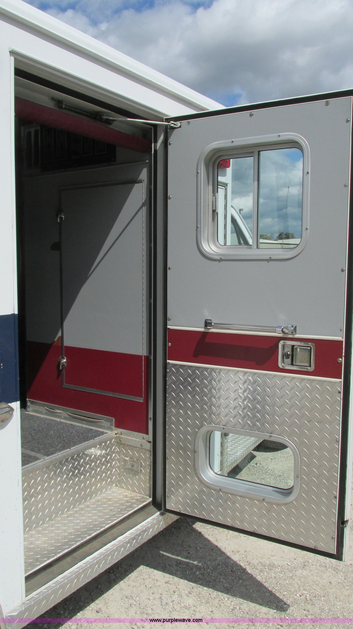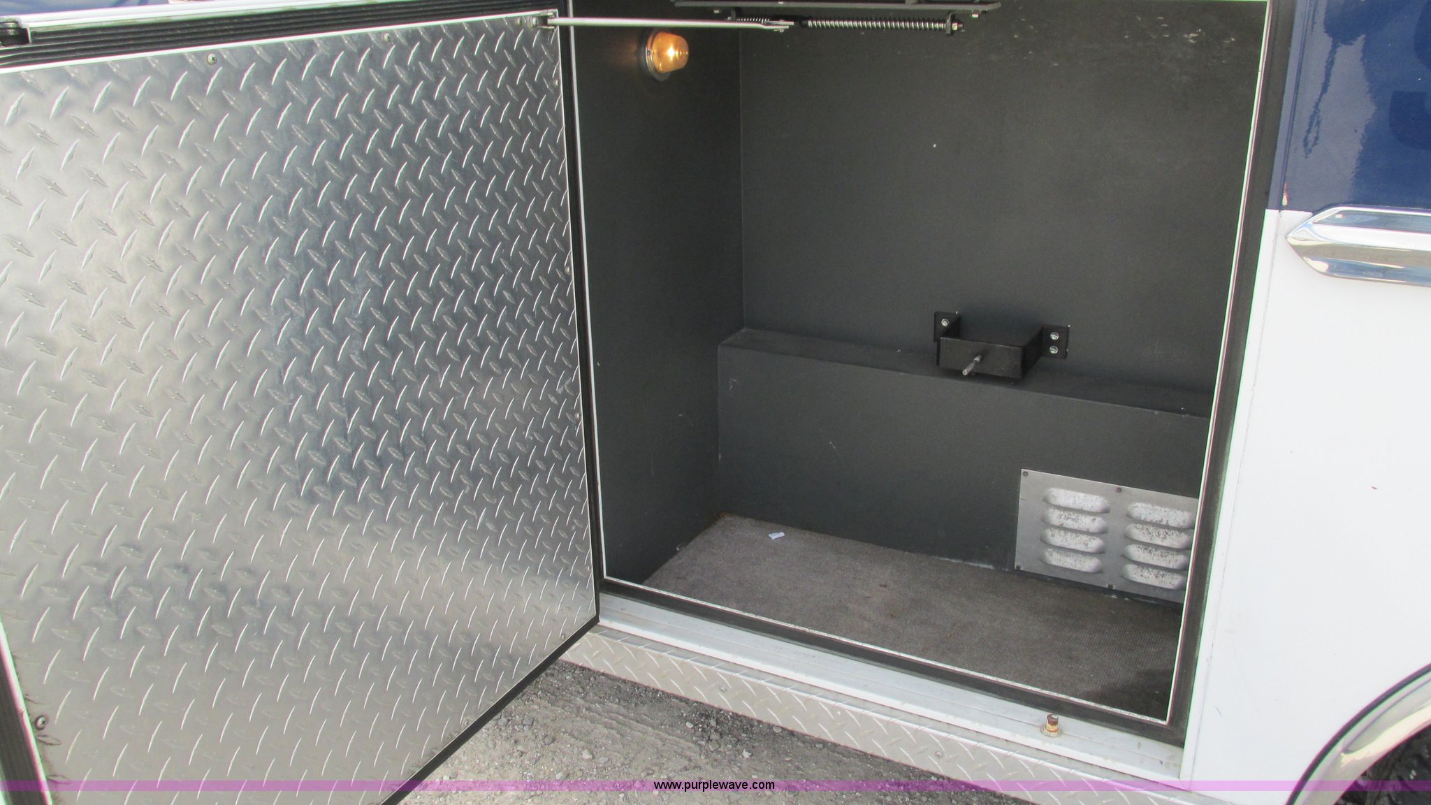 Purple Wave is selling a used Fire Truck or Emergency Vehicle in Missouri. This item is a 1989 Ford Econoline E350 van with the following: 69,508 miles on odometer, 3,583 hours on meter, 7.3L V8 OHV 16V diesel engine, Automatic transmission, AC and heat, Cruise, AM/FM, Manual windows and locks, Cloth interior, Rear AC and heat, Vinyl jump seat and bench seat, Aluminum running boards, Rear wok lights, Wheeled coach conversion, LT215/85R16 tires, FAWR 4,200 lbs, RAWR 10,5000 lbs, RAWR 7,480 lbs, Interior/exterior cosmetic damage, Two compartments will not open, Grill parts missing, Unit# 10145