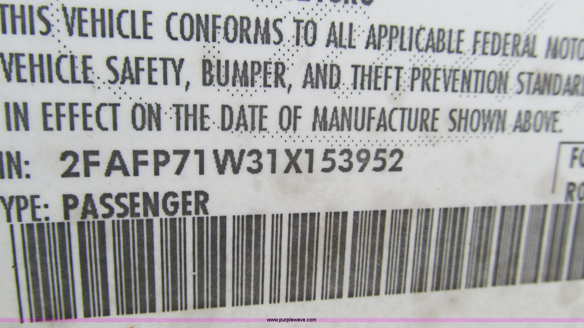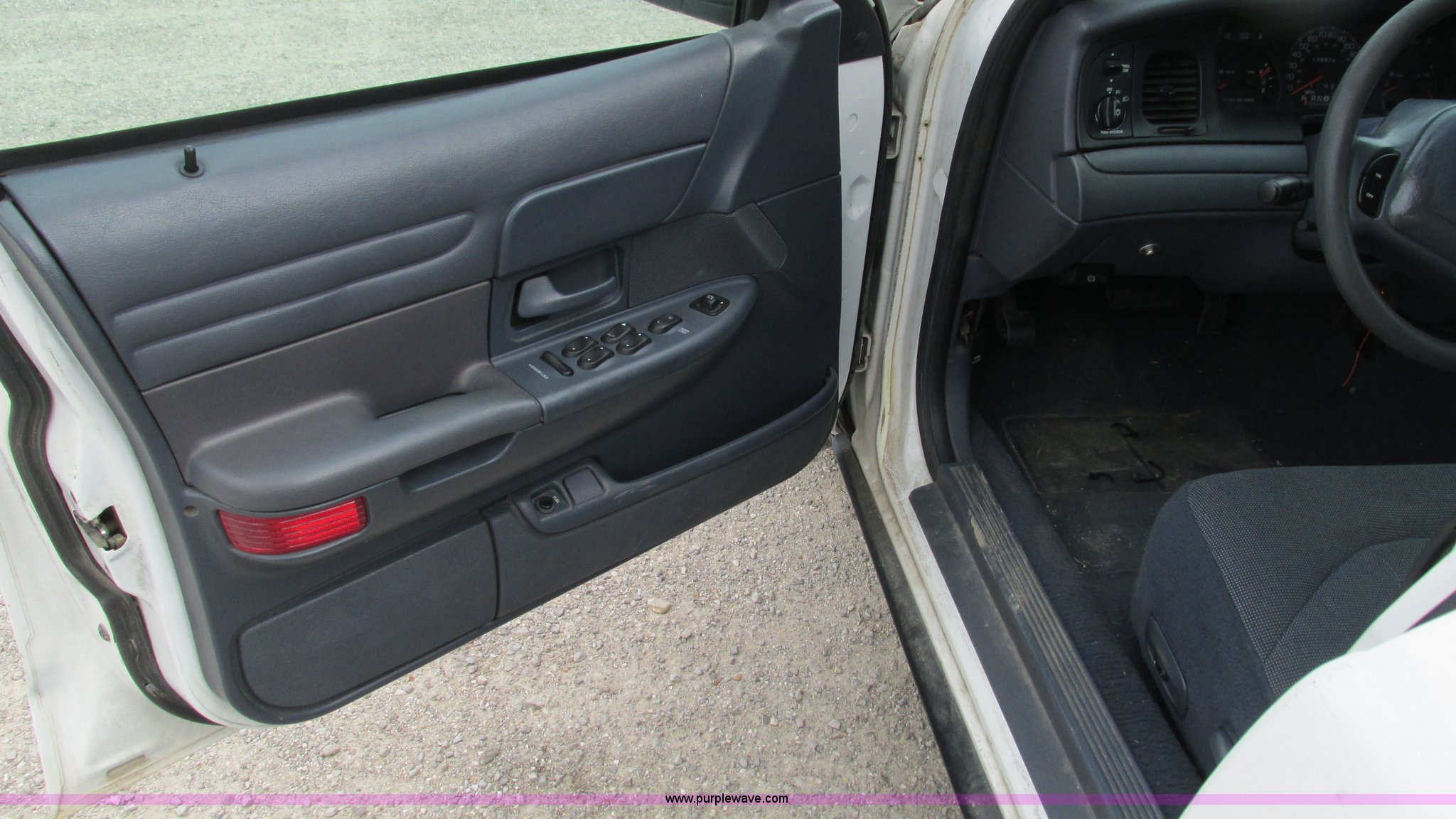 Purple Wave is selling a used Passenger Vehicle in Missouri. This item is a 2001 Ford Crown Victoria Police Interceptor with the following: 135,979 miles on odometer, 4.6L V8 SOHC 16V gas engine, Automatic transmission, AC and heat, Tilt, Cruise, AM/FM, Power windows, locks, and mirrors, Cloth interior, 225/60R16 tires, Interior/exterior cosmetic damage, Paint peeling, Rust, No battery, No alternator, Unknown operating condition, Decals will be removed prior to auction, Unit# 10140