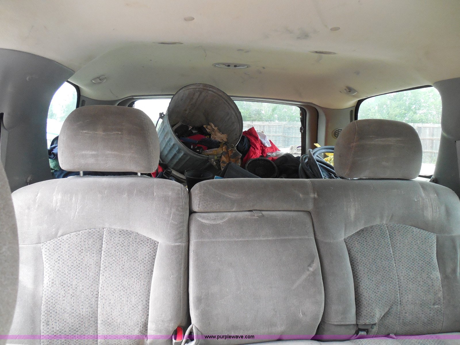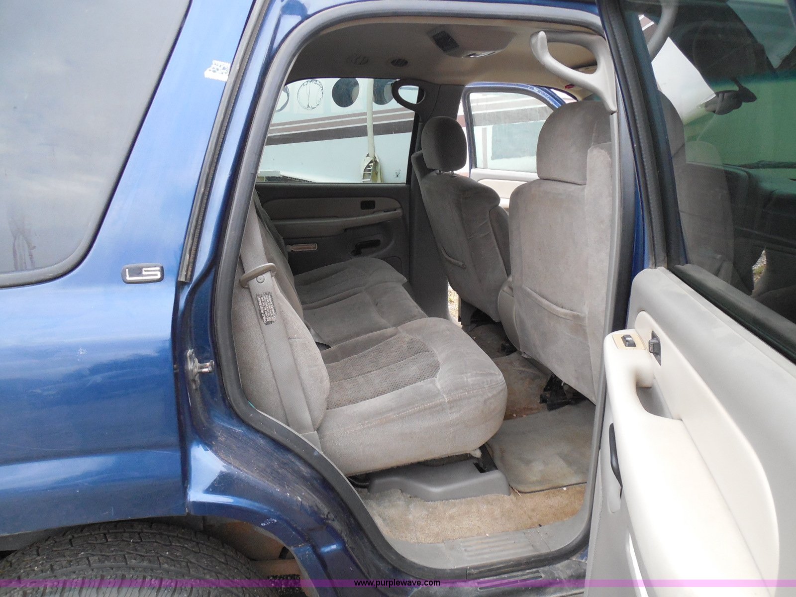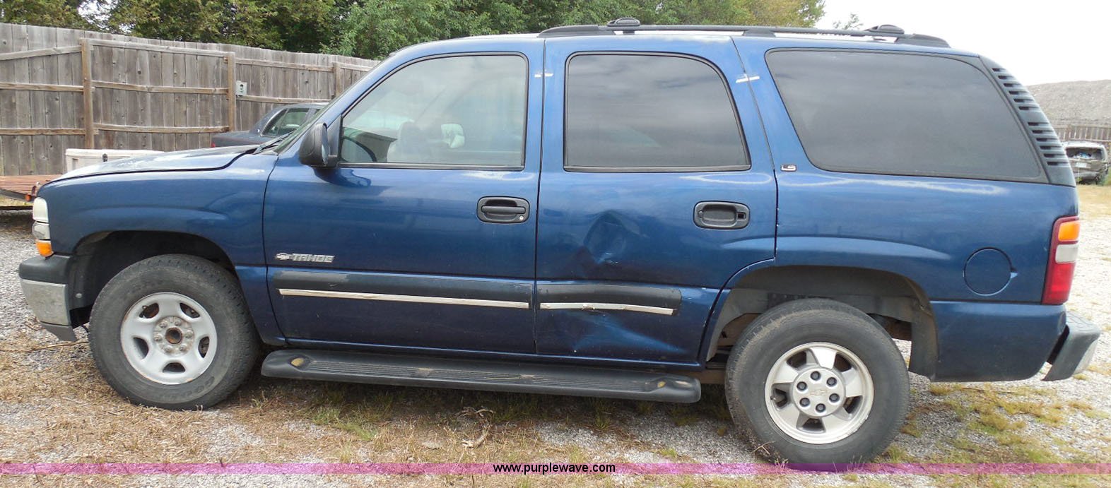 Purple Wave is selling a used Passenger Vehicle in Kansas. This item is a 2000 Chevrolet Tahoe LS SUV with the following: Unknown miles on odometer, 5.3L V8 OHV 16V gas engine, Automatic transmission, Heat, Tilt, Cruise, AM/FM/CD/cassette, Power windows, locks, mirrors, and seats, Cloth interior, Tekonsha electronic brake booster, REAR climate controls, Front tow hooks, Traction assist, Receiver hitch, P255/70R16 tires, Interior/exterior cosmetic damage, Left side passenger door damage, Paint faded and peeling, Scratches, Hood paint missing, Dead battery, Wheels do not match, Left passenger door does not open, Damaged, Back hatch does not open, Third seat missing, Contents not included