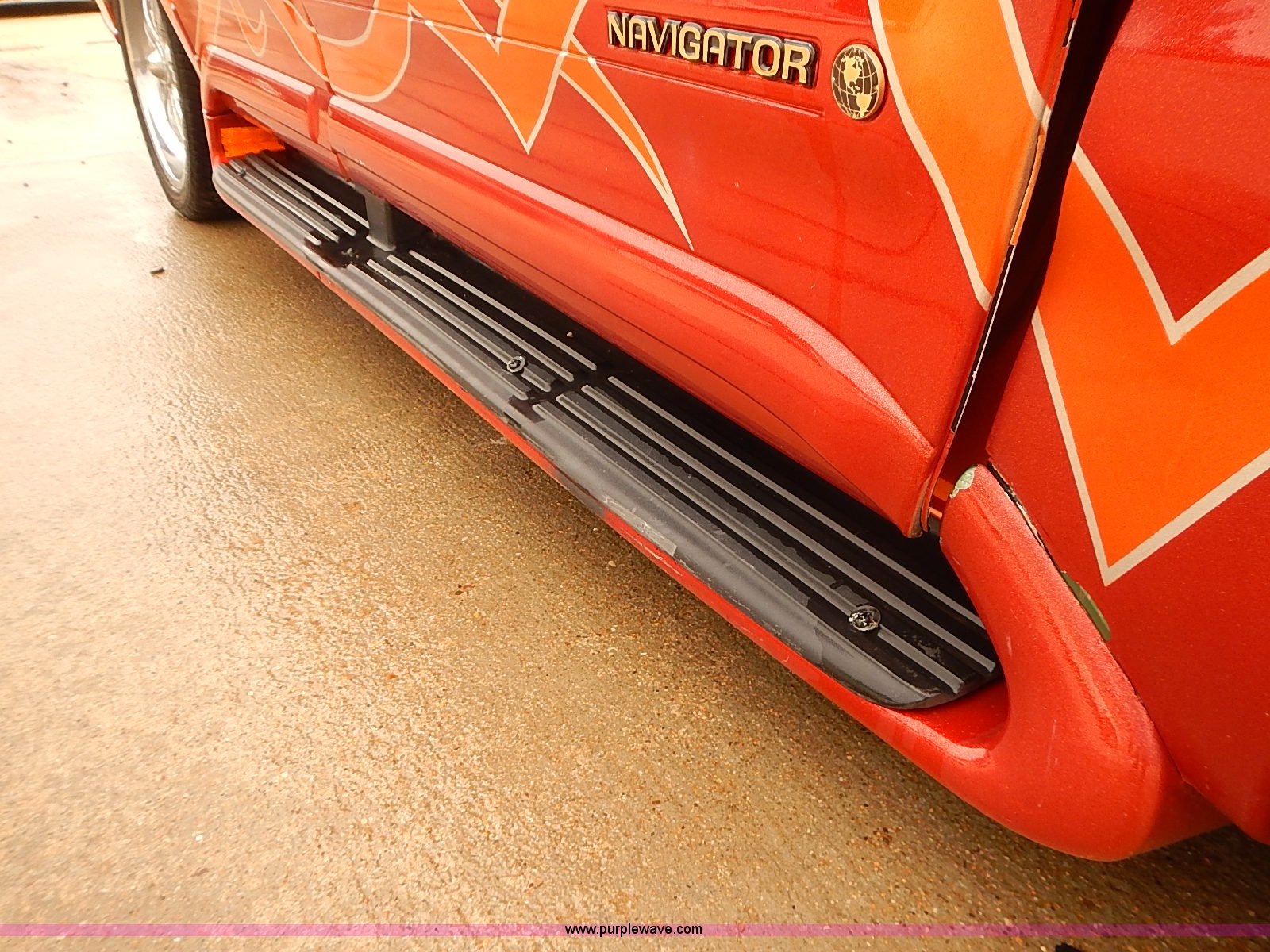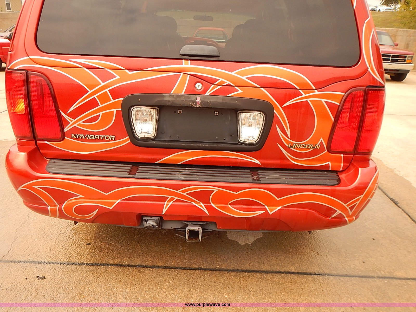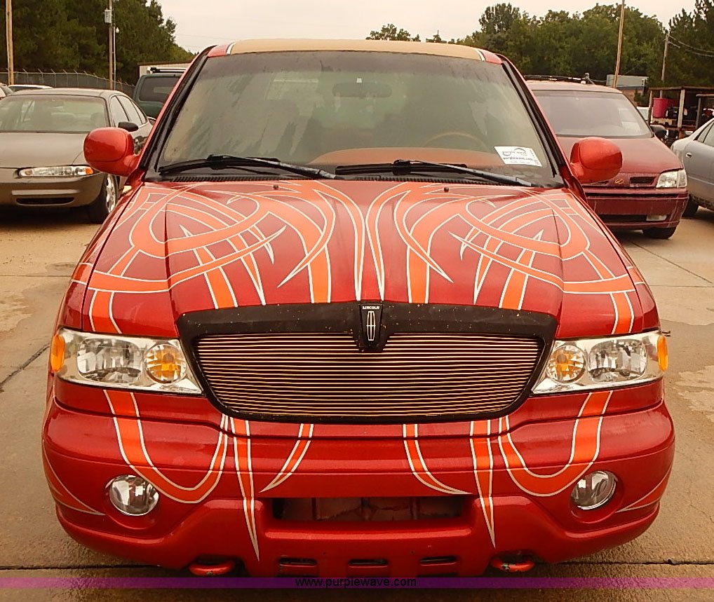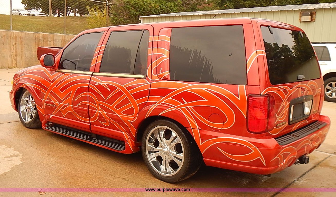 Purple Wave is selling a used Passenger Vehicle in Kansas. This item is a 1998 Lincoln Navigator SUV with the following: 56,373 miles on odometer, 5.4L V8 SOHC 16V gas engine, Automatic transmission, Four wheel drive, AC and heat, Tilt, Cruise, AM/FM/MP3, Power windows, locks, mirrors, and seats, Heated seats, Leather interior, Audio Bahn Special Edition speaker system, (2) Crunch 1,000 watt amplifiers, Lamborgini style front doors, Originals included, Front tow hooks, Fog lights, Running boards, Suicide rear doors, Receiver hitch, Trailer wiring, Air bag suspension, Hankooks 275/40R20 tires, Custom paint, Stereo system inoperable, Dead battery, Slow leak in air bag lines, No exterior door handles, ABS light on