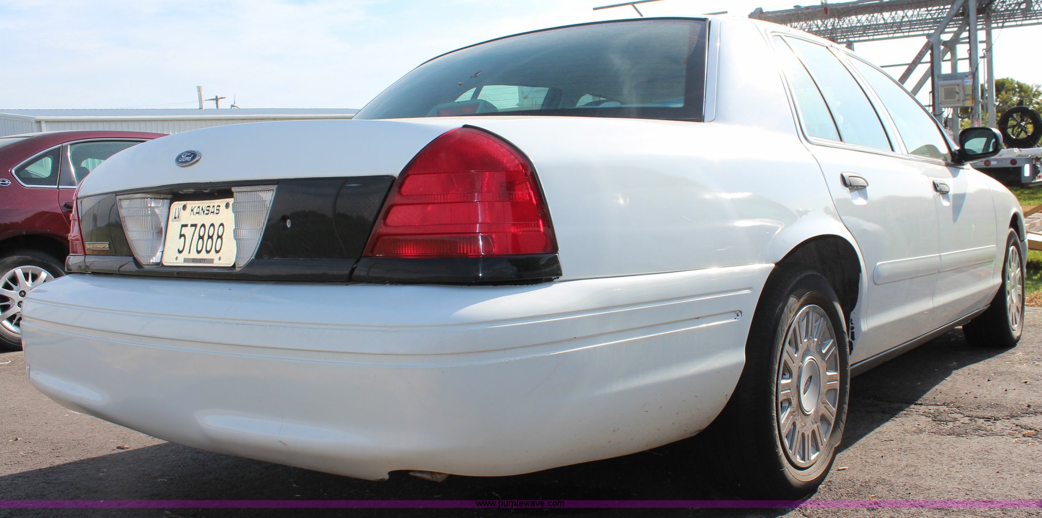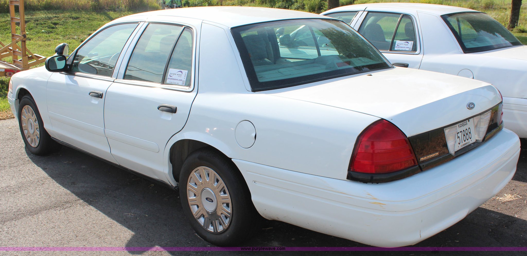 Purple Wave is selling a used Passenger Vehicle in Kansas. This item is a 2004 Ford Crown Victoria Police Interceptor with the following: 109,649 miles on odometer, 4.6L V8 SOHC 16V gas engine, Automatic transmission, AC and heat, Tilt, Cruise, AM/FM, Power windows, locks, mirrors, and seats, Cloth interior, Spotlight, 225/60R16 tires, Repainted white three years ago