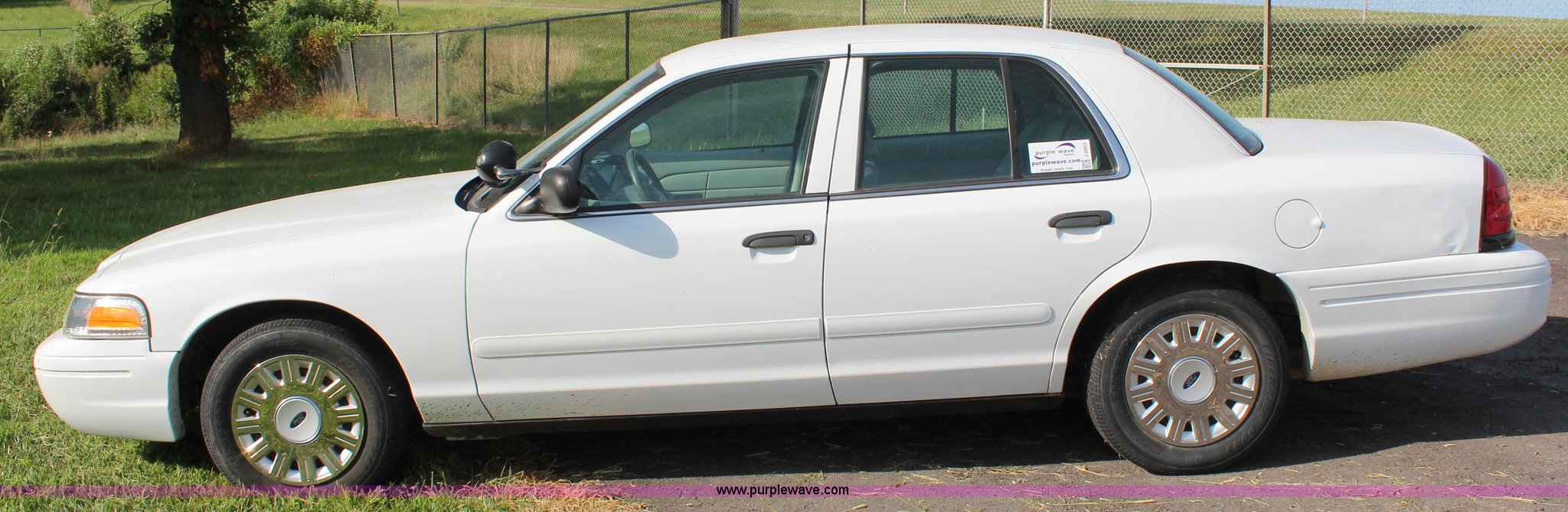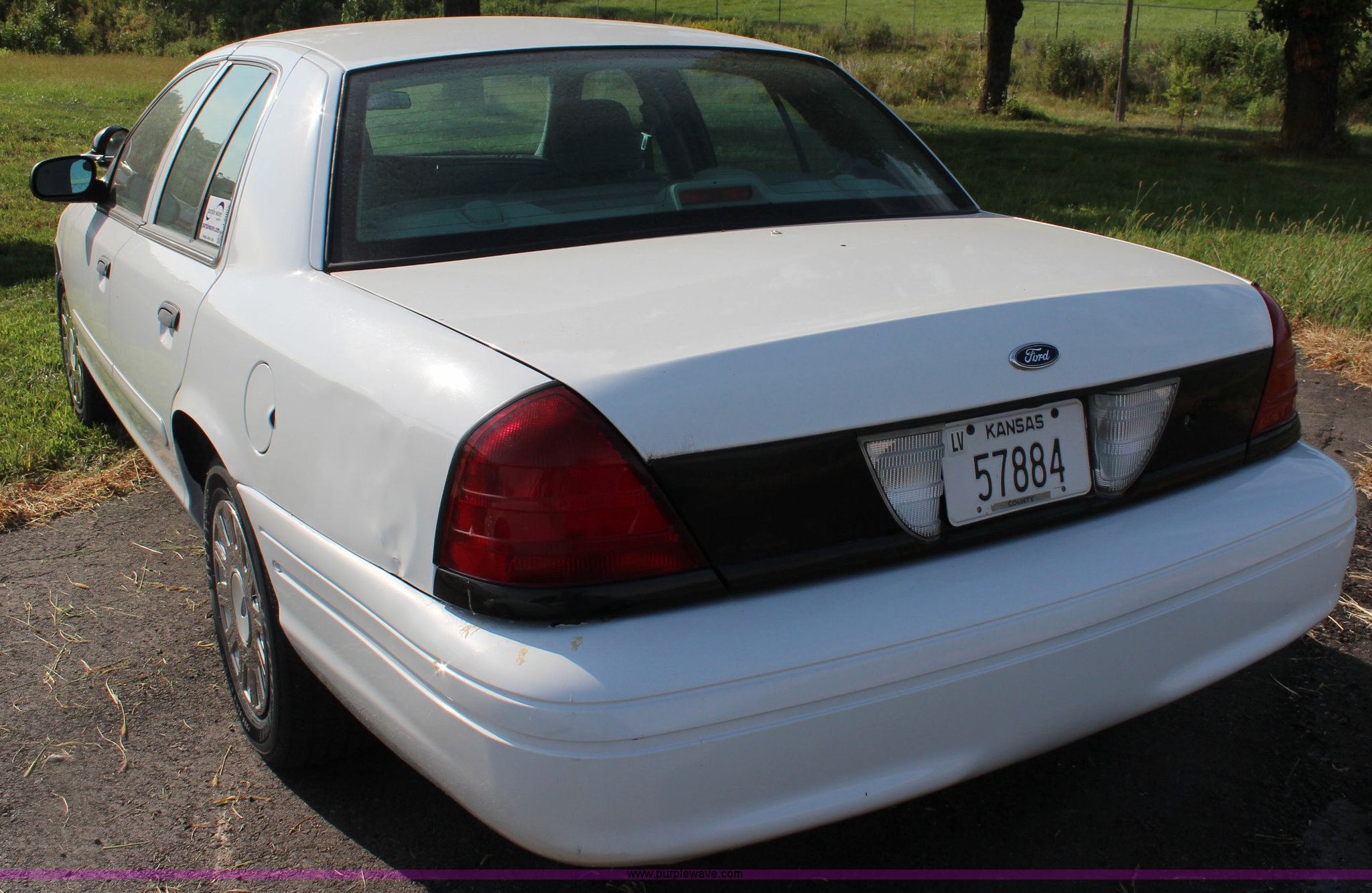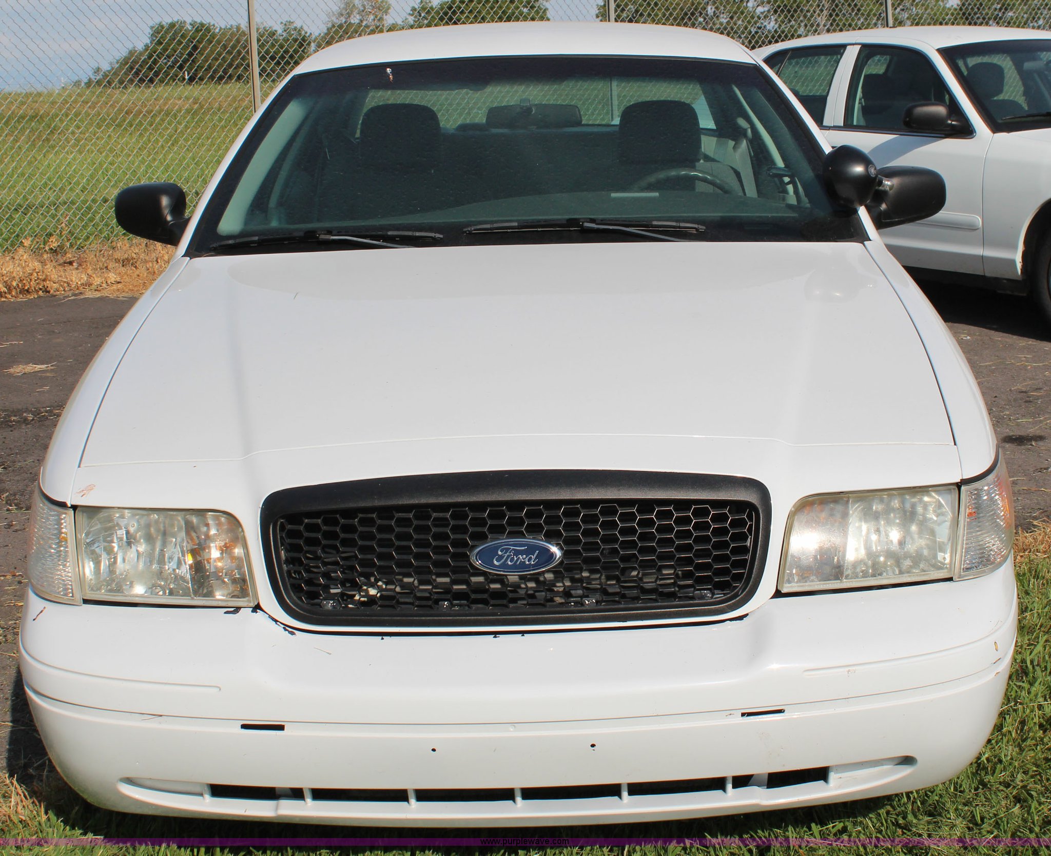 Purple Wave is selling a used Passenger Vehicle in Kansas. This item is a 2004 Ford Crown Victoria Police Interceptor with the following: 96,765 miles on odometer, 4.6L V8 SOHC 16V gas engine, Automatic transmission, AC and heat, Tilt, Cruise, AM/FM, Power windows, locks, mirrors, and seats, Cloth interior, Spotlight, 225/60R16 tires, Repainted white two years ago, Electric door lock does not work lock doors but will unlock doors