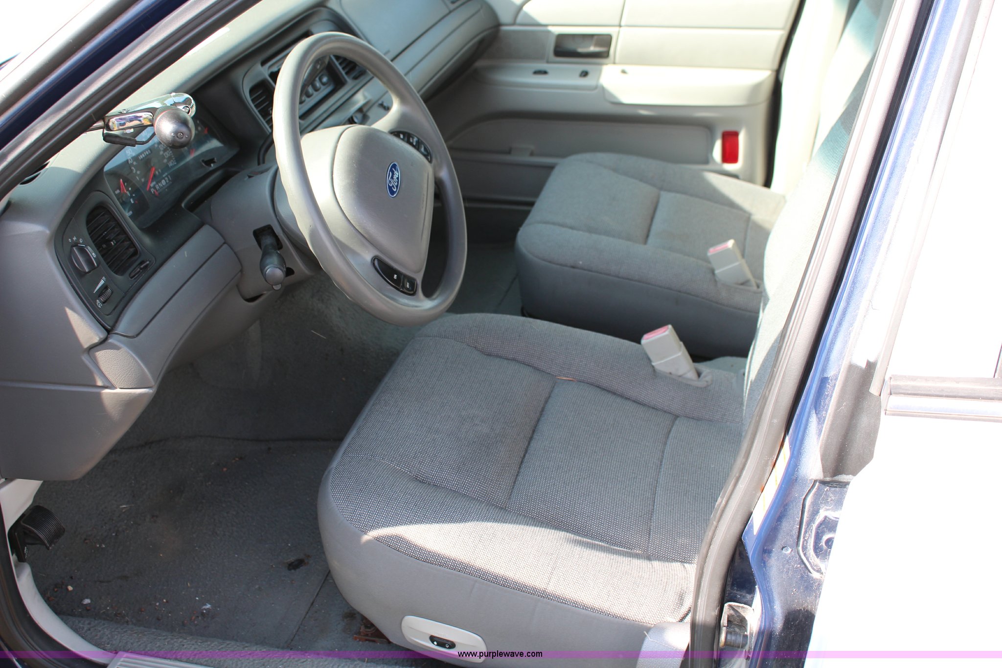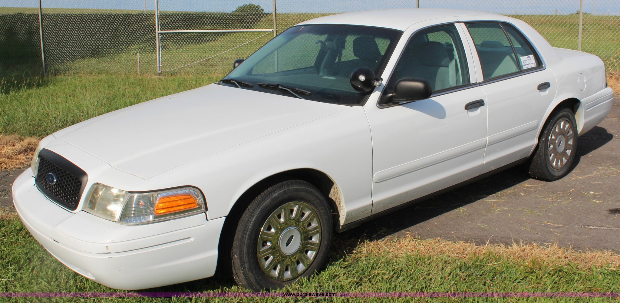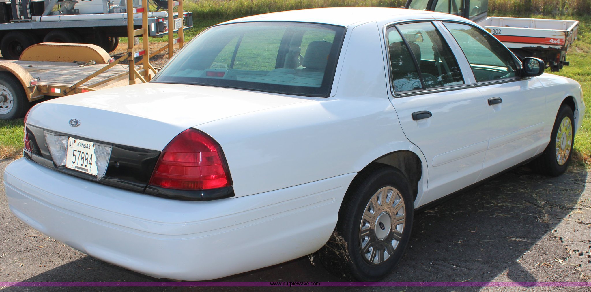 Purple Wave is selling a used Passenger Vehicle in Kansas. This item is a 2004 Ford Crown Victoria Police Interceptor with the following: 96,765 miles on odometer, 4.6L V8 SOHC 16V gas engine, Automatic transmission, AC and heat, Tilt, Cruise, AM/FM, Power windows, locks, mirrors, and seats, Cloth interior, Spotlight, 225/60R16 tires, Repainted white two years ago, Electric door lock does not work lock doors but will unlock doors
