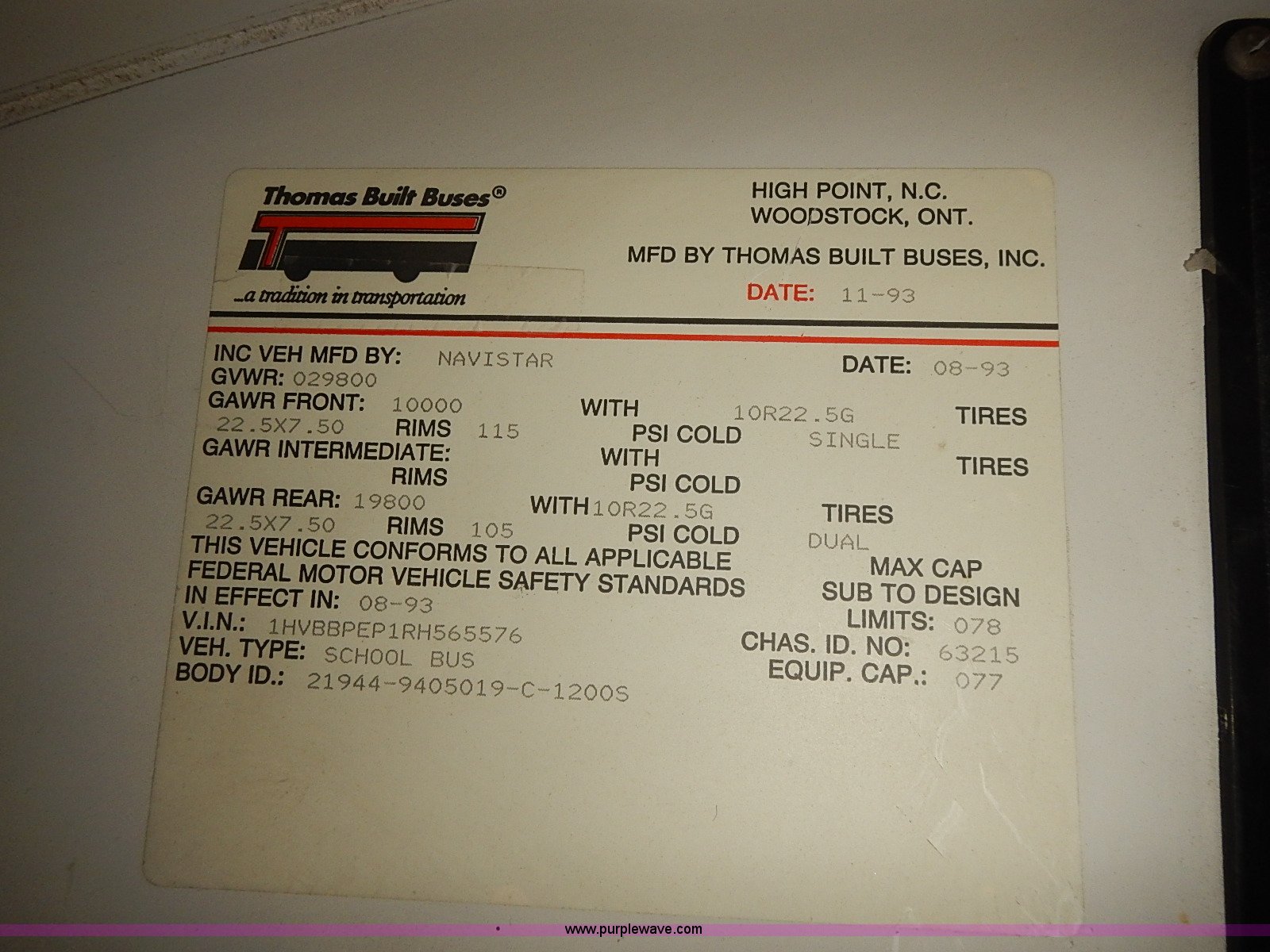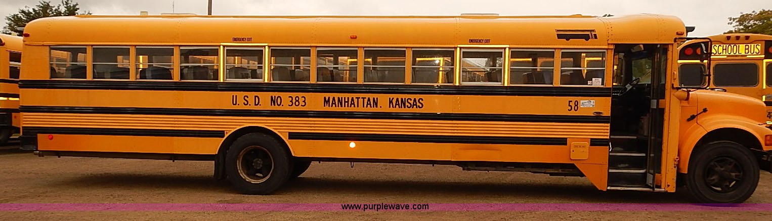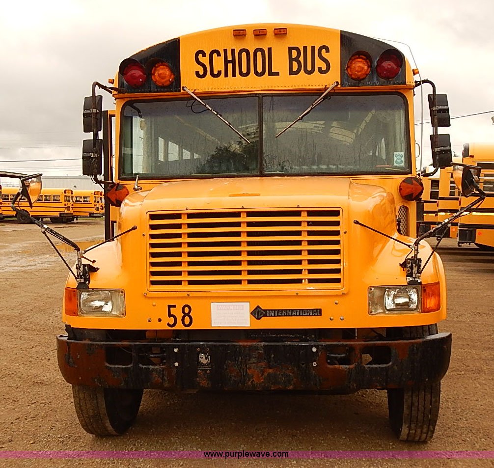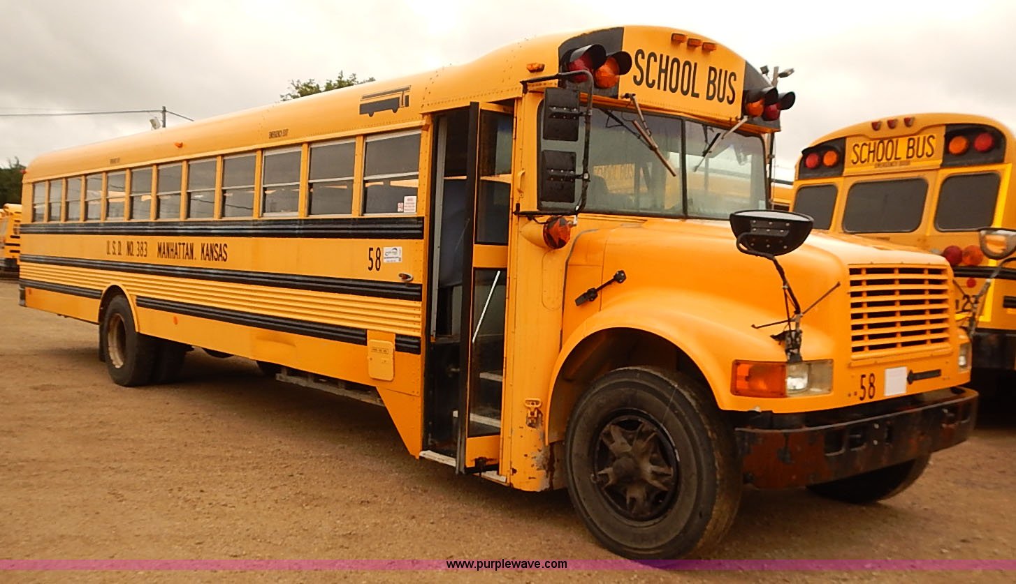 Purple Wave is selling a used Bus in Kansas. This item is a 1994 International 3800 school bus with the following: 212,204 miles on odometer, 7.3L V8 diesel engine, 175 HP, Automatic transmission, Heat, AM/FM, Manual windows and locks, Vinyl interior, Heated mirrors, 72 passenger capacity, Block heater, Front and rear tow hooks, Exterior light monitor, 10R22.5 tires, GVWR 29,800 lbs, Interior/exterior cosmetic damage, Dents, Scratches, Paint peeling, Rust, Signage will be painted over, Unit# 58
