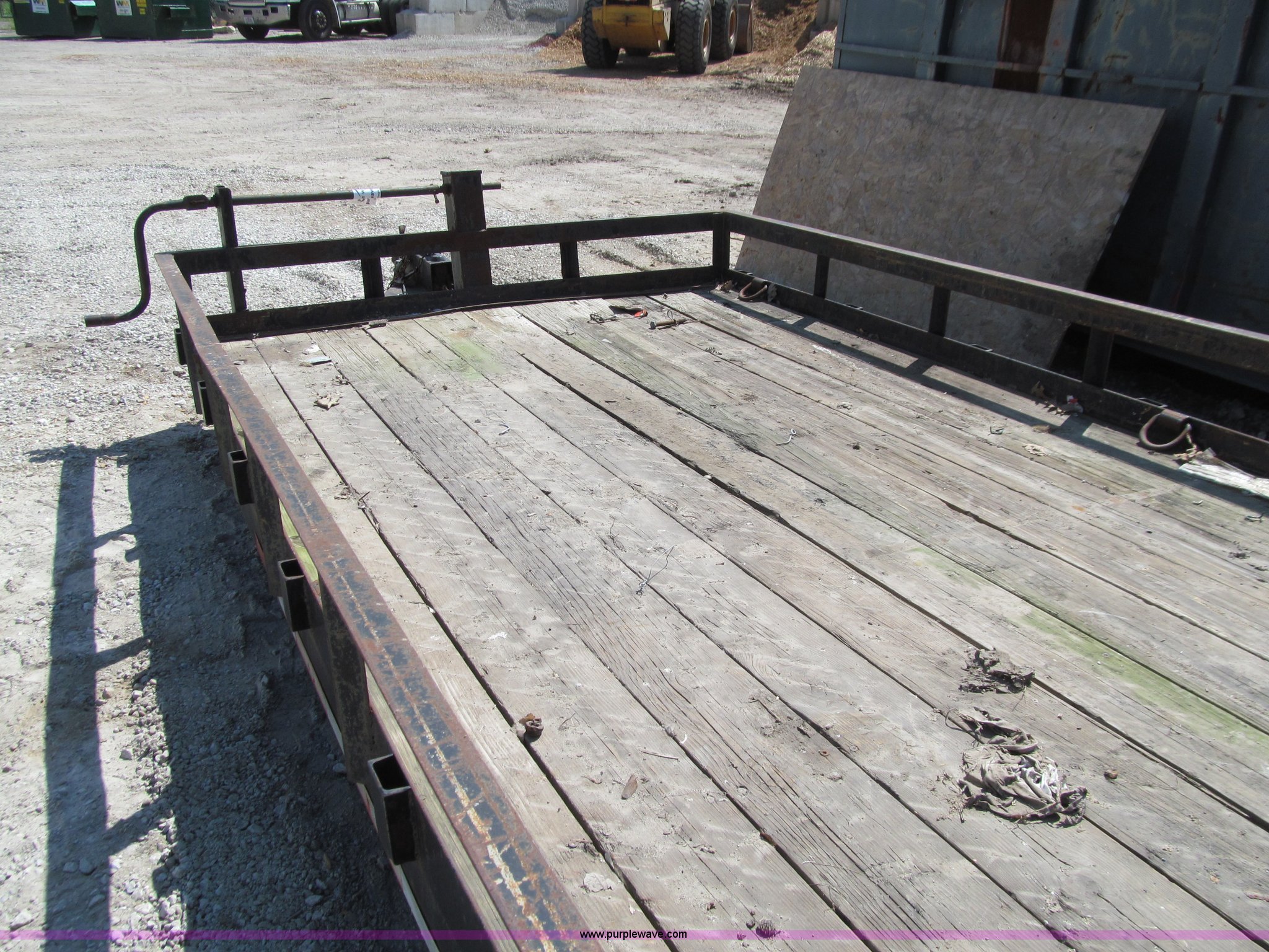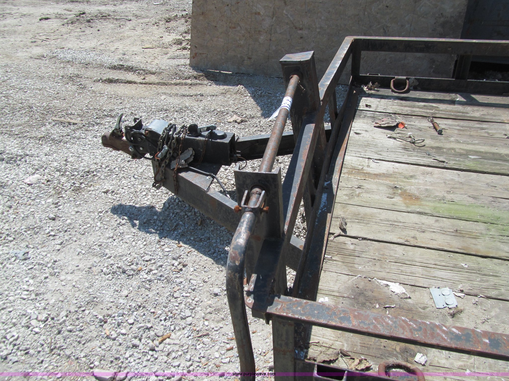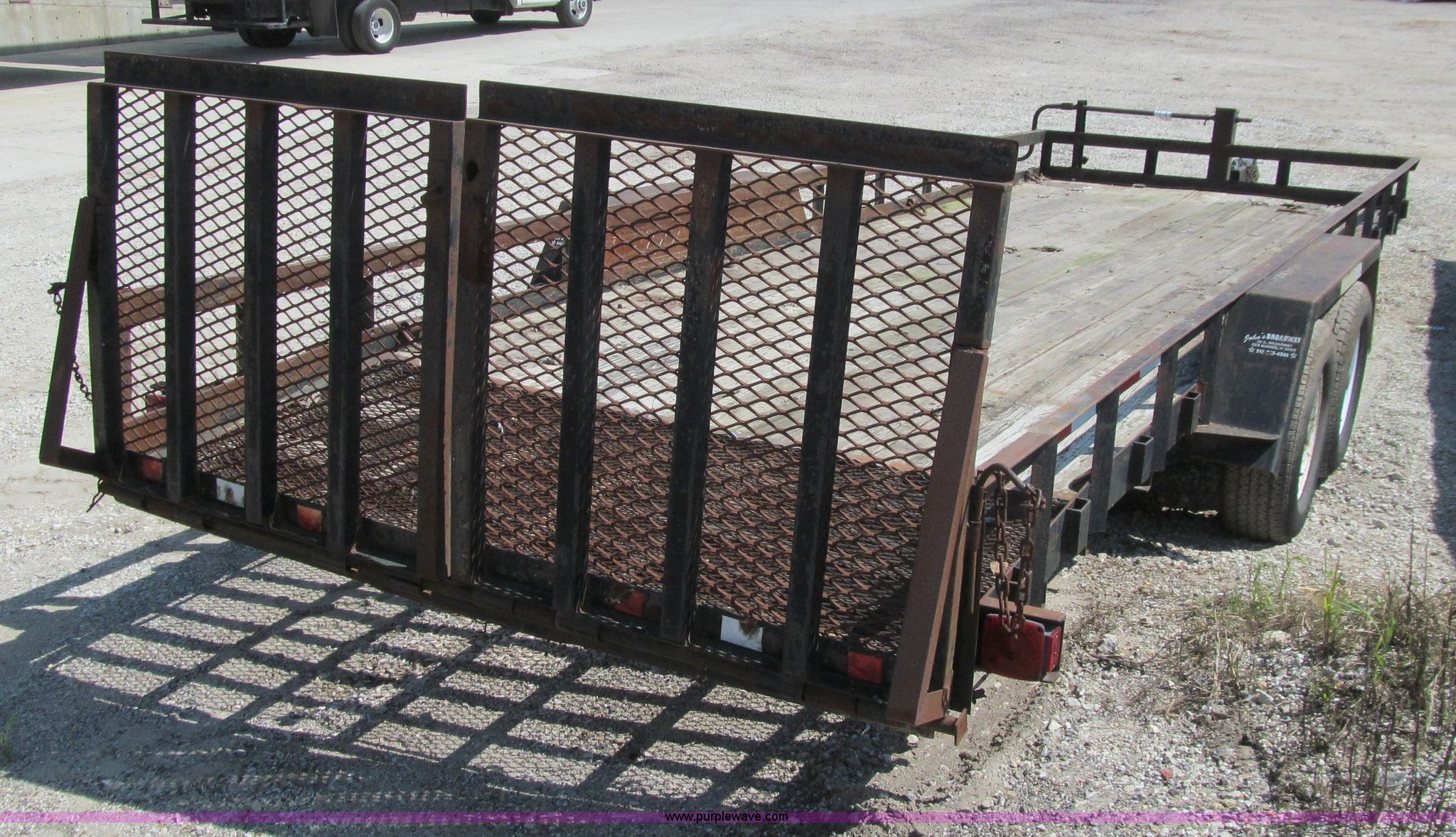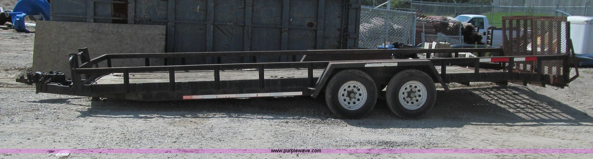 Purple Wave is selling a used Equip. Trailer in Iowa. This item is a 1994 John's Broadway equipment trailer with the following: Model 82-H20X335A, 81" x 238" wood deck, 81" x 36" expanded metal beaver tail, 84" x 40" split loading ramps, 2 5/16" ball hitch, Spring suspension, Hydraulic surge brakes, ST225/75R15 tires, GVWR 12,000 lbs, Front jack stand bent