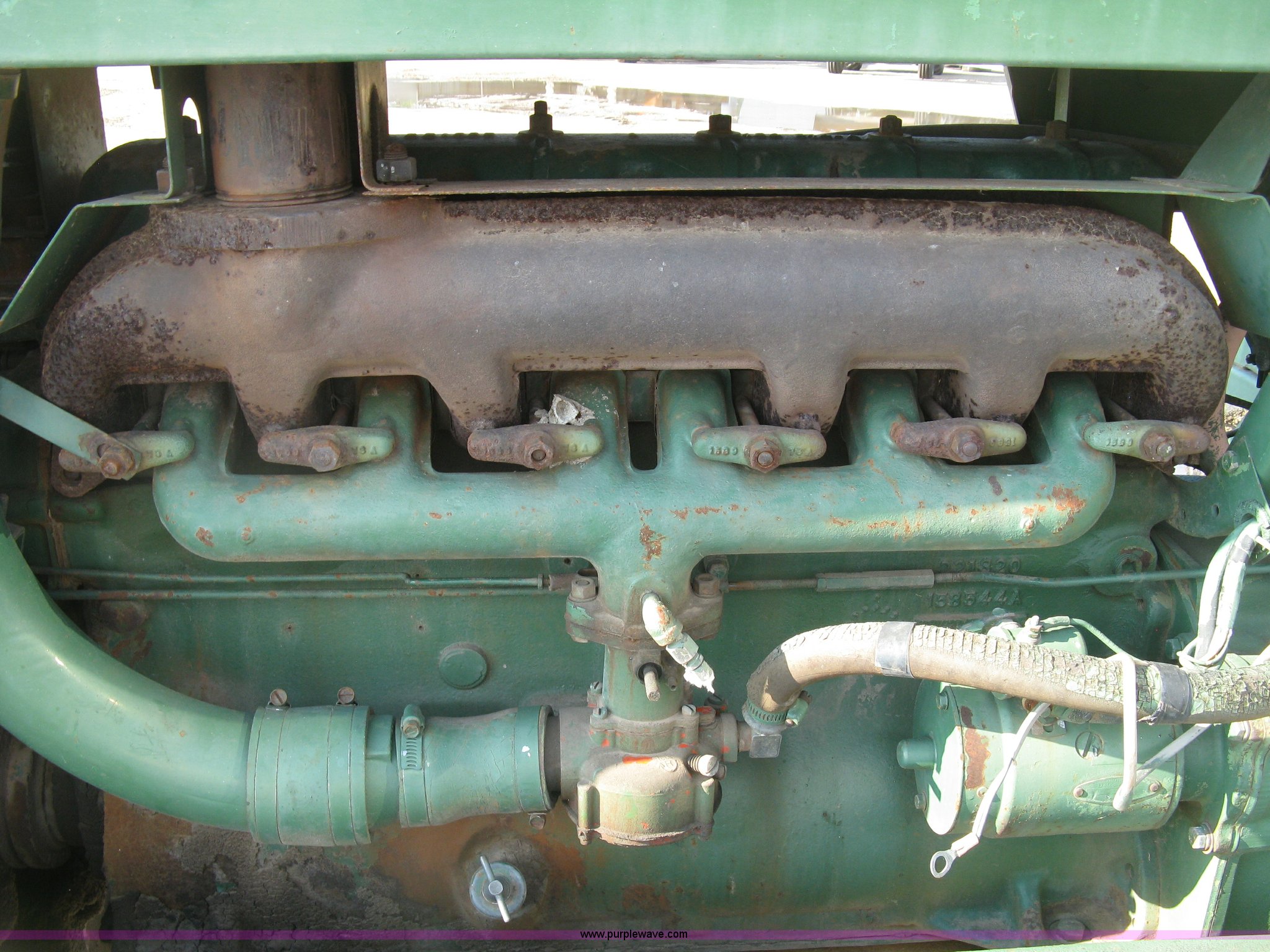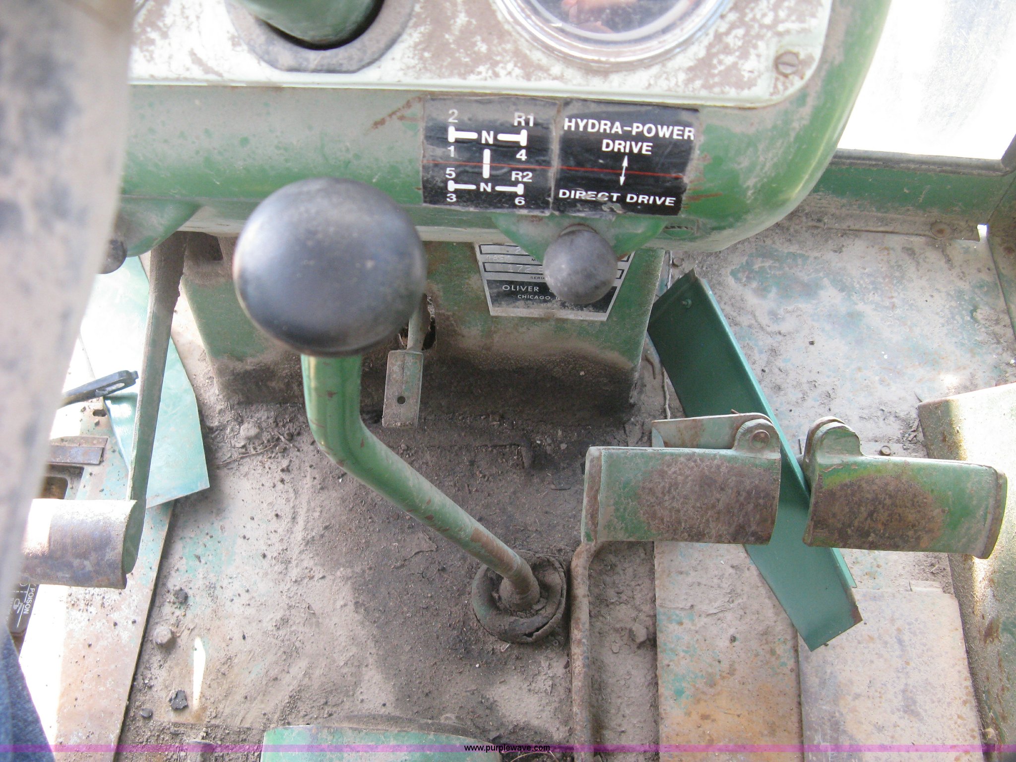 Purple Wave is selling a used Tractor in Kansas. This item is a Oliver 1850 tractor with the following: 3,462 hours on meter, Six cylinder propane engine, Hydra-Power drive manual transmission, 6F-2R gears, Excel Ind enclosed cab cover, Draw bar, (2) rear hydraulic remote sets, Inner rear wheel weights, 43 gallon fuel tank, Rear hub extensions, 11L-16SL front tires, 23.1-34 rear tires, Tires cracked, Cracked glass, Serial 172828-427