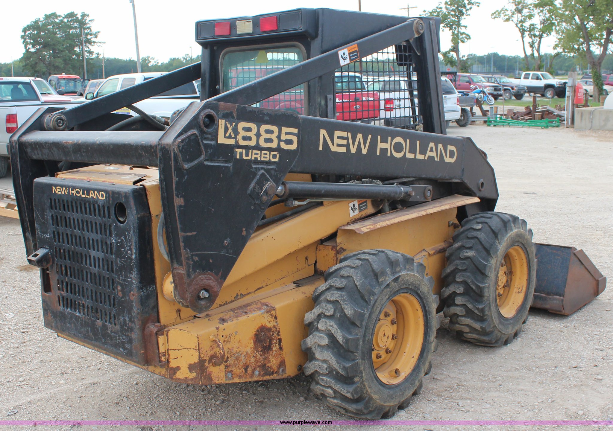 Purple Wave is selling a used Skid Steer Loader in Kansas. This item is a 1995 New Holland LX885 skid steer with the following: 1,259 hours on meter, New Holland 3.1L three cylinder diesel engine, 60 HP, Hydrostatic transmission, Hand and foot controls, Auxiliary hydraulics, 78"W bucket, 2,200 lbs rated operating capacity, 12-16.5 tires, 7,004 lbs. base operating weight, No hydraulic couplers, Seat belt safety switch issues, Unit is unable to work or move, Serial 876844