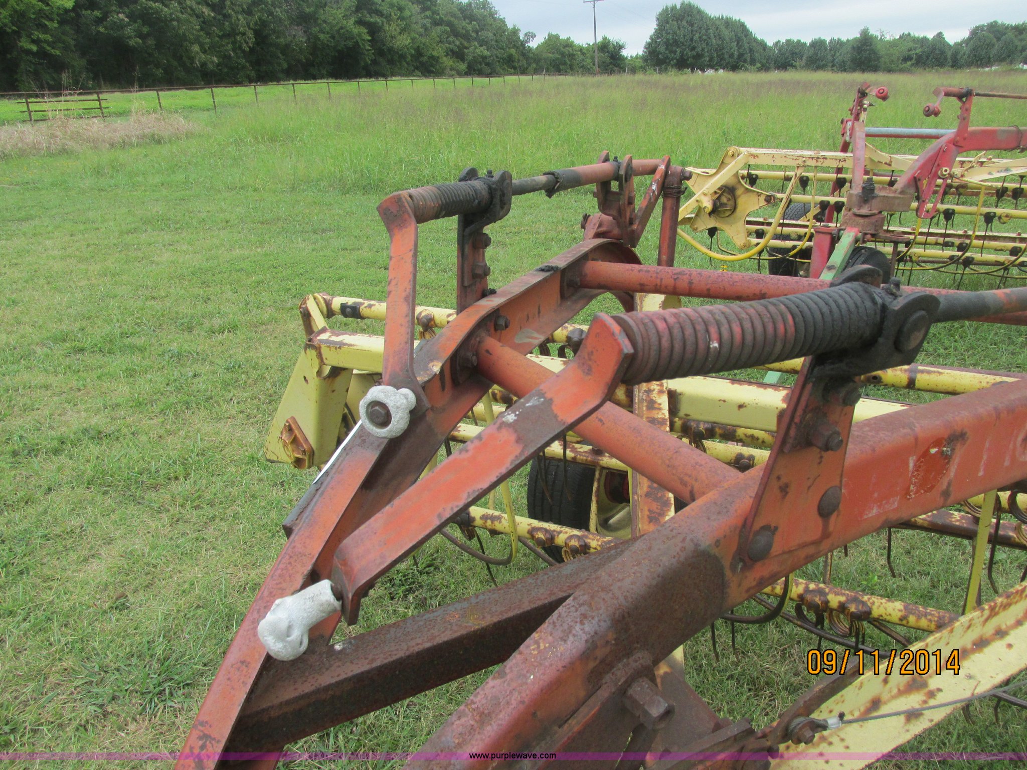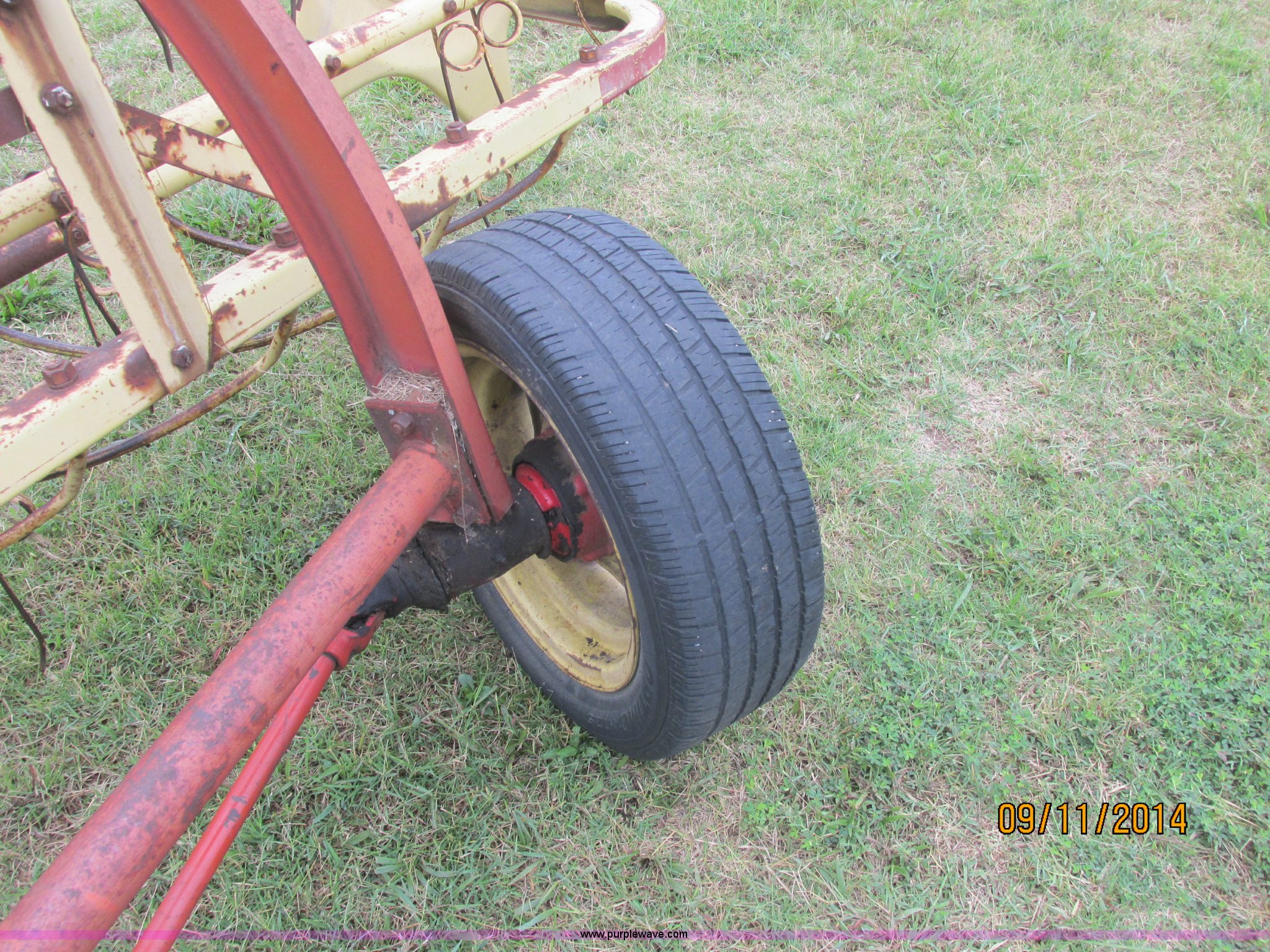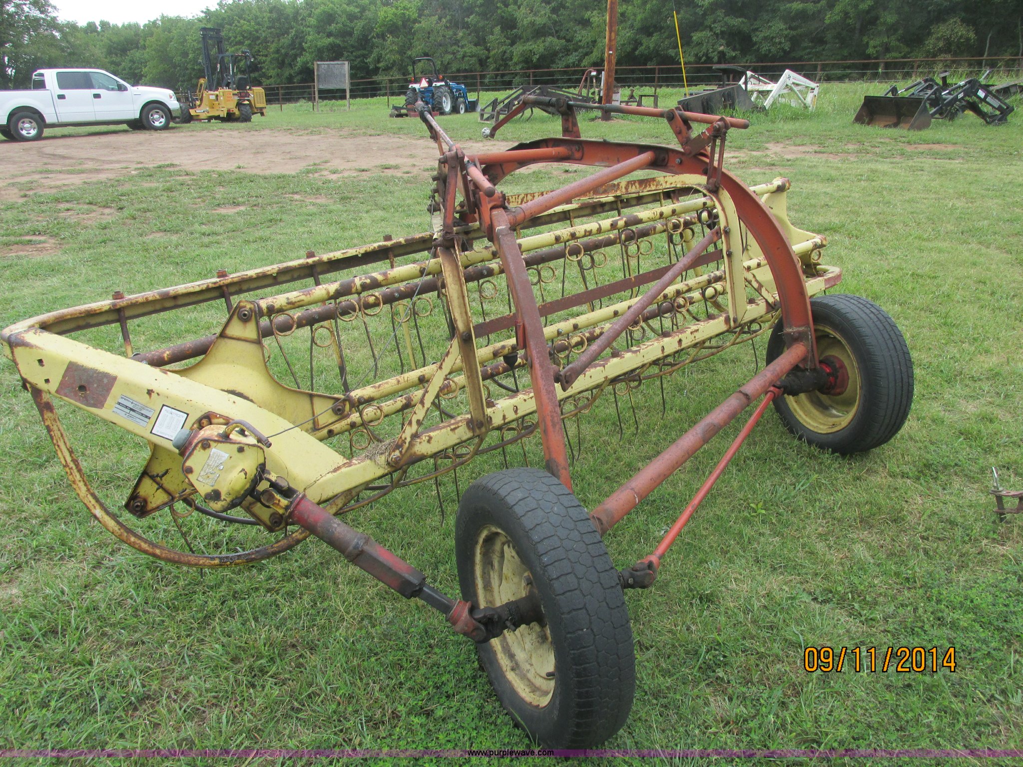Purple Wave is selling a used Hay Rake in Oklahoma. This item is a New Holland 256 roll bar hay rake with the following: 10'W, P195/60R15 tires, Serial 411248