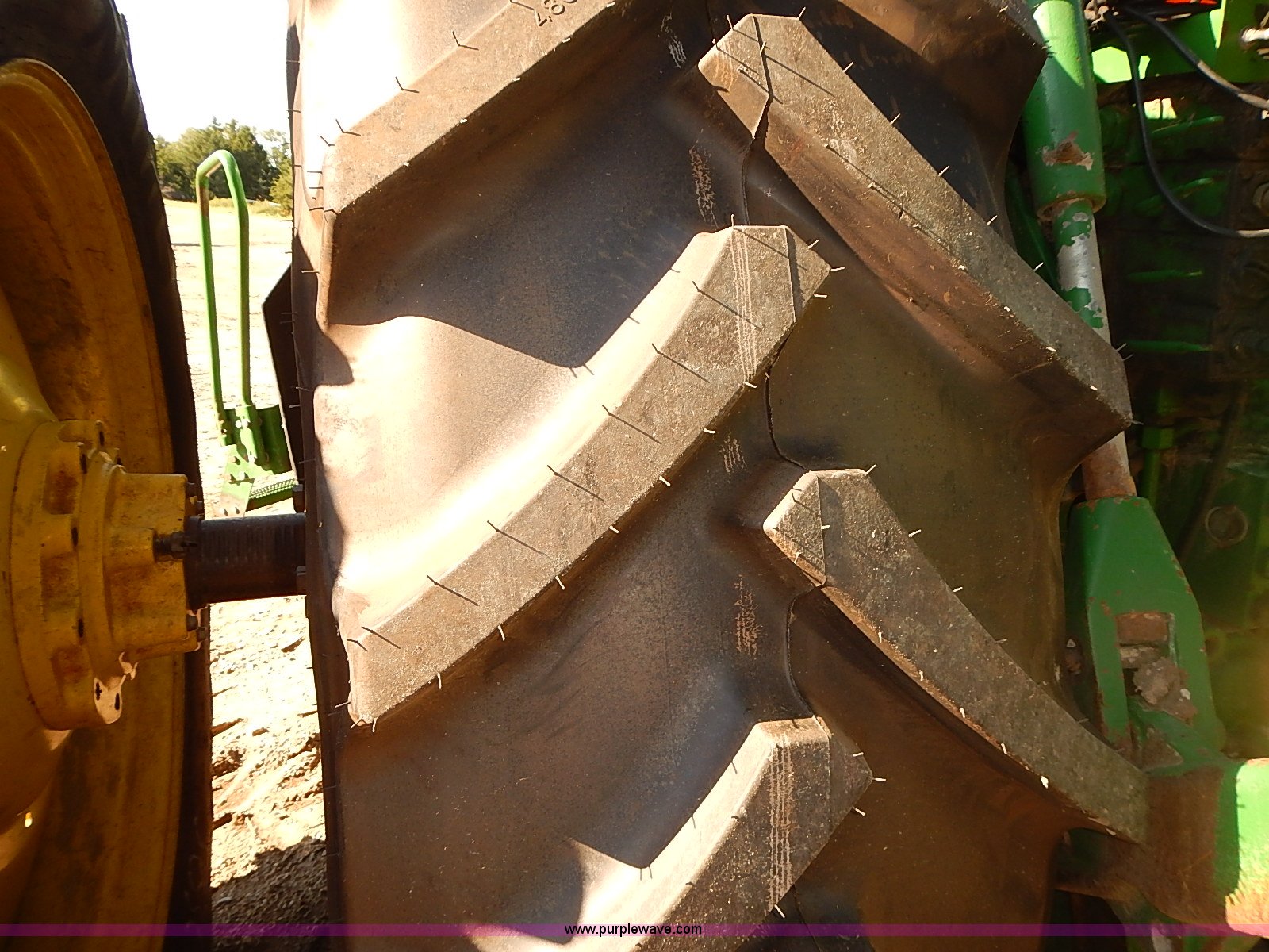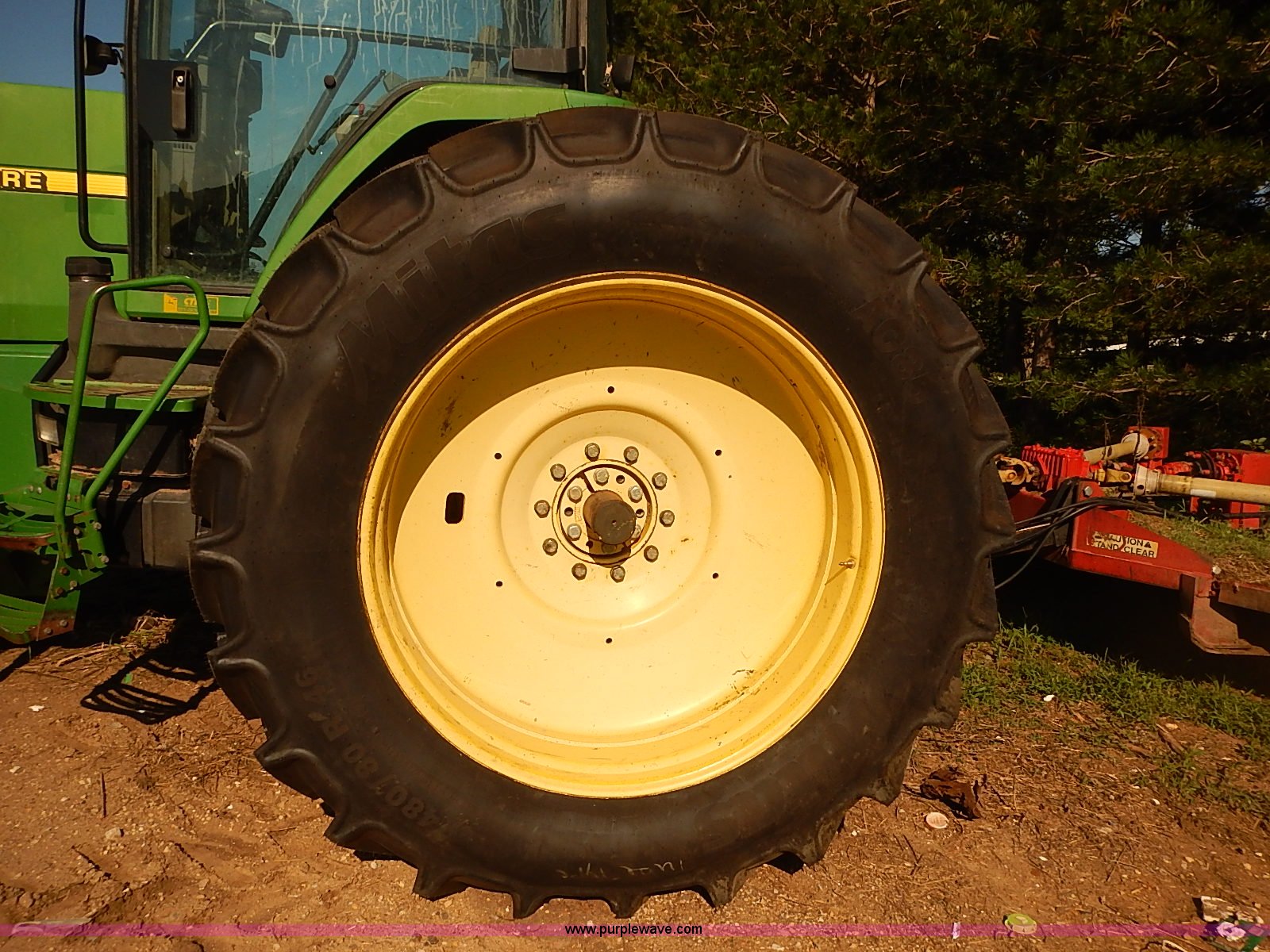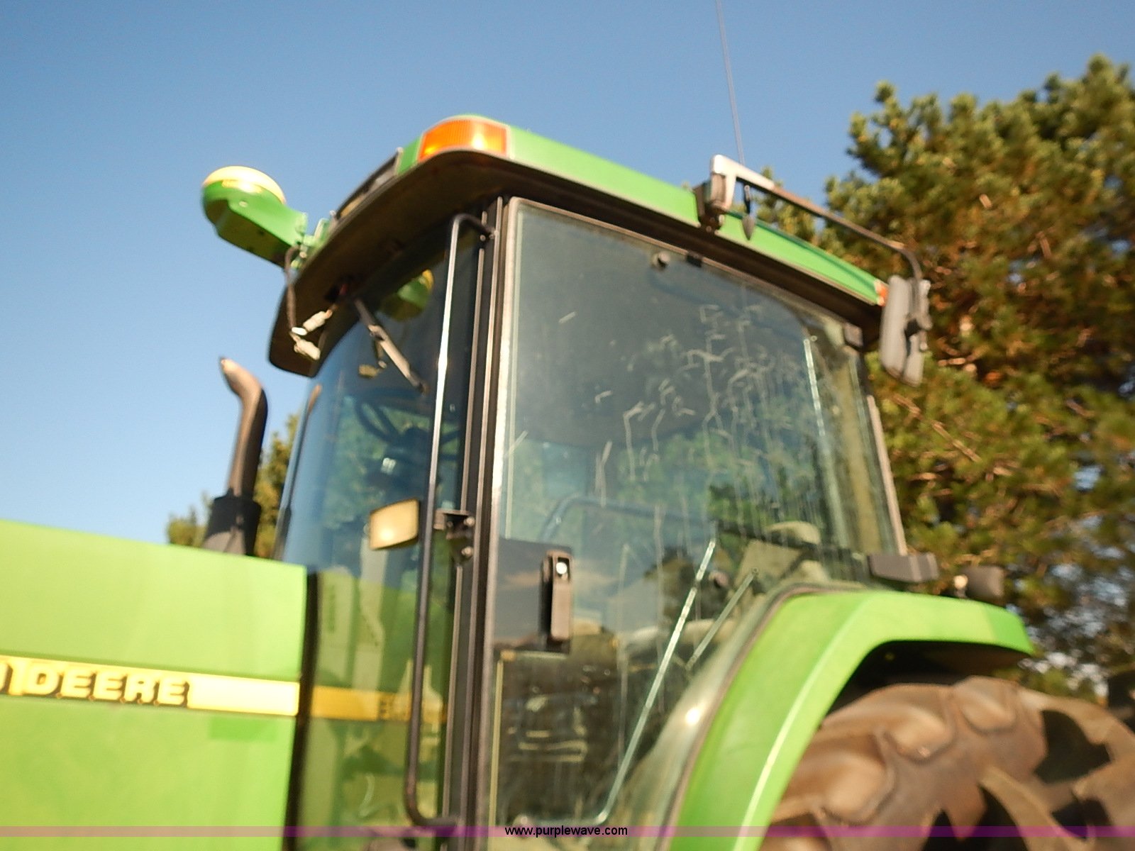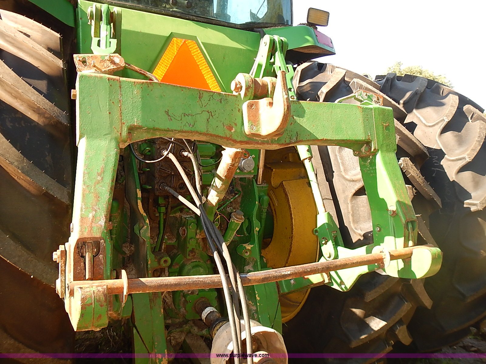 Purple Wave is selling a used Tractor in Kansas. This item is a 1997 John Deere 8300 MFWD tractor with the following: 9,745 hours on meter, John Deere six cylinder turbo diesel engine, 200 HP, Serial SE6081H390632, Powershift transmission, 16F-4R gears, Differential lock, AC and heat, AM/FM/cassette/weatherband, Spring suspension seat, Instructor's seat, Tilt steering wheel, Work lights, Front and rear windshield wipers, Block heater, Front fenders, Three point, Quick attach, Draw bar, Auxiliary outlet, Large 1000 PTO, (4) rear hydraulic remote sets, (18) suitcase weights, Front wheel weights, 135 gallon fuel tank, Goodyear 385/85R24 front tires, New Mitas 480/80R46 dual rear tires, Auto steer equipment not included, Engine replaced at 9,200 hours, Serial RW800P012242