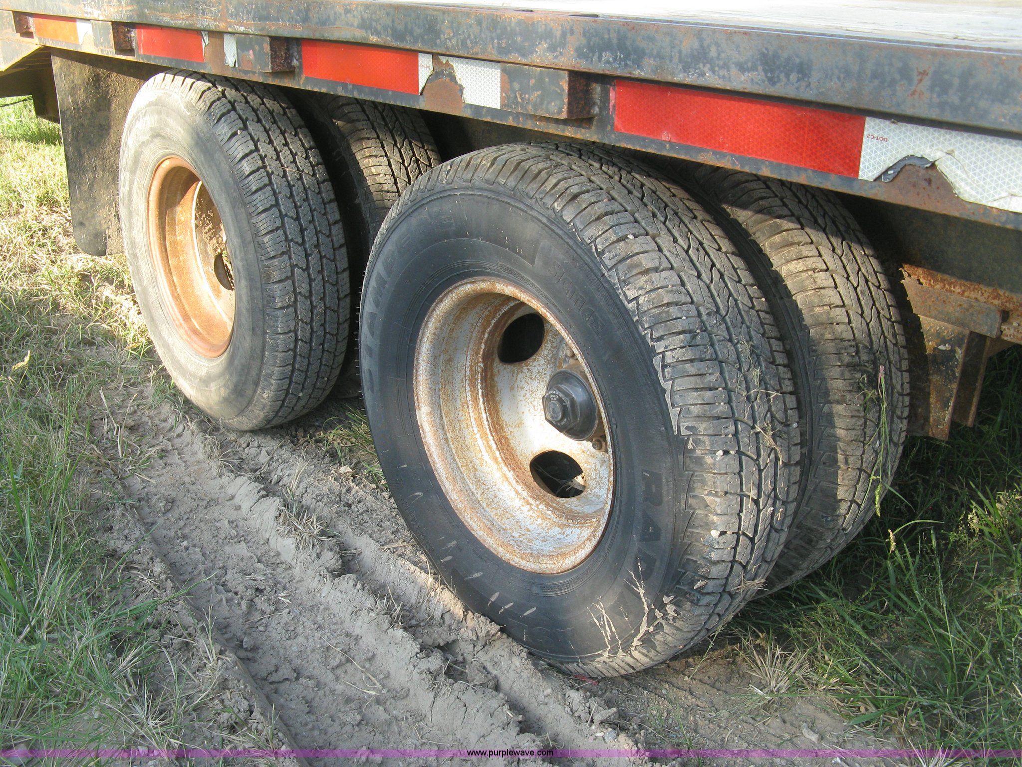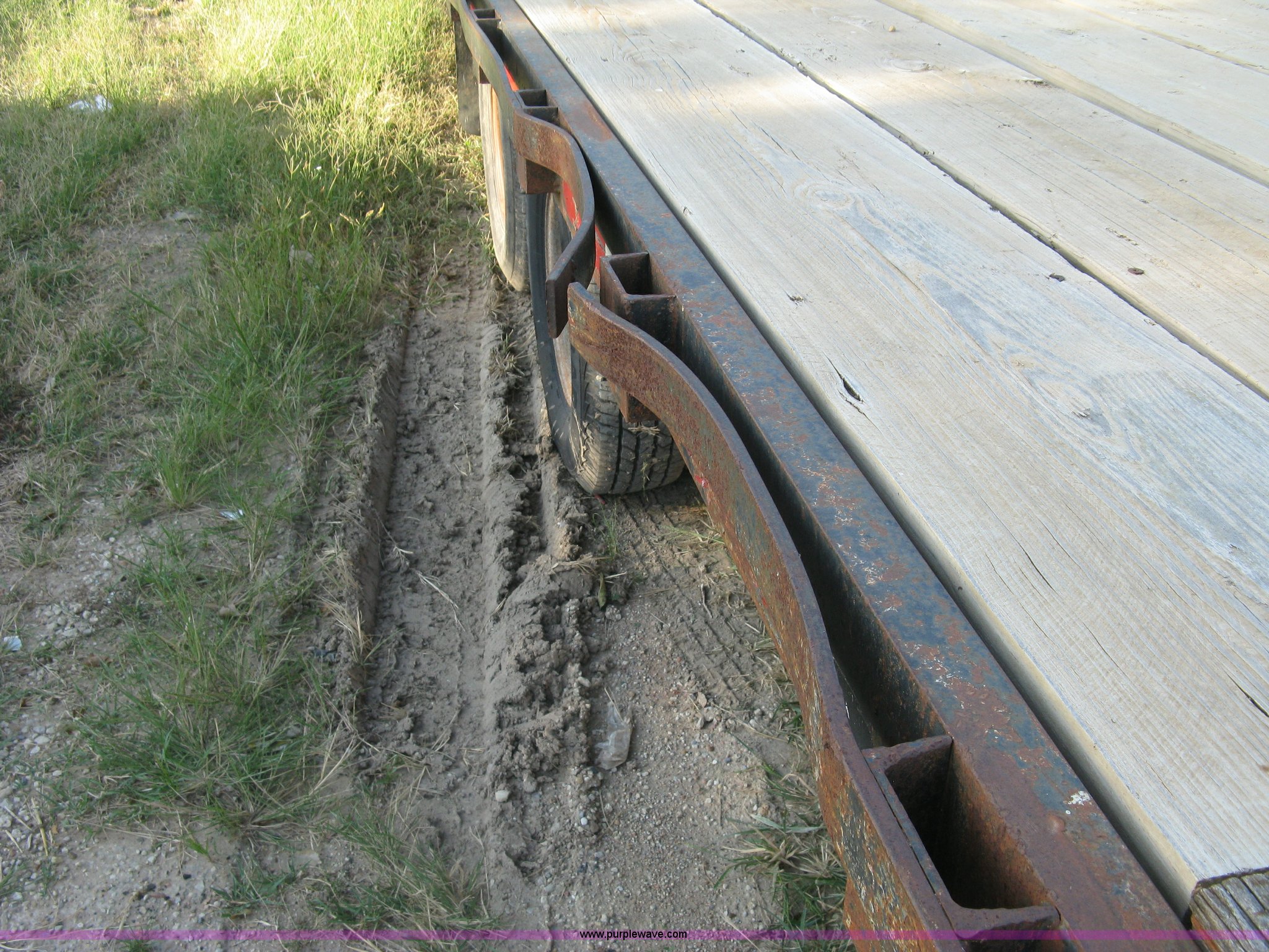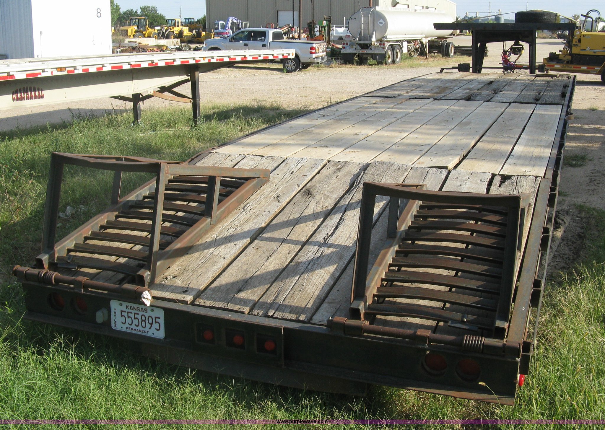 Purple Wave is selling a used Equip. Trailer in Kansas. This item is a 1998 Overbilt flatbed trailer with the following: 29'L x 8'W main deck, 80"L dovetail, 110"L upper deck, 63"L x 27"W folding ramps, Wood deck, Stake side pockets, Tie-down rails, Two post landing gear, Oil bath hubs, Adjustable height gooseneck hitch with fifth wheel adapter, Weld repairs, Spring suspension, LT235/85R16 tires, GVWR 30,652 lbs, Unit# MT29