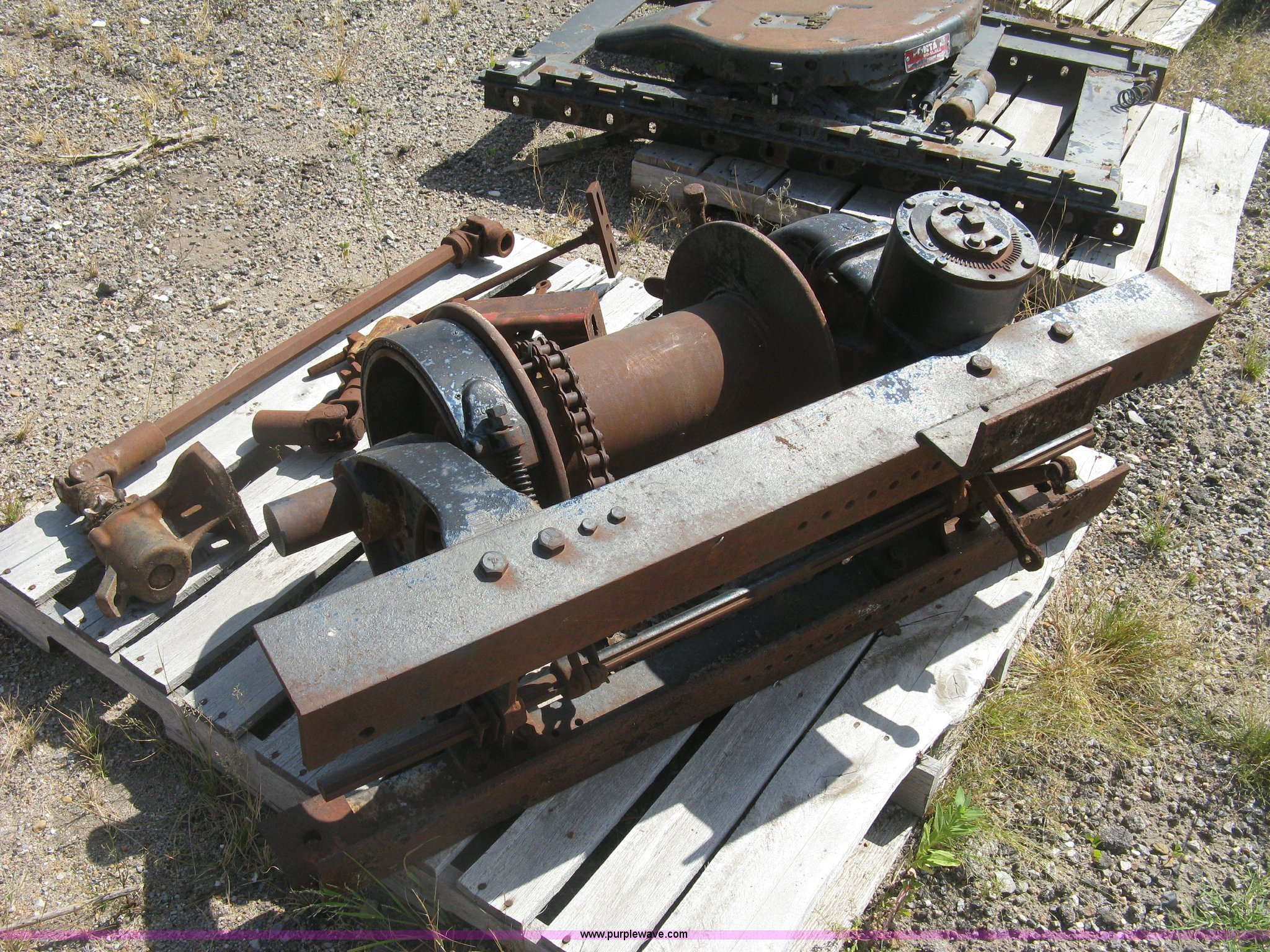 Purple Wave is selling a used Automotive Parts or Acces. in Kansas. This item is a Assorted automotive parts with the following: Tulsa 23R PTO driven winch, No cable, PTO shafts, Mounting bracket, Unknown operating condition, Serial 322598, Headache rack, 46"W behind cab, Expanded metal/frame, 80"W at widest point on top pipe, Torch cuts at bottom of frame to removed from service