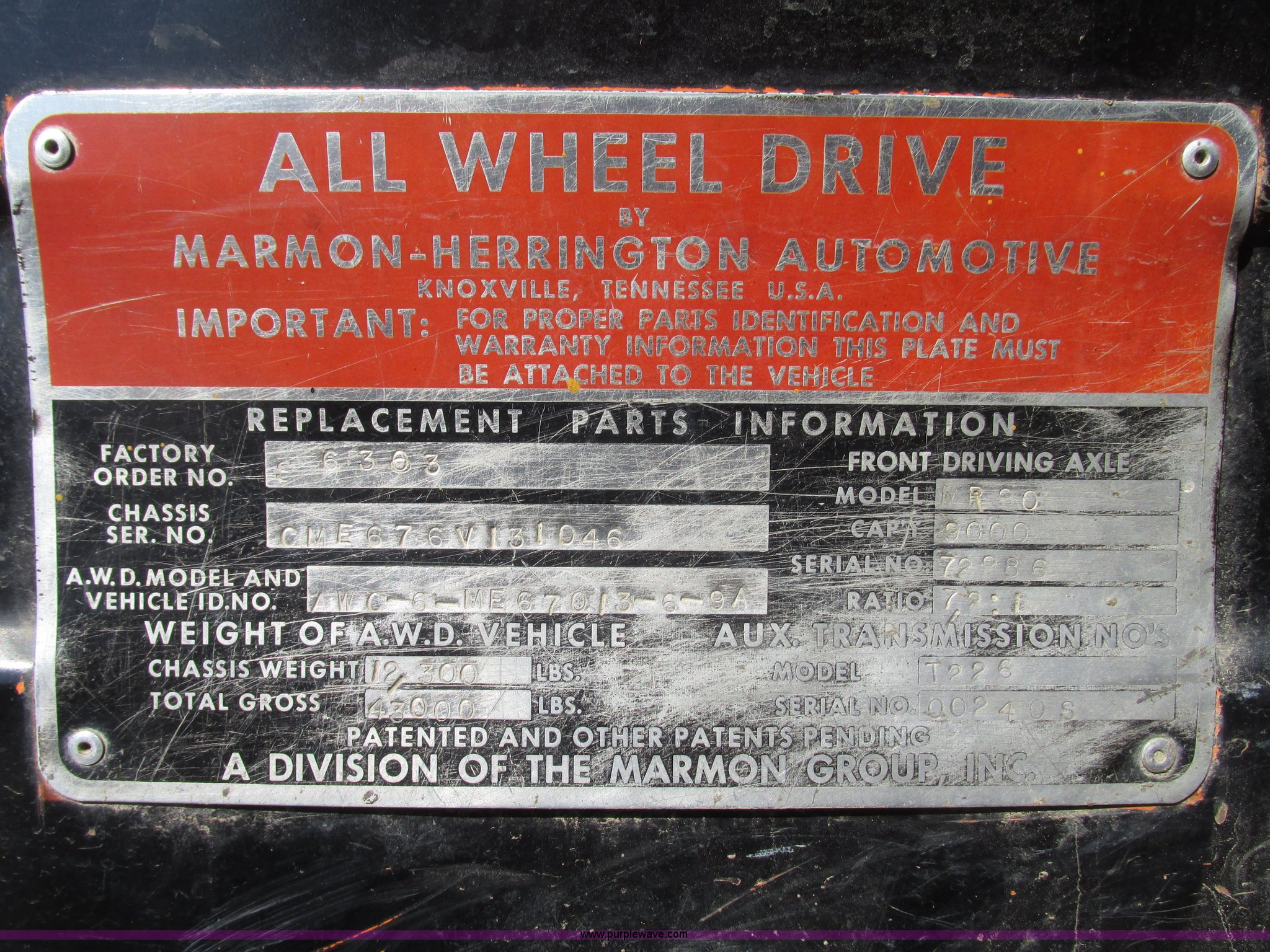 Purple Wave is selling a used Tank Truck or Water Truck in Nebraska. This item is a 1976 Chevrolet C65 Custom Deluxe water truck with the following: 26,687 miles on odometer, 427 C.I.D. V8 gas engine, Five speed manual transmission, Twin screw, Six wheel drive, Differential lock, Heat, Spring suspension seat, Air ride cab, Vinyl interior, J-Mark Side Iron aluminum running boards, Exterior visor, Chrome bumper, 2,100 gallon stainless steel tank, 93"W rear spray bar, Top mount access ladder, Tow hooks, Clearance lights, Roof mounted horn, Auxiliary transmission no. T226, Serial 00240S, Mud flaps, Front drive axle model NB90, 9,000 lbs capacity, 78:1 ratio, Serial 72986, 43,000 lbs gross weight, 12,300 lbs chassis weight, Air brakes, 9.00-20 tires, GVWR 39,320 lbs, FAWR 7,000 lbs, IAWR 16,160 lbs, RAWR 16,160 lbs, Interior/exterior cosmetic damage, Cracked windshield, One mud flap missing, No rear spray bar, Factory order no. S6383, Unit# 41