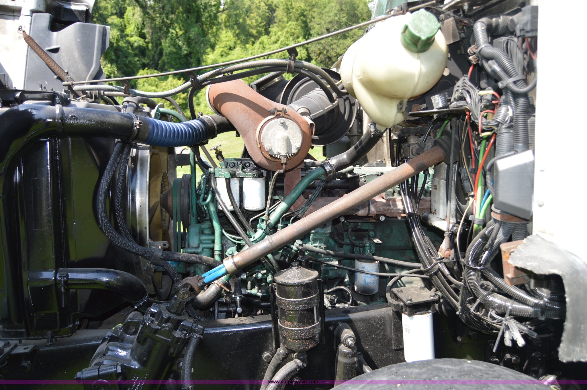 Purple Wave is selling a used Rollback or Tow Truck in Missouri. This item is a 1999 Volvo WG rollback truck with the following: 335,846 miles on odometer, Volvo 6.7L L6 diesel engine, Eaton Fuller manual transmission, AC and heat, Cruise, AM/FM, Power heated mirrors, Air suspension seat, PTO, 26.5'L x 8'W rollback bed, Rear stinger, Exterior visor, Chrome bumper, Air suspension, Air brakes, Aluminum wheels, 315/80R22.5 front tires, 11R22.5 rear tires, Rust