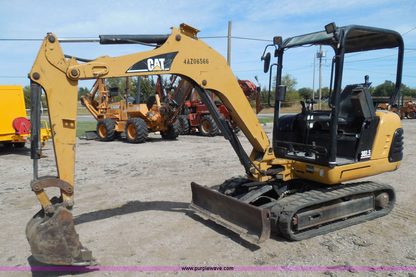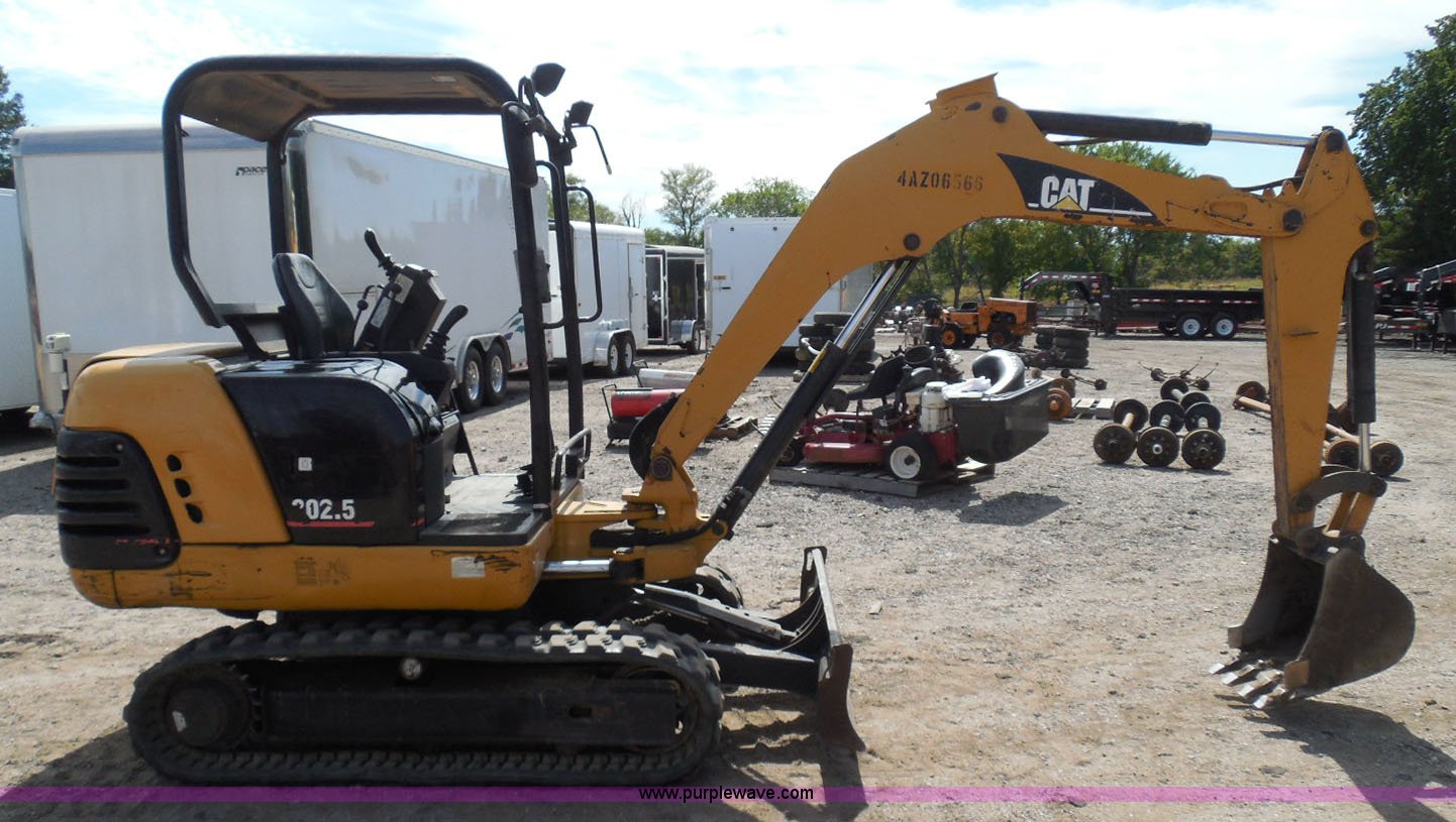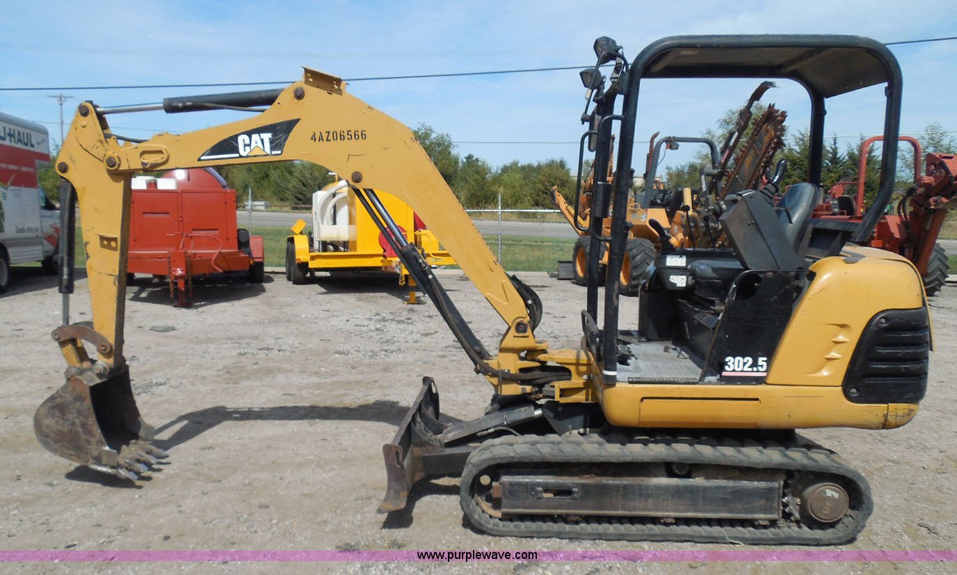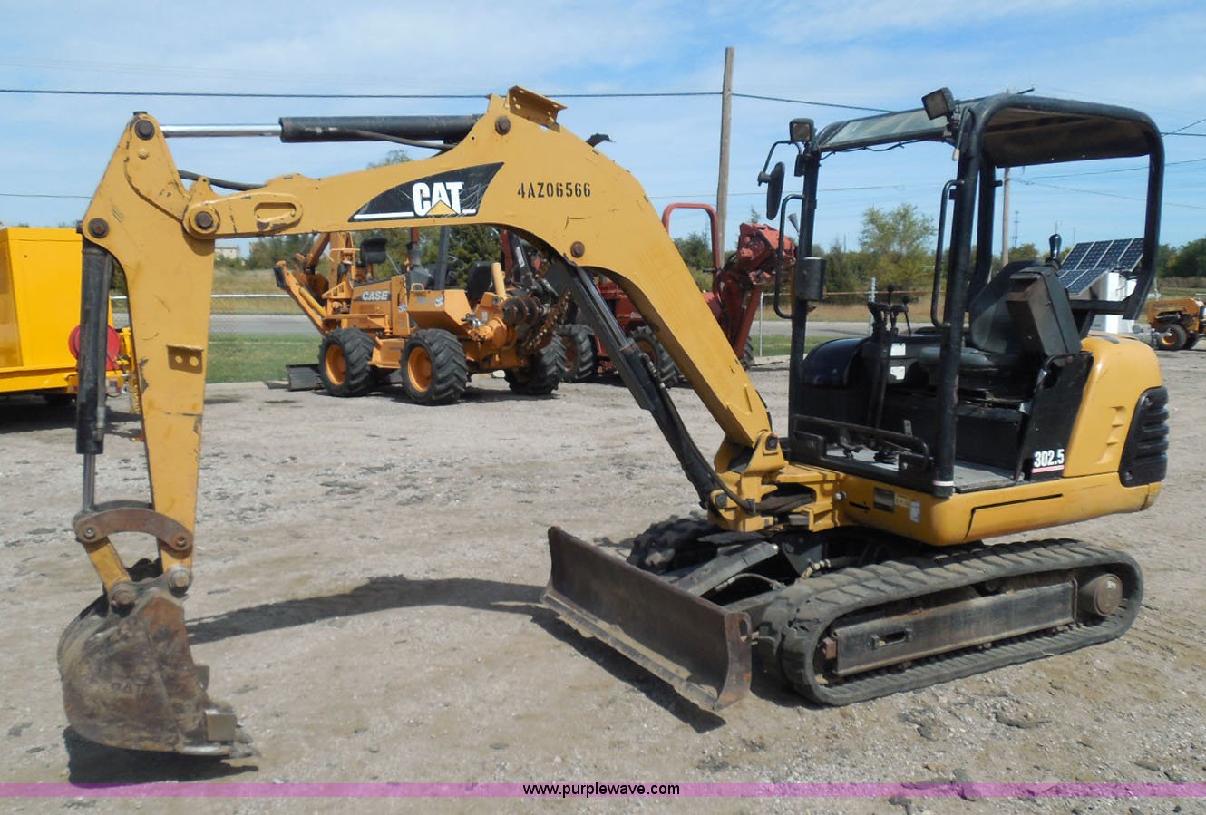 Purple Wave is selling a used Mini Excavator in Kansas. This item is a 2006 Caterpillar 302.5 mini excavator with the following: 3,366 hours on meter, Perkins 4H3XL200N84 three cylinder diesel engine, Hydrostatic transmission, OROPS, Spring suspension seat, Approximately 4.5' stick length, Caterpillar 18.5"W bucket, Four bolt-on teeth, 57"W back fill blade, 12"W rubber tracks, 6,027 lbs. base operating weight, Serial 4AZ06566